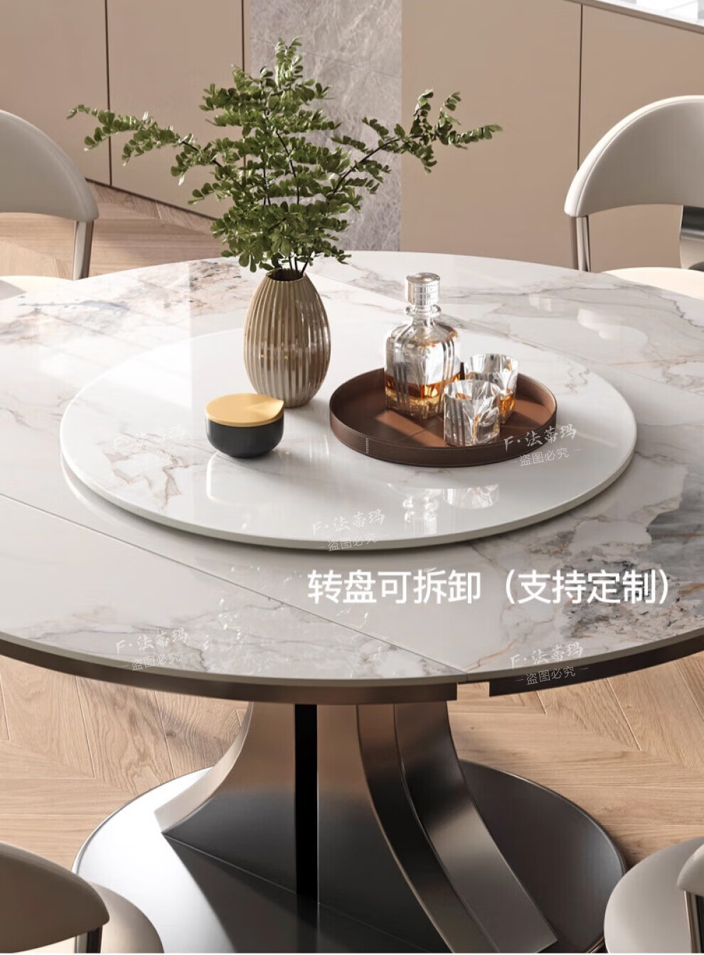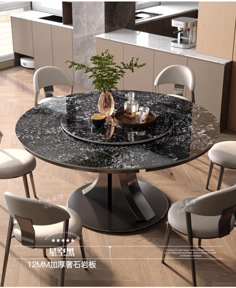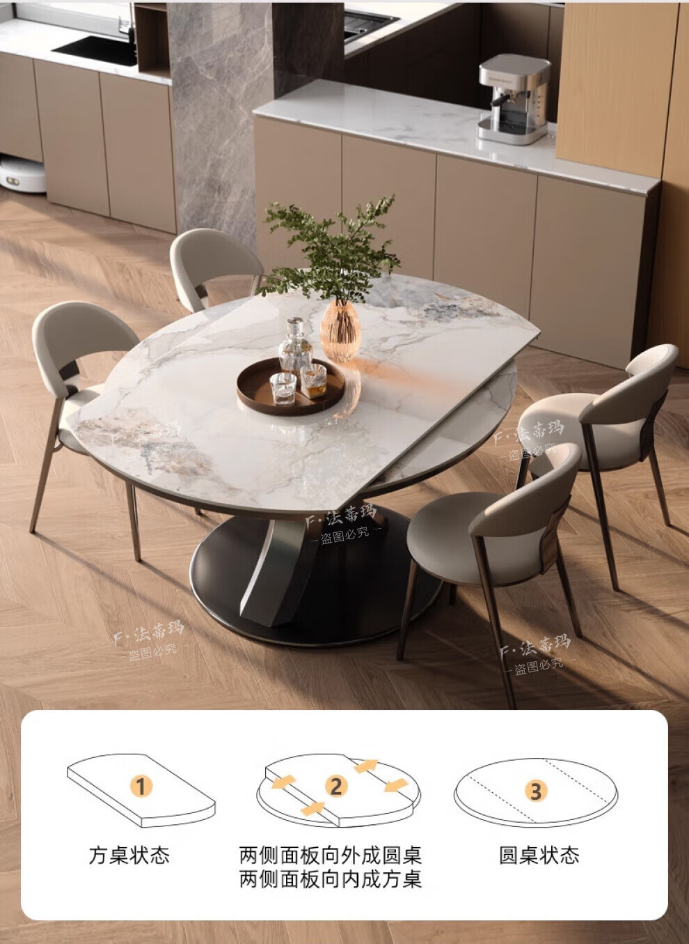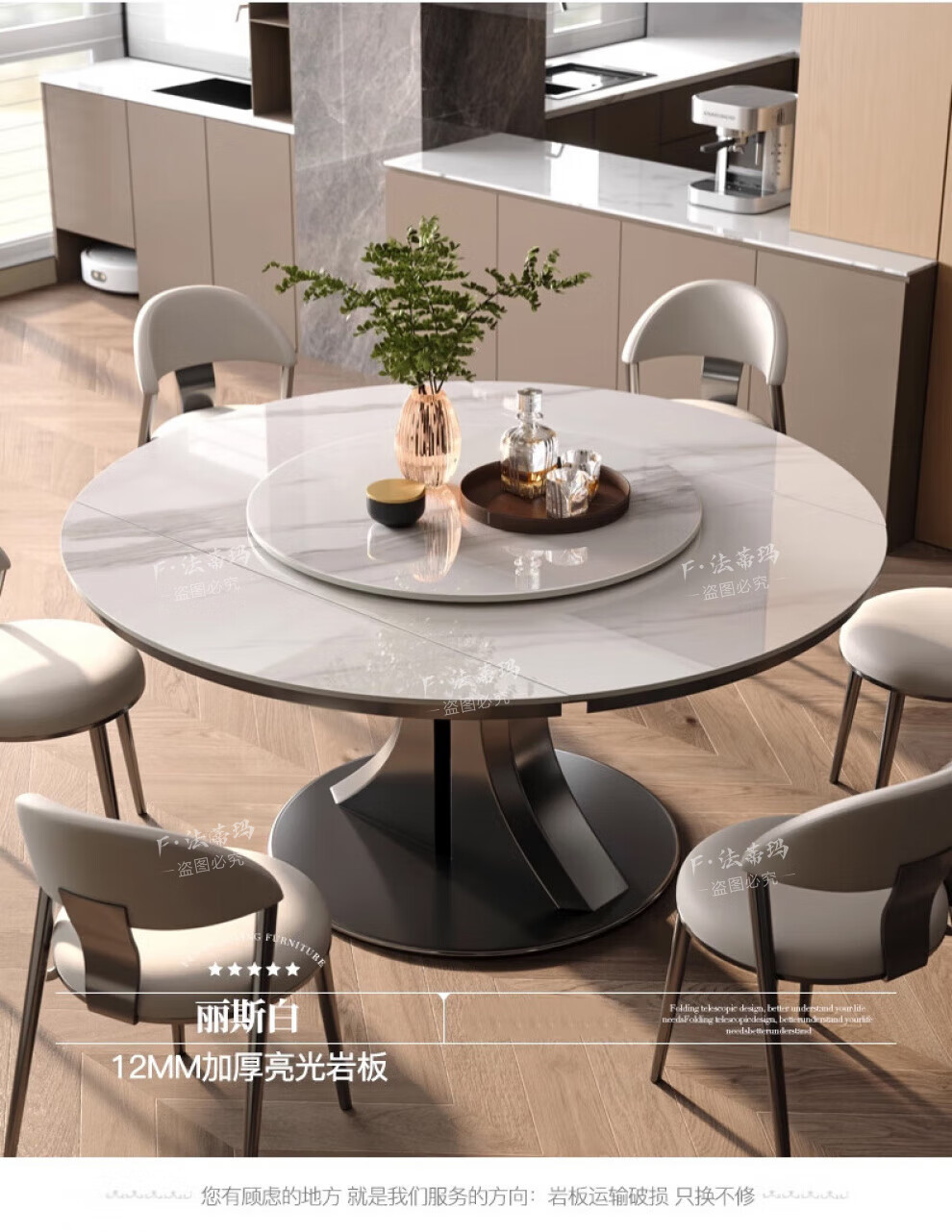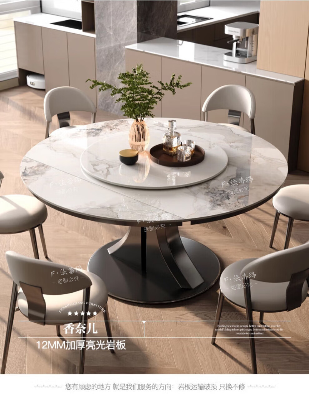 法蒂玛可伸缩岩板圆餐桌轻奢高端小户型方圆两用旋转奢石电磁炉餐桌 1.2米圆餐桌+转盘 一桌四椅