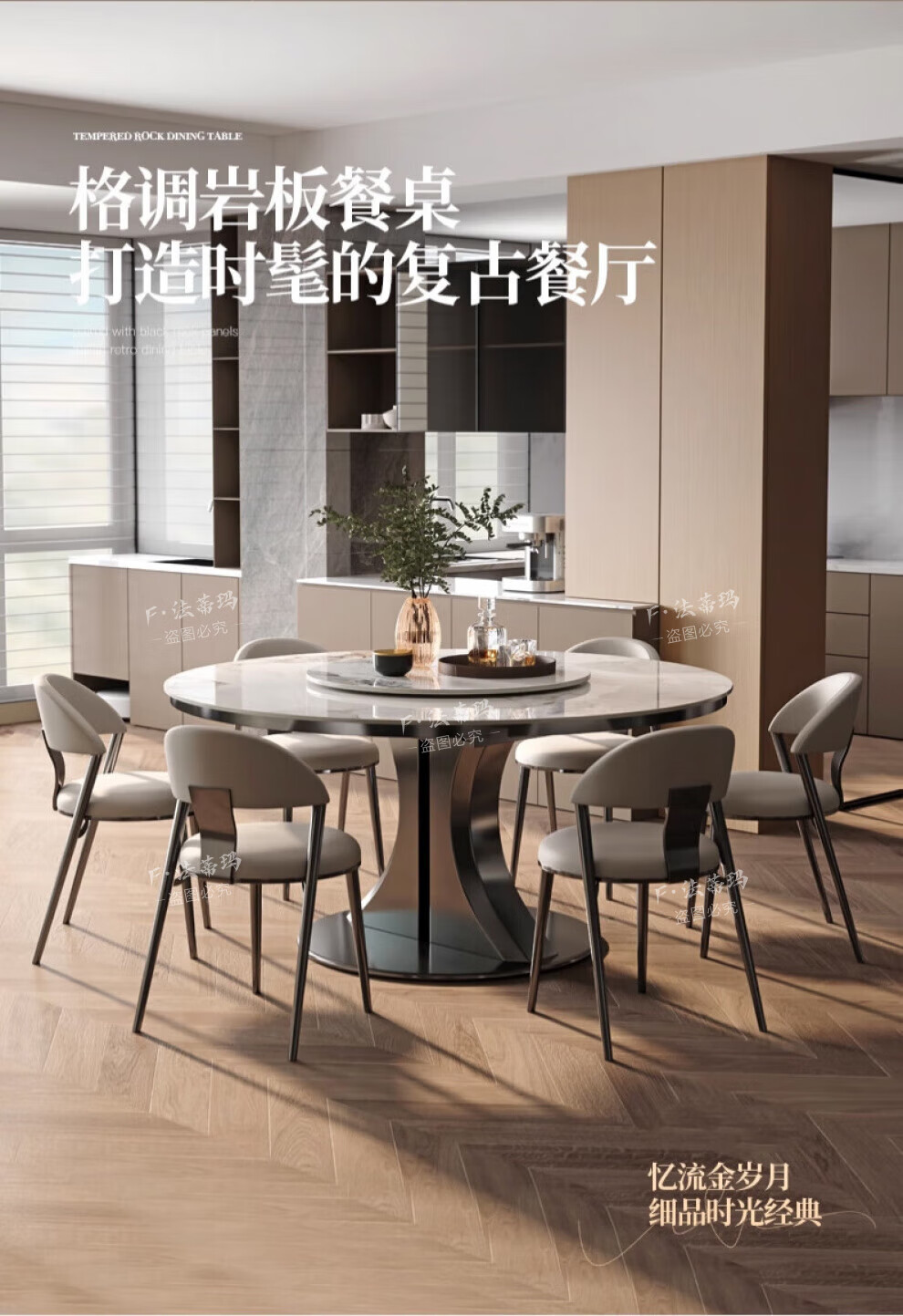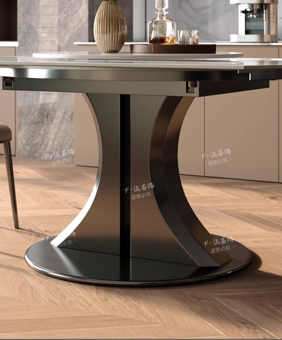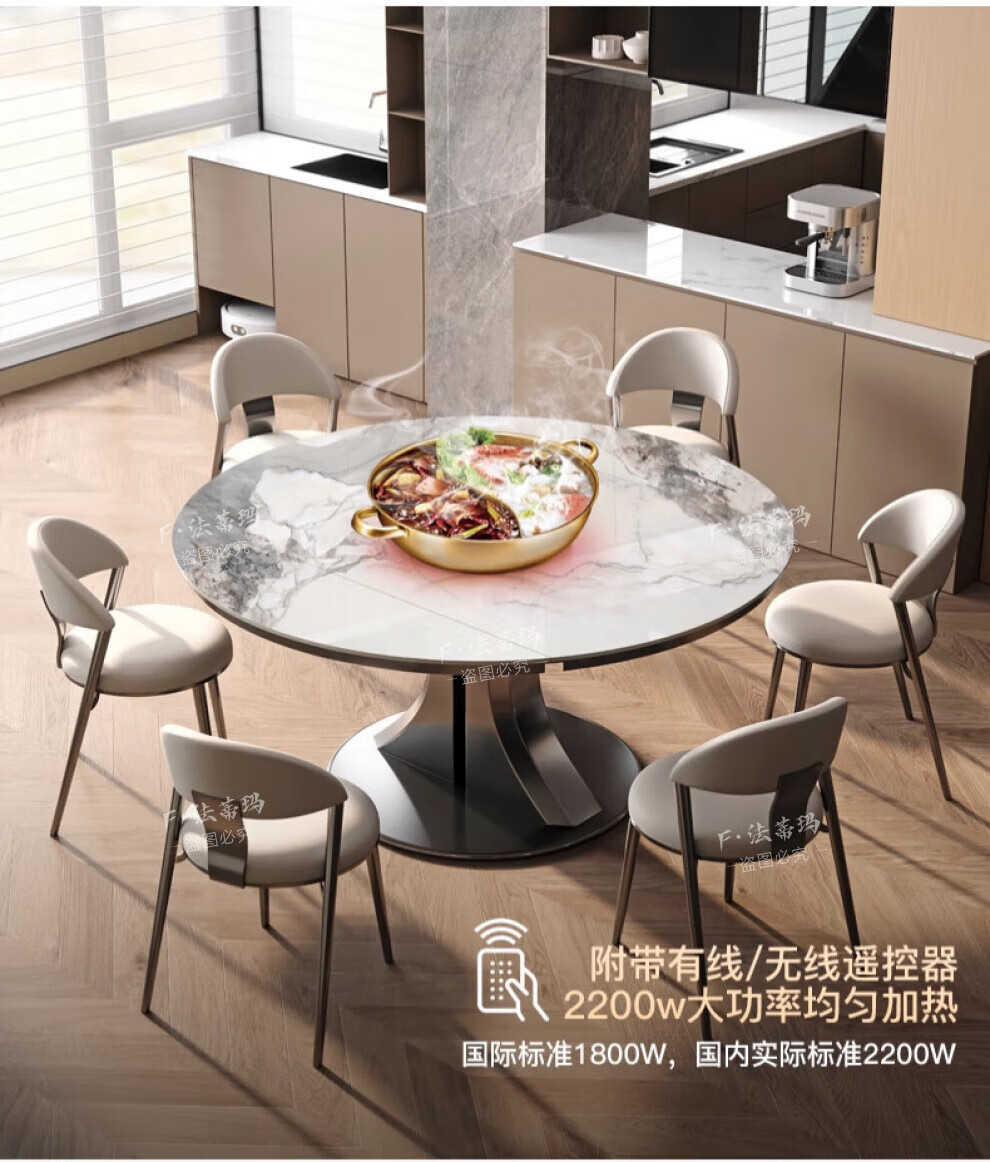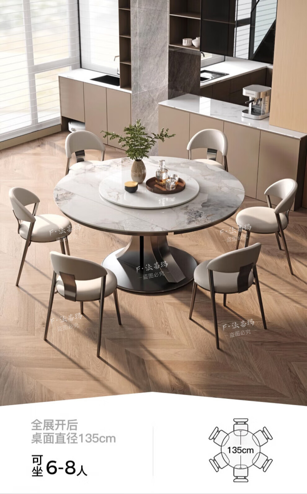 法蒂玛可伸缩岩板圆餐桌轻奢高端小户型方圆两用旋转奢石电磁炉餐桌 1.2米圆餐桌+转盘 一桌四椅