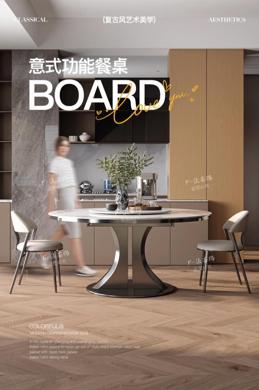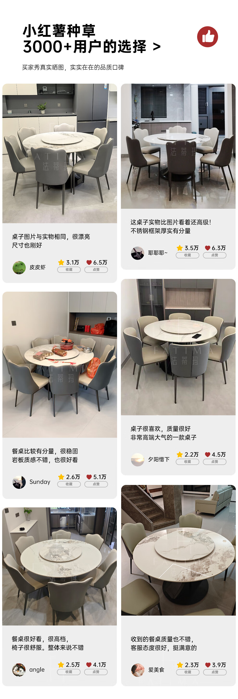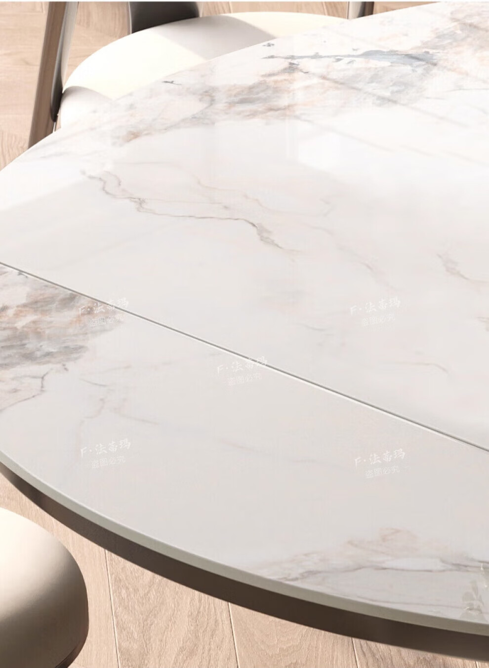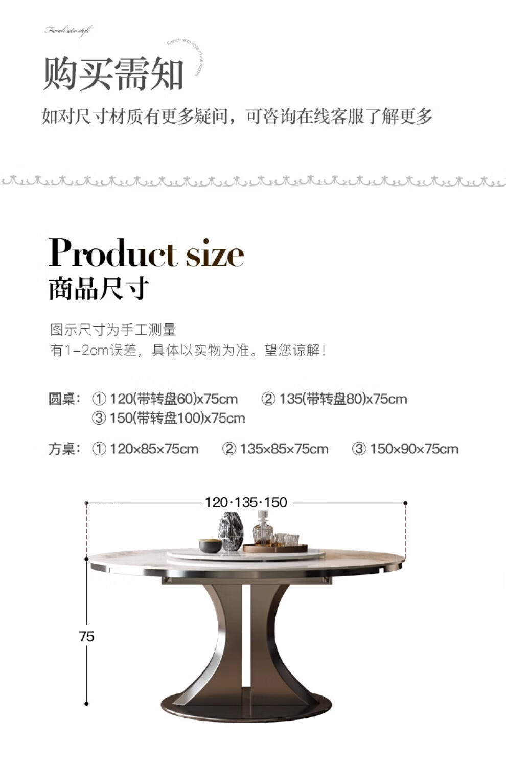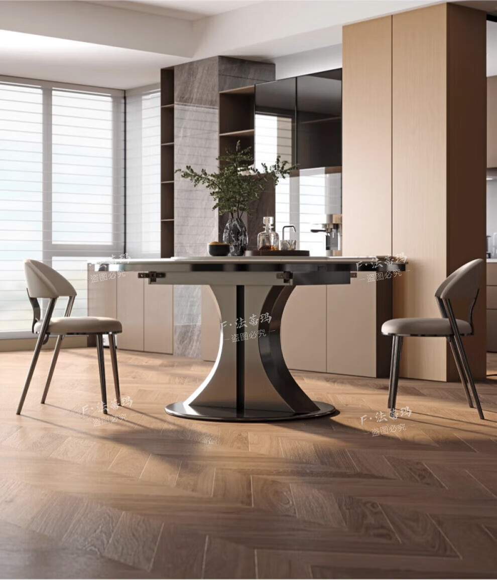 法蒂玛可伸缩岩板圆餐桌轻奢高端小户型方圆两用旋转奢石电磁炉餐桌 1.2米圆餐桌+转盘 一桌四椅