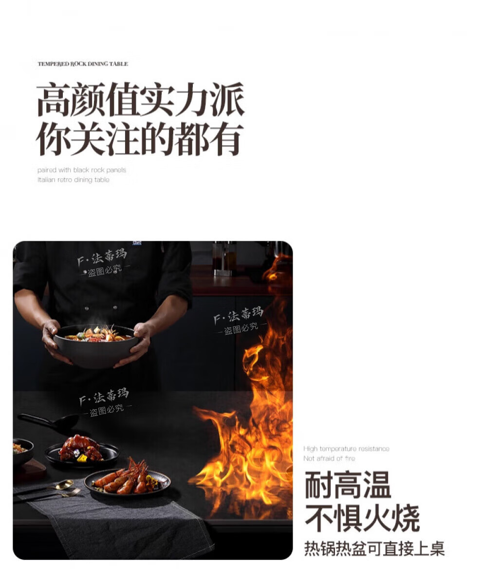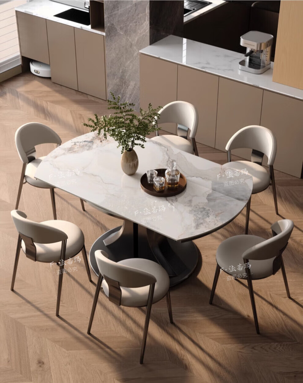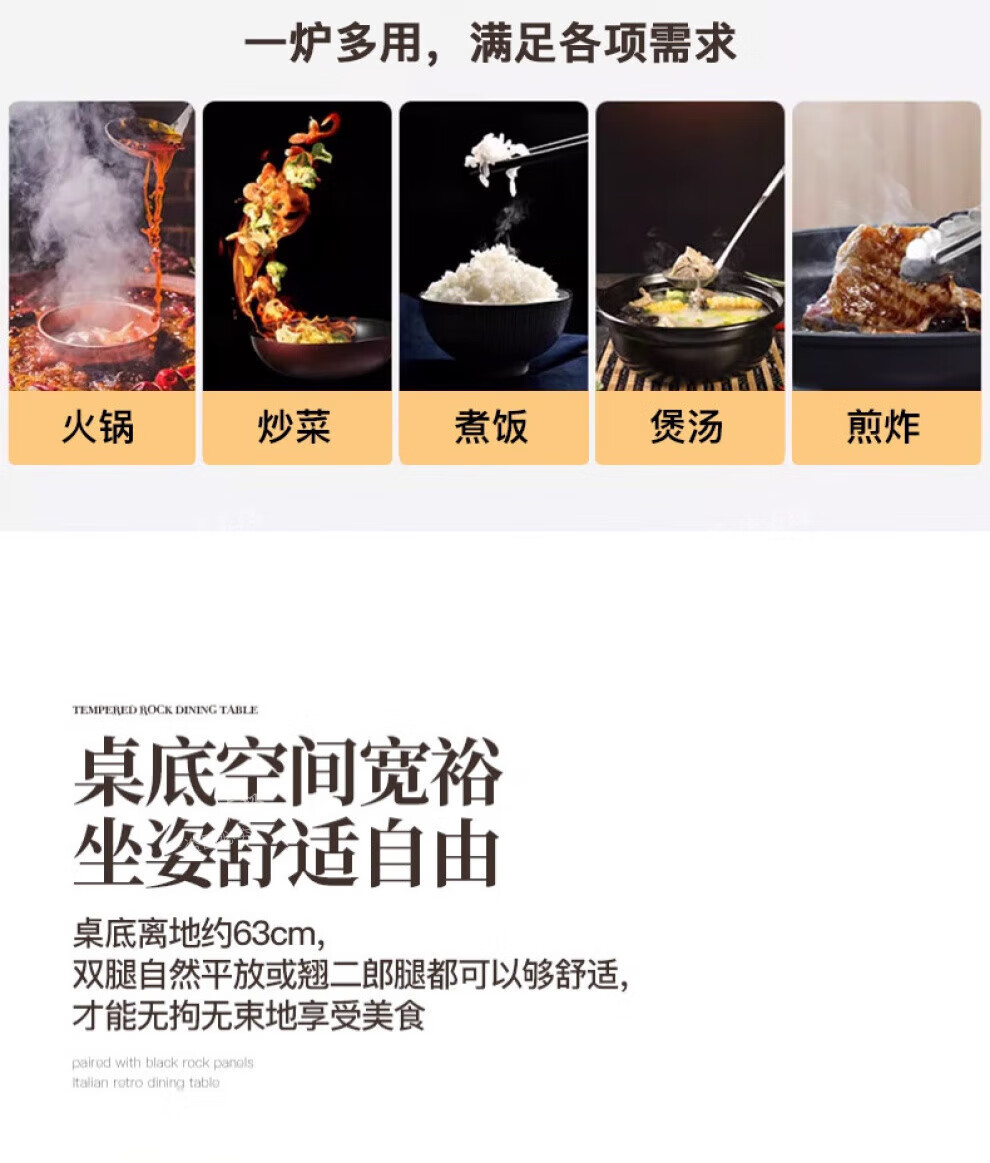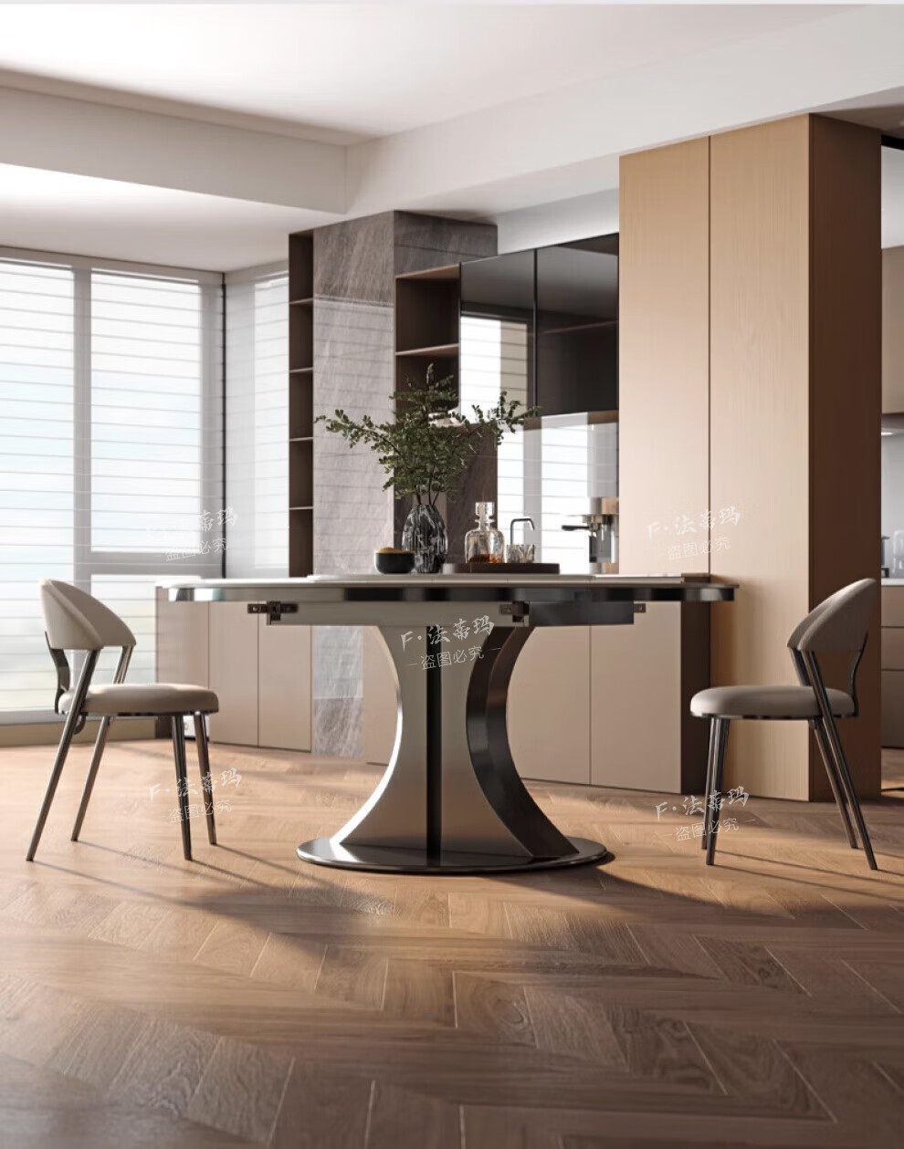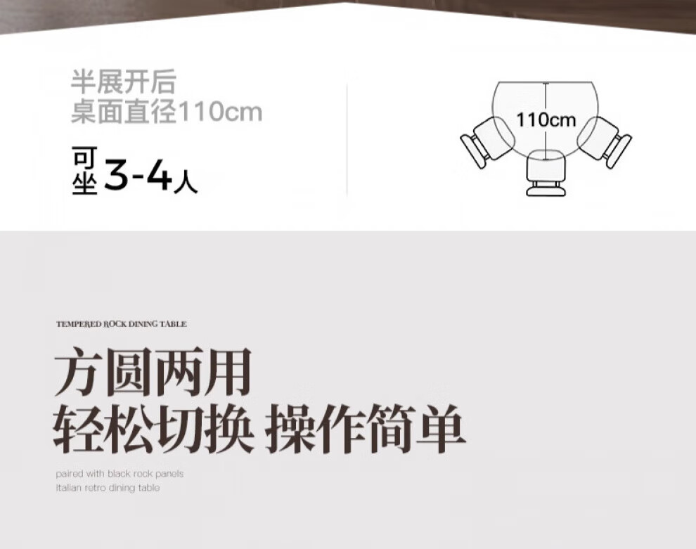 法蒂玛可伸缩岩板圆餐桌轻奢高端小户型方圆两用旋转奢石电磁炉餐桌 1.2米圆餐桌+转盘 一桌四椅