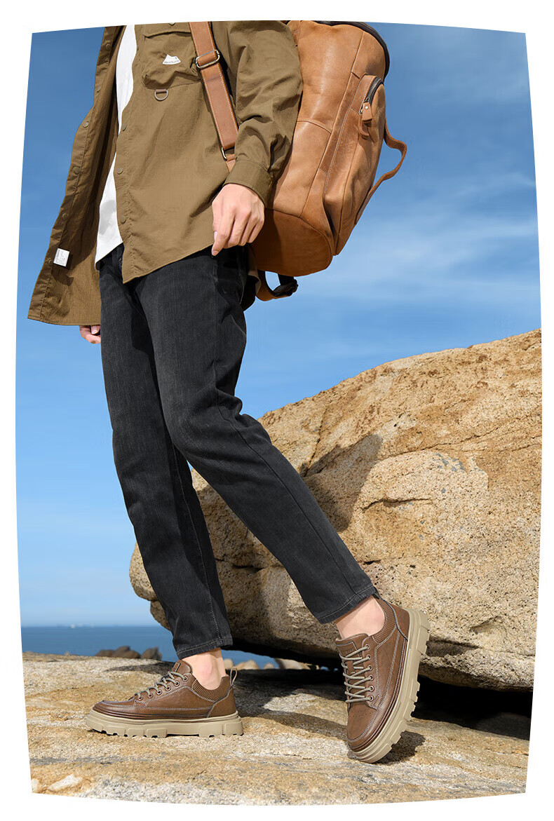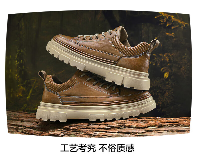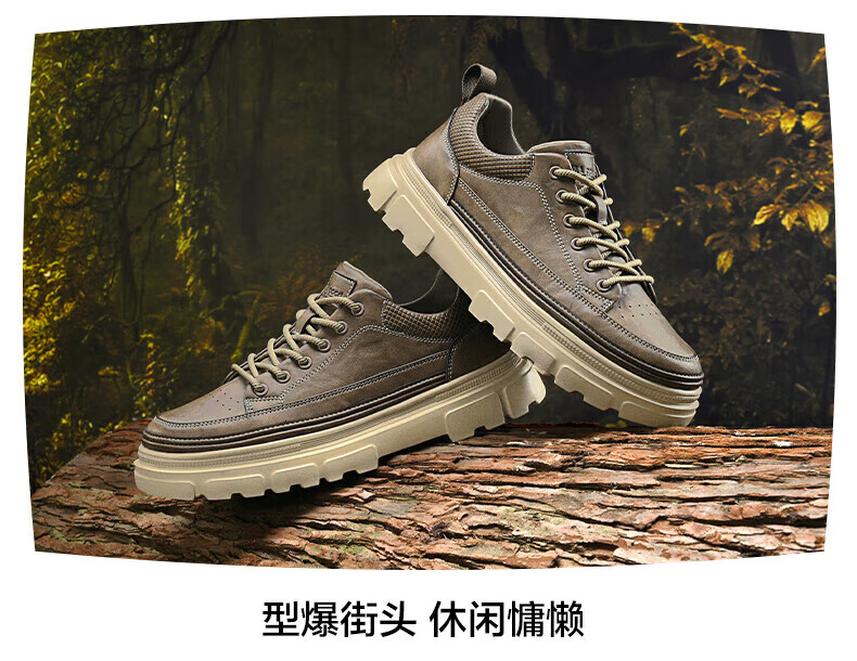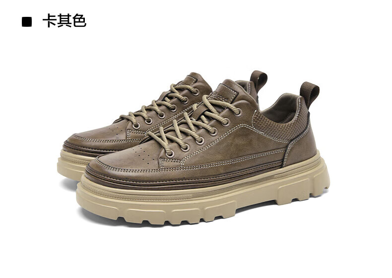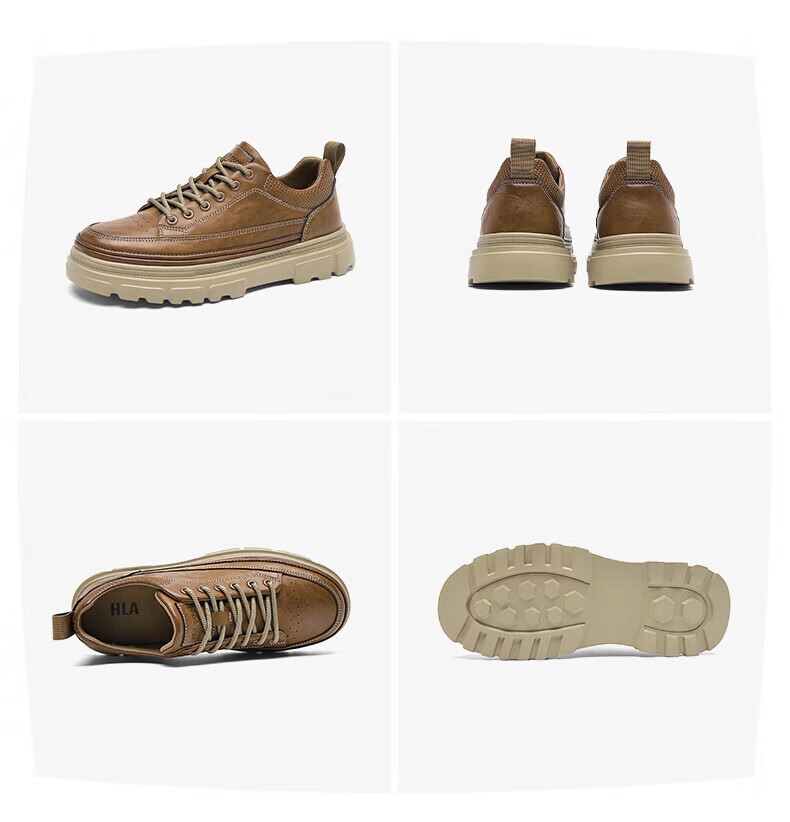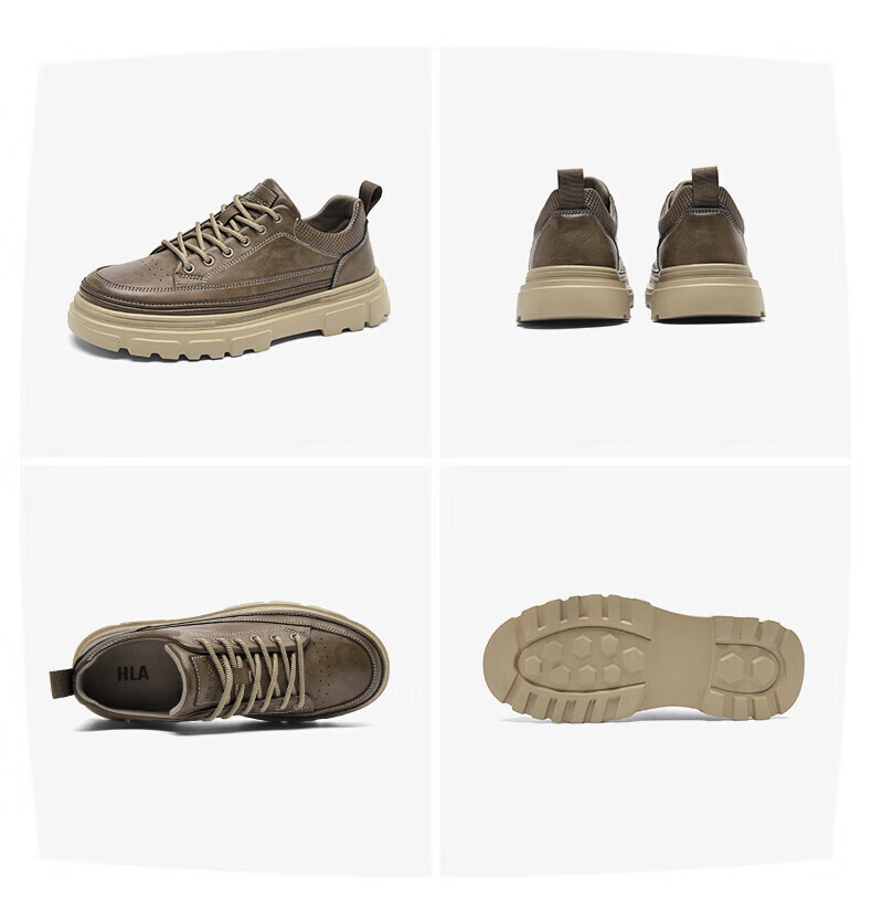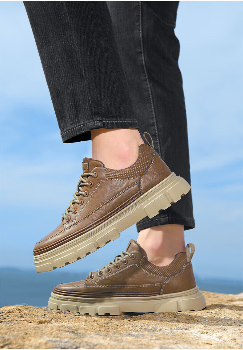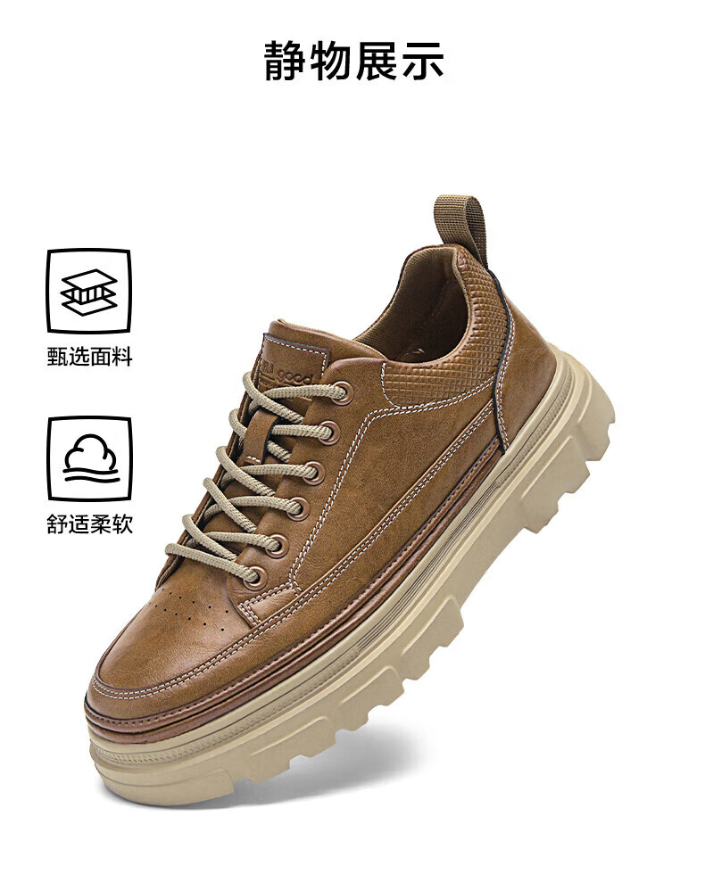 海澜之家(HLA)男鞋2025秋季新款工装鞋男厚底增高百搭休闲鞋 卡其色 39