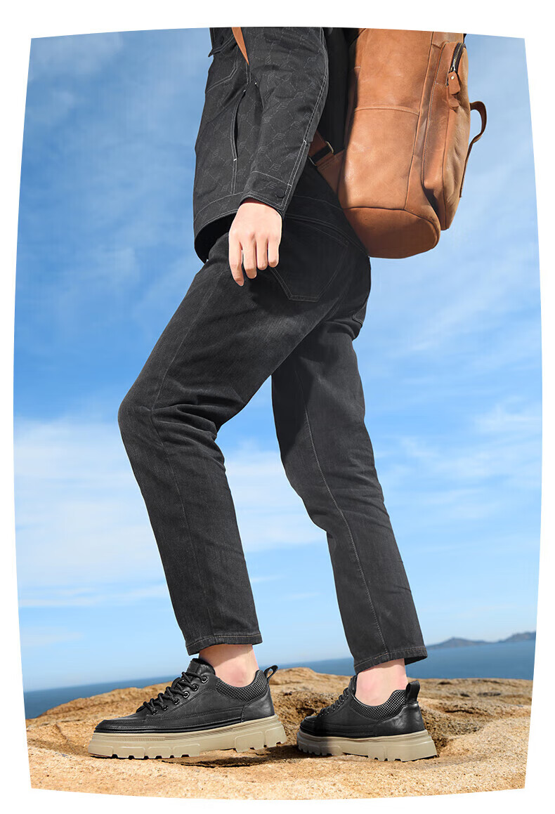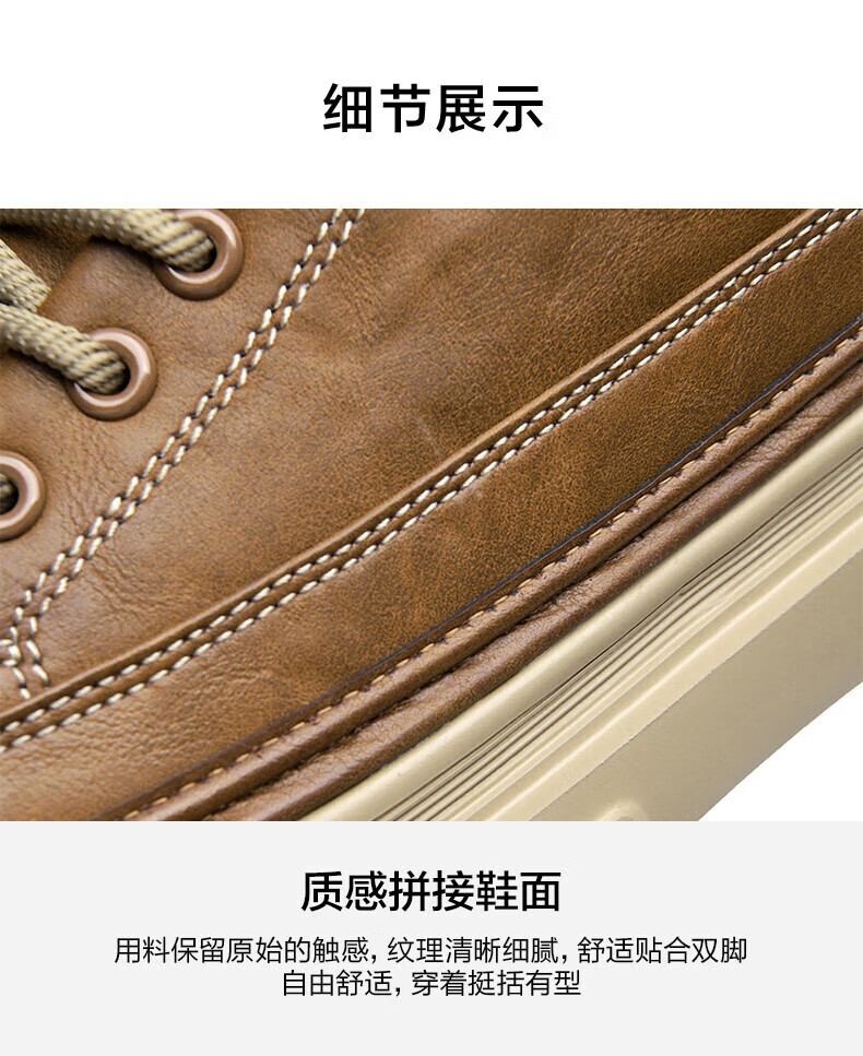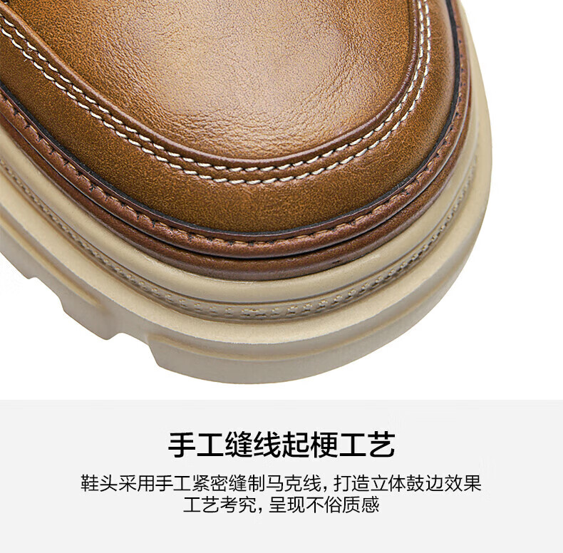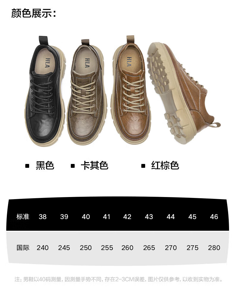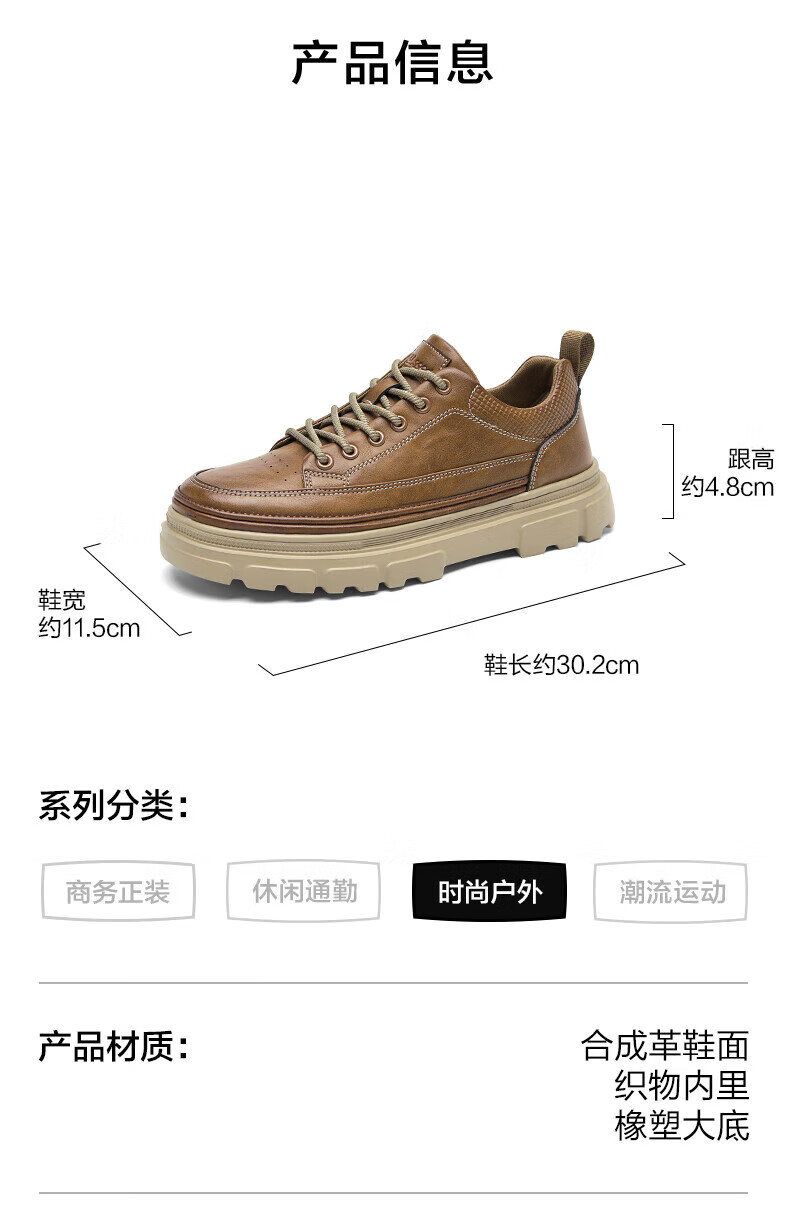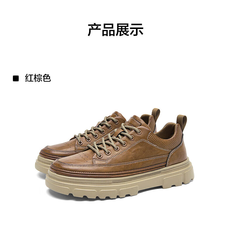 海澜之家(HLA)男鞋2025秋季新款工装鞋男厚底增高百搭休闲鞋 卡其色 39