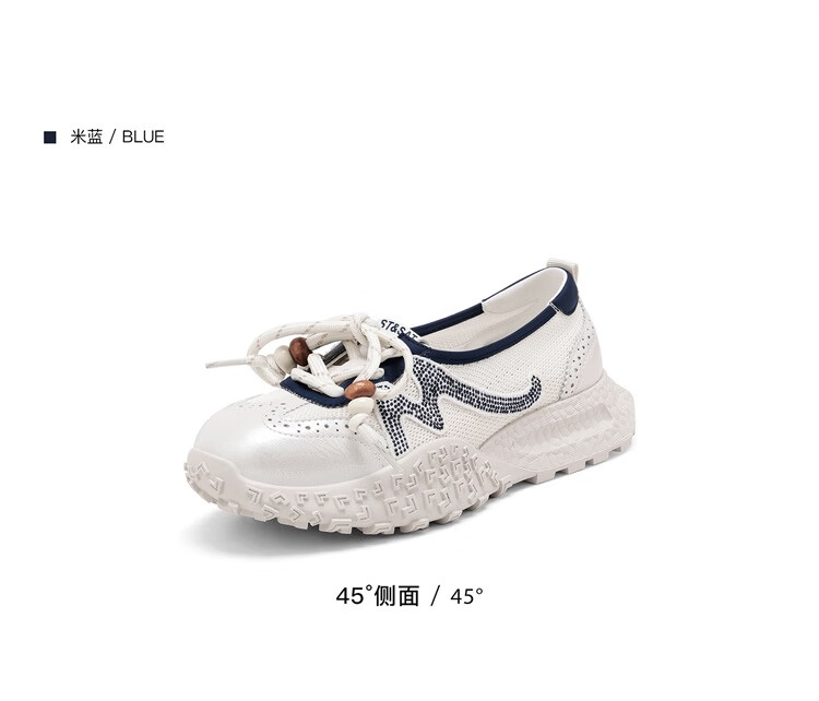 百思图25运动德训鞋平跟圆头男休闲鞋J2507BM5 米色/蓝色/红色 43