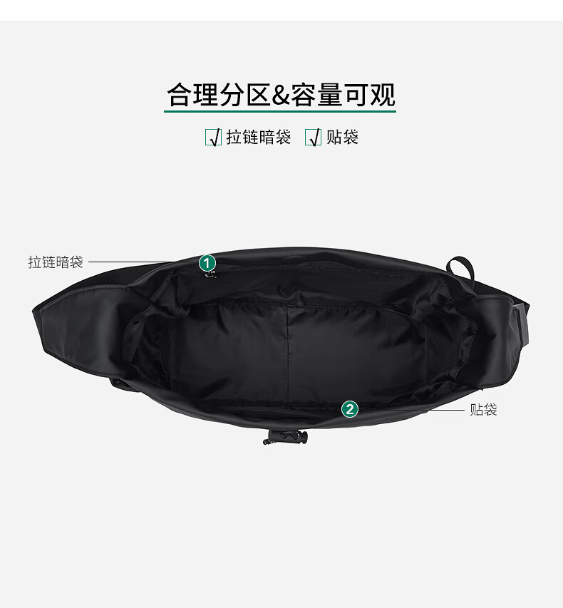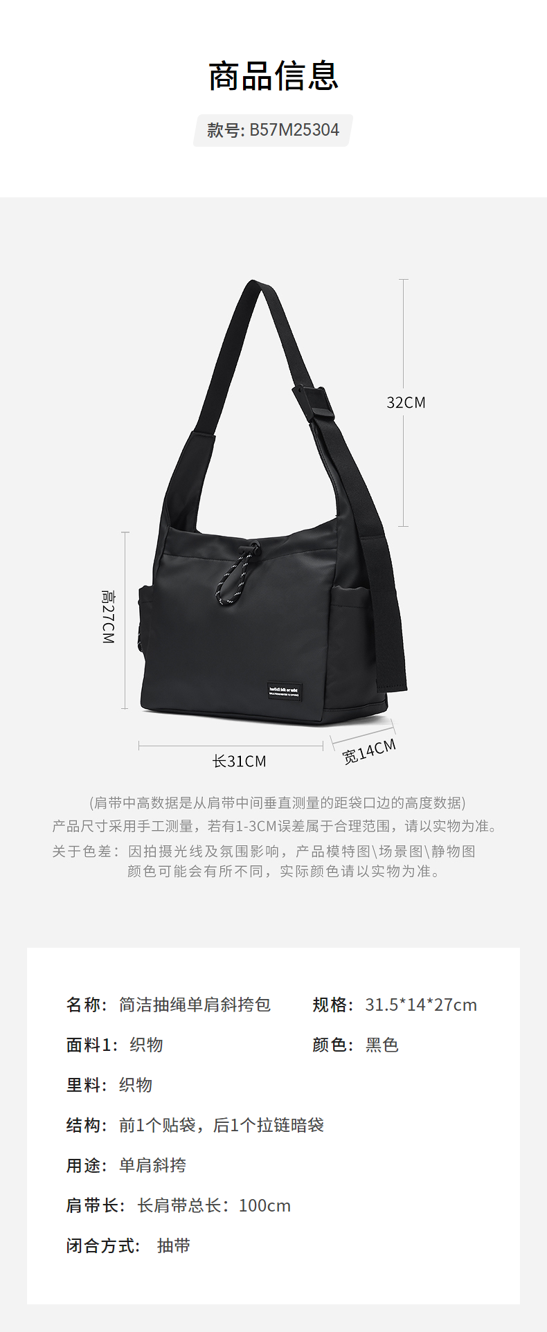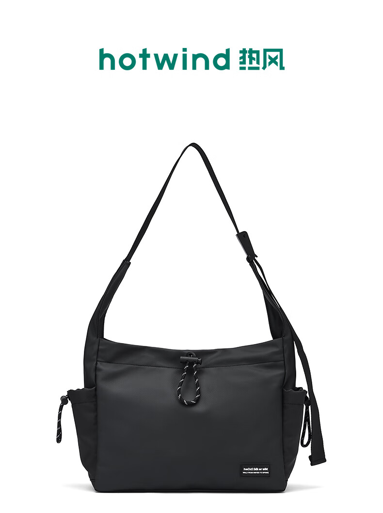 热风【商场同款】男士背包25年秋新款简洁抽绳单肩斜挎包休闲运动通勤 01黑色 F