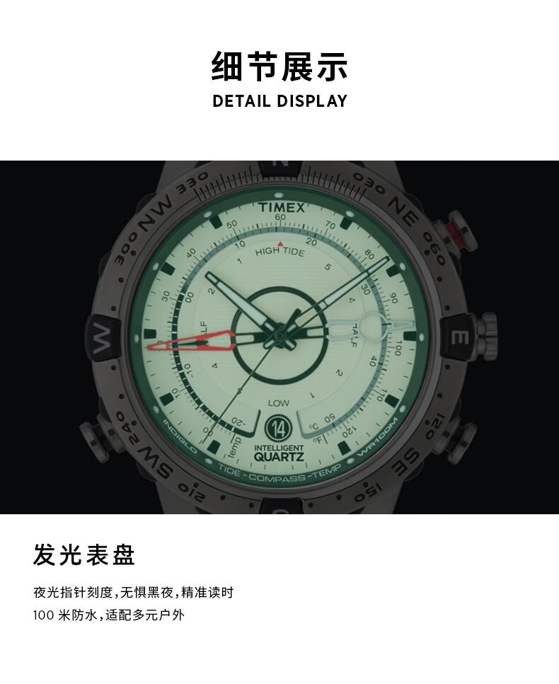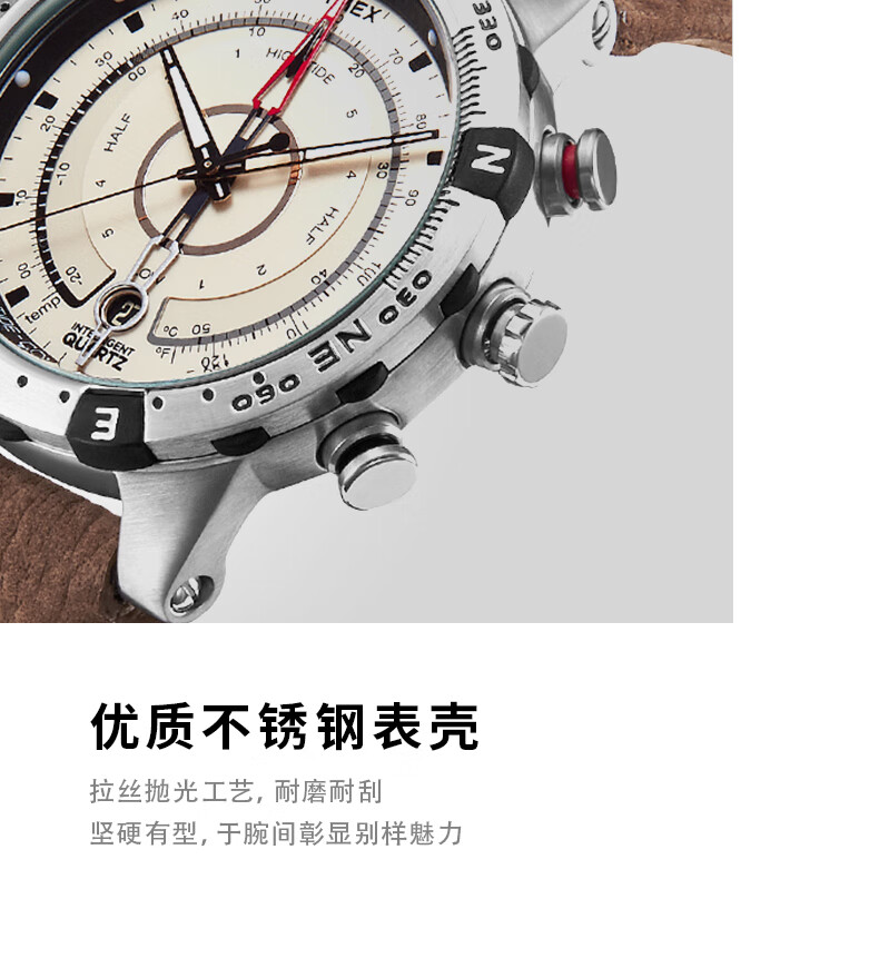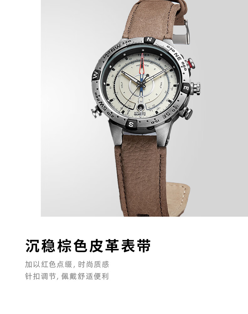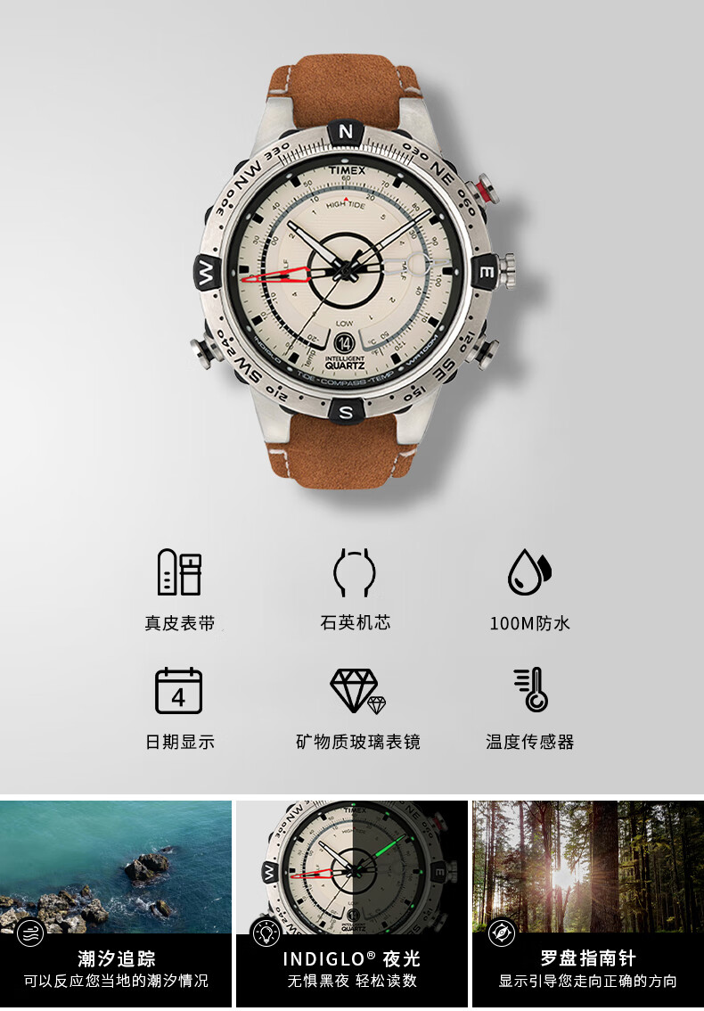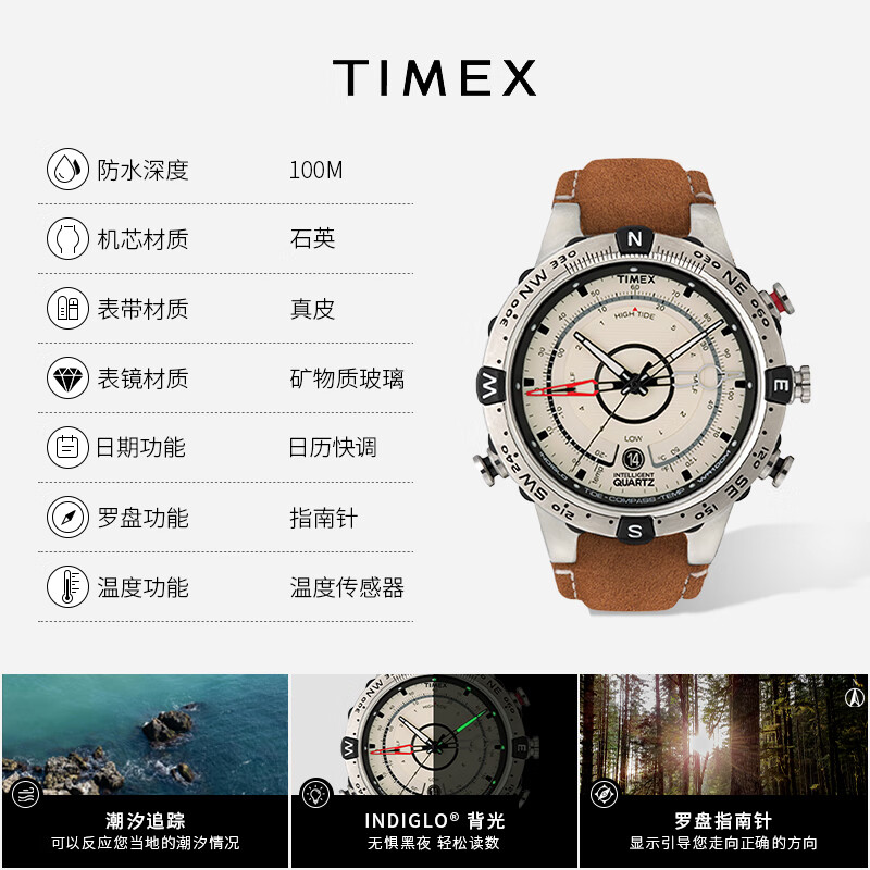 天美时Timex航海家石英运动户外夜光多功能男士皮带手表生日礼物T2N721