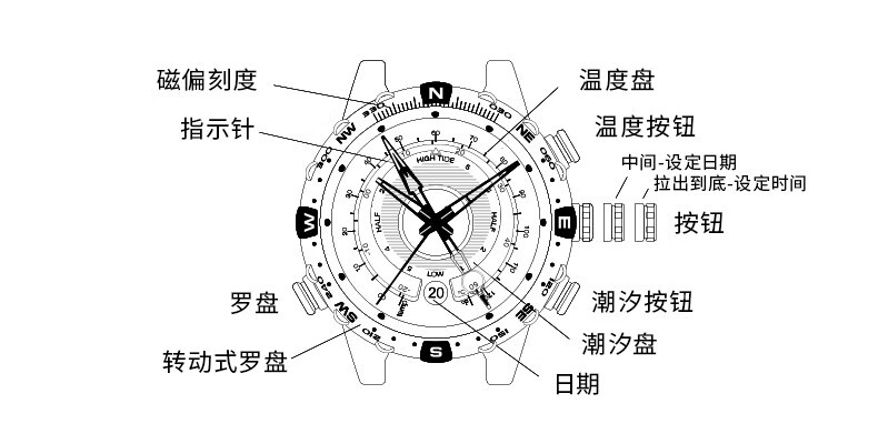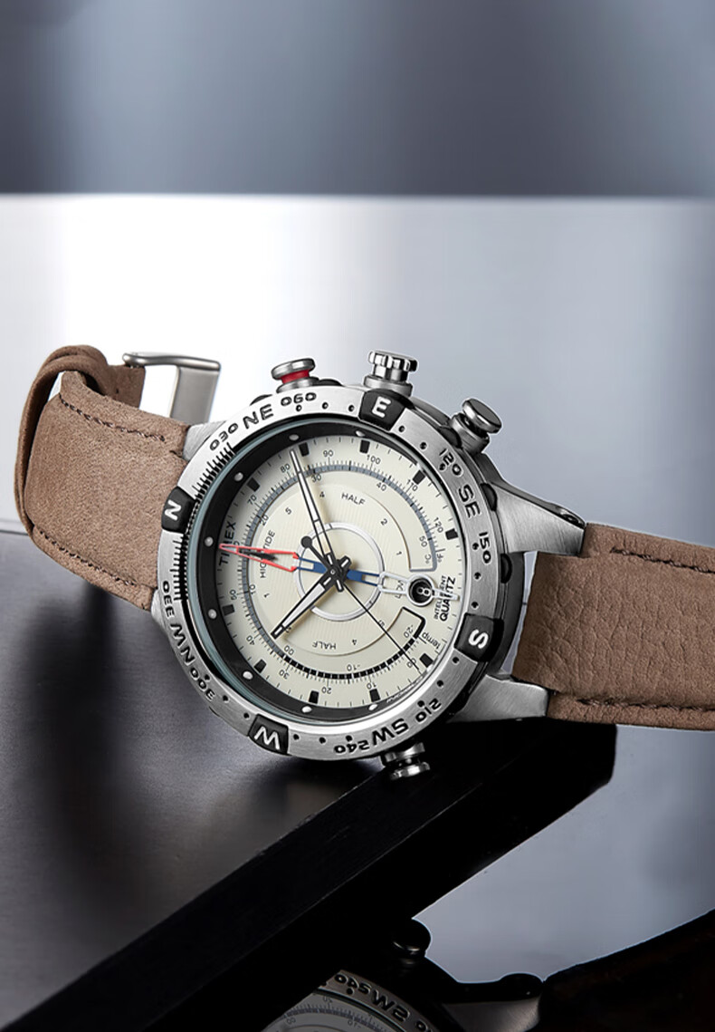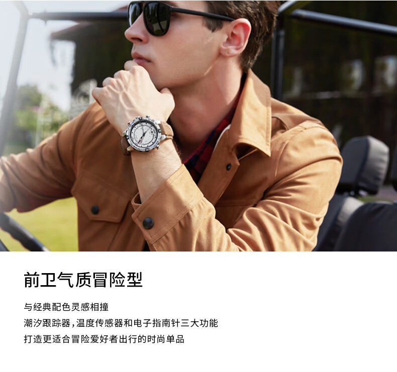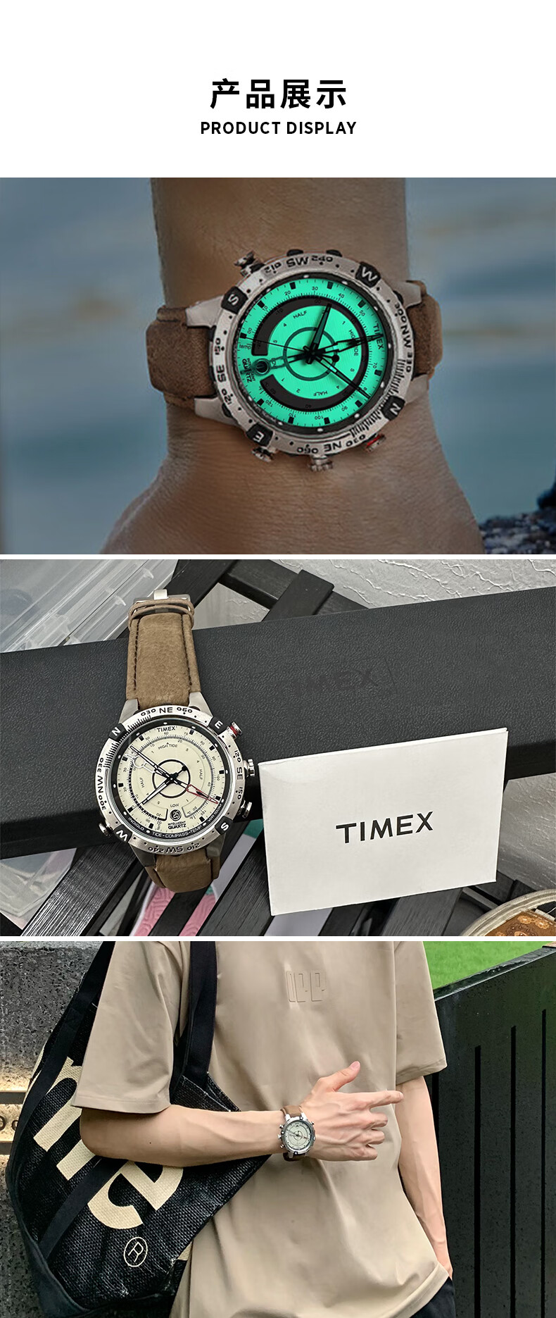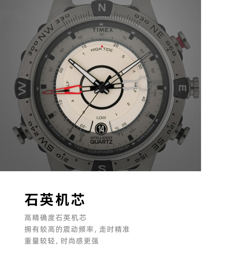 天美时Timex航海家石英运动户外夜光多功能男士皮带手表生日礼物T2N721