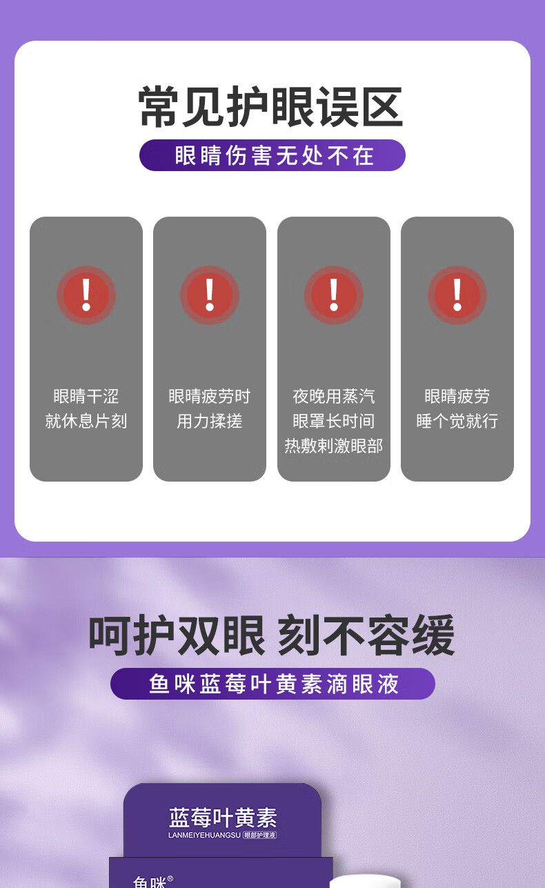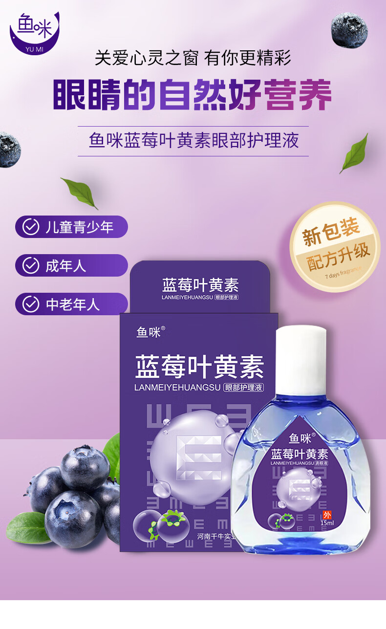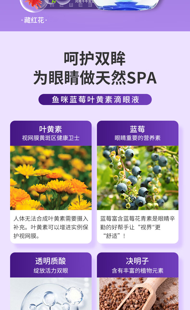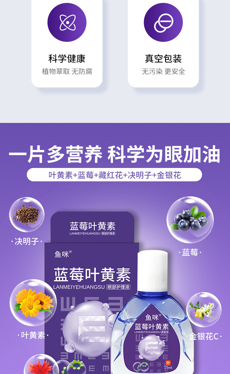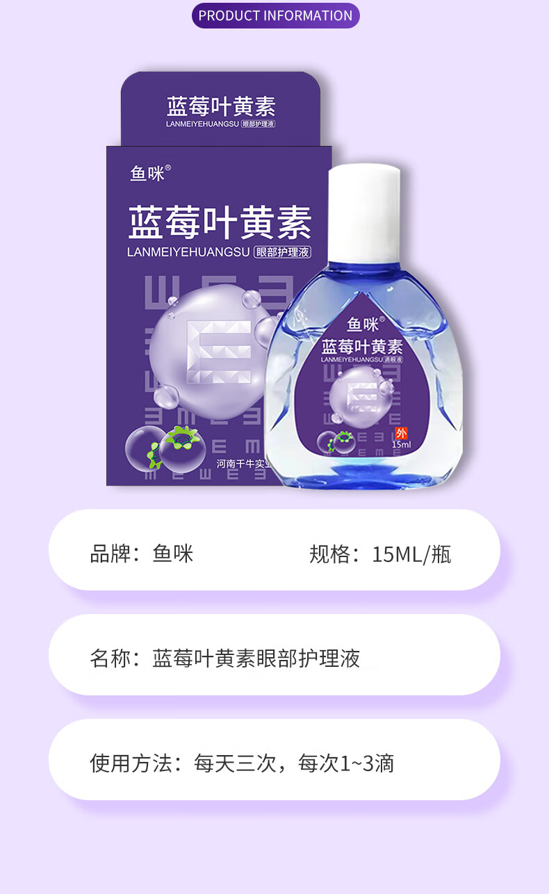 鱼咪蓝莓叶黄素滴眼液护眼液洗眼液非眼药水疲劳眼干眼涩视力模糊熬夜