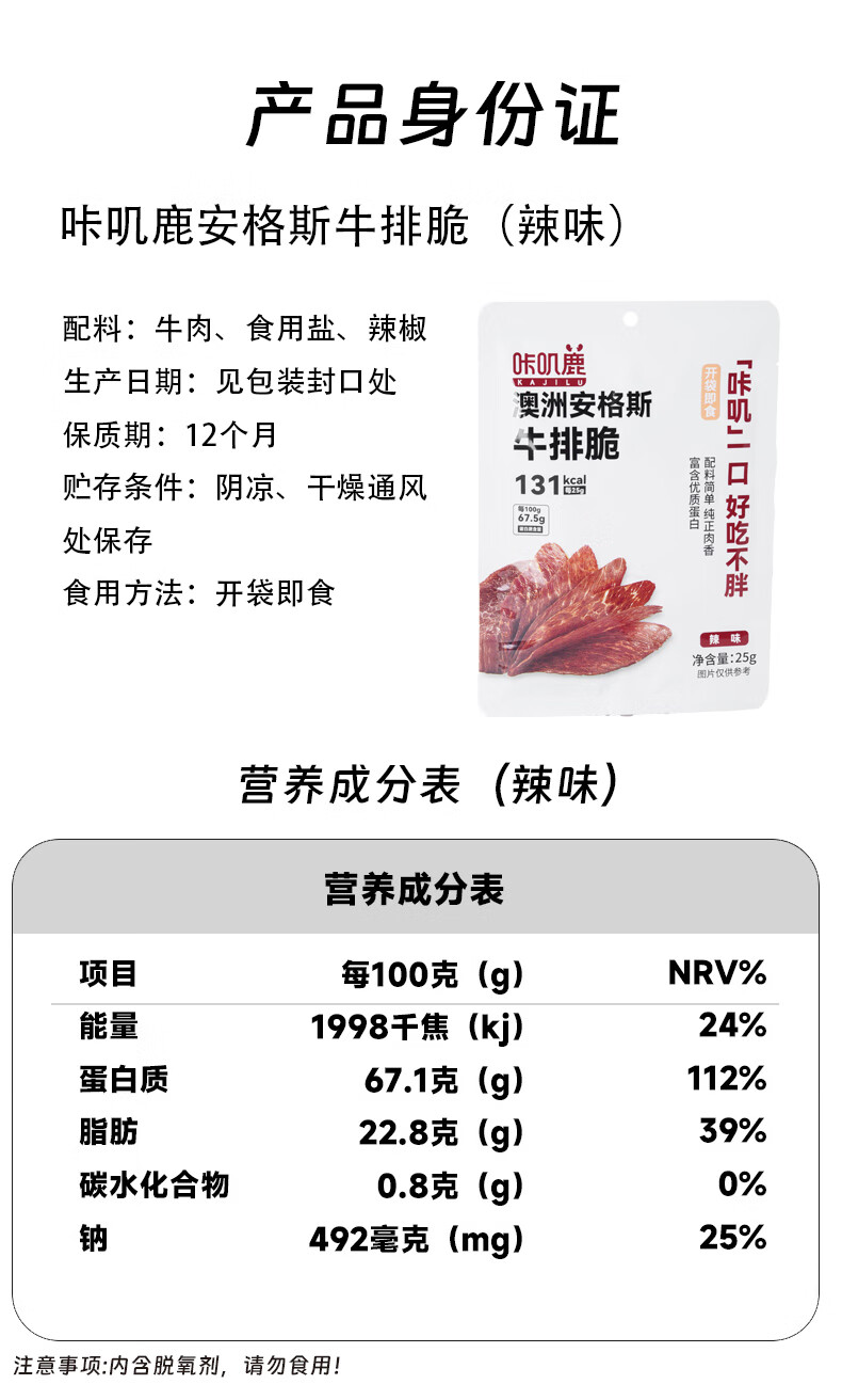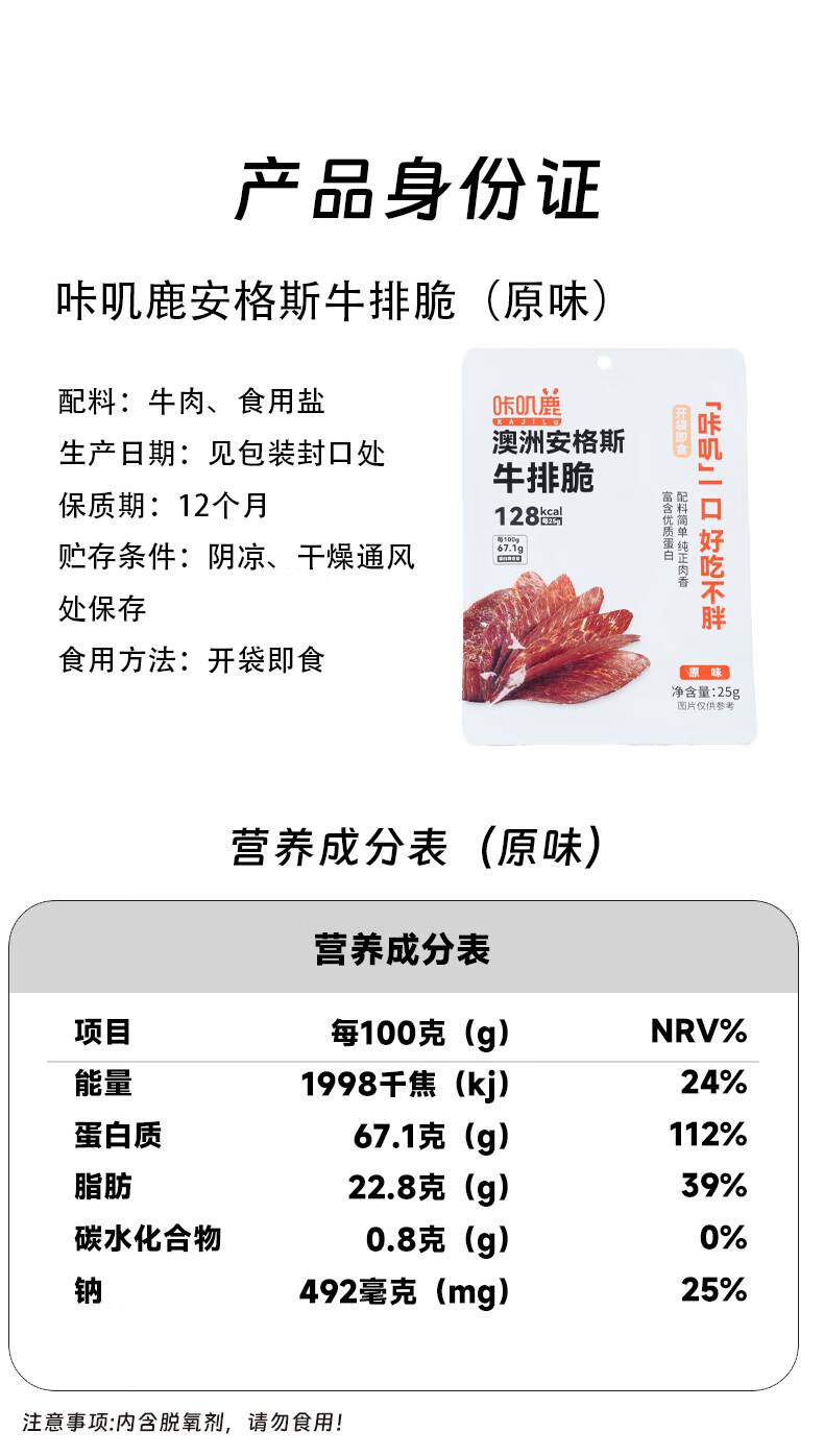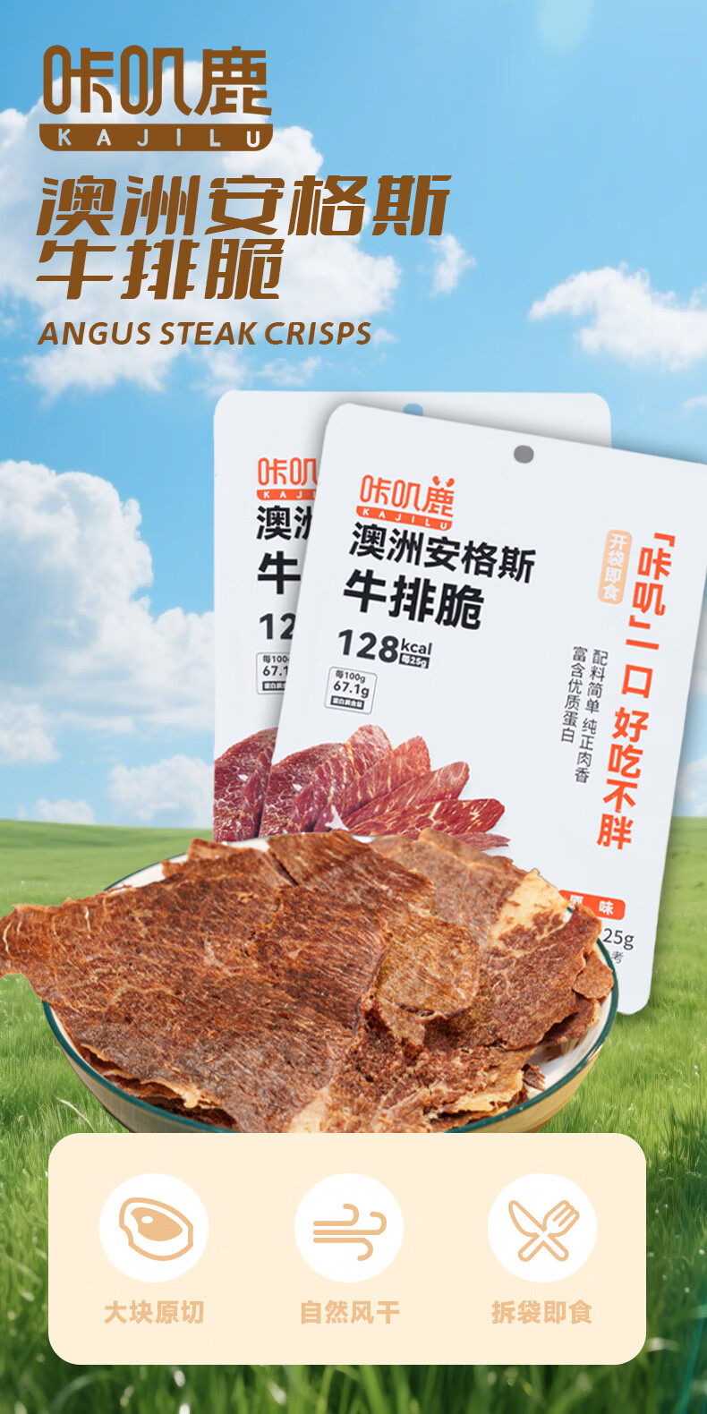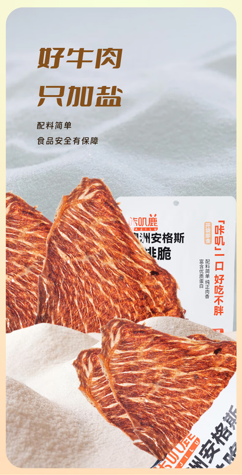 咔叽鹿安格斯薄脆牛肉好牛肉只有牛肉和盐健康安全,配料简单 原味 1袋装