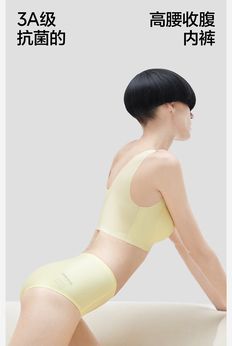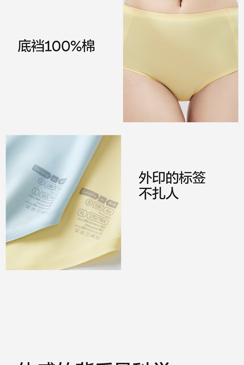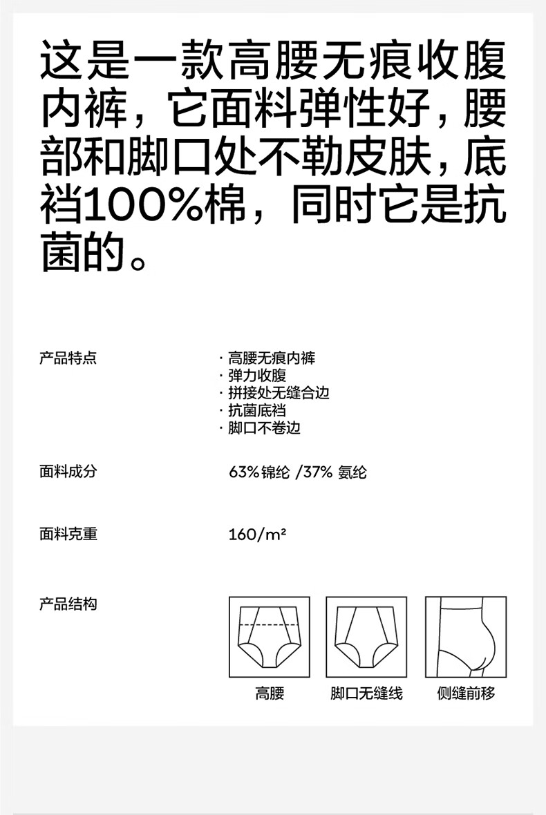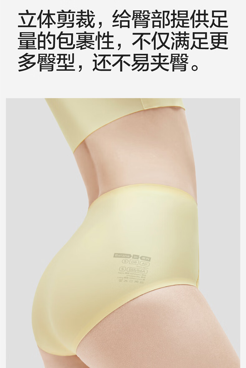 蕉内银皮5系女士内裤高腰收腹无痕防夹臀防卷边棉里贴抗菌三角裤3件装 冰桃+氧黑+枪灰 3条 M