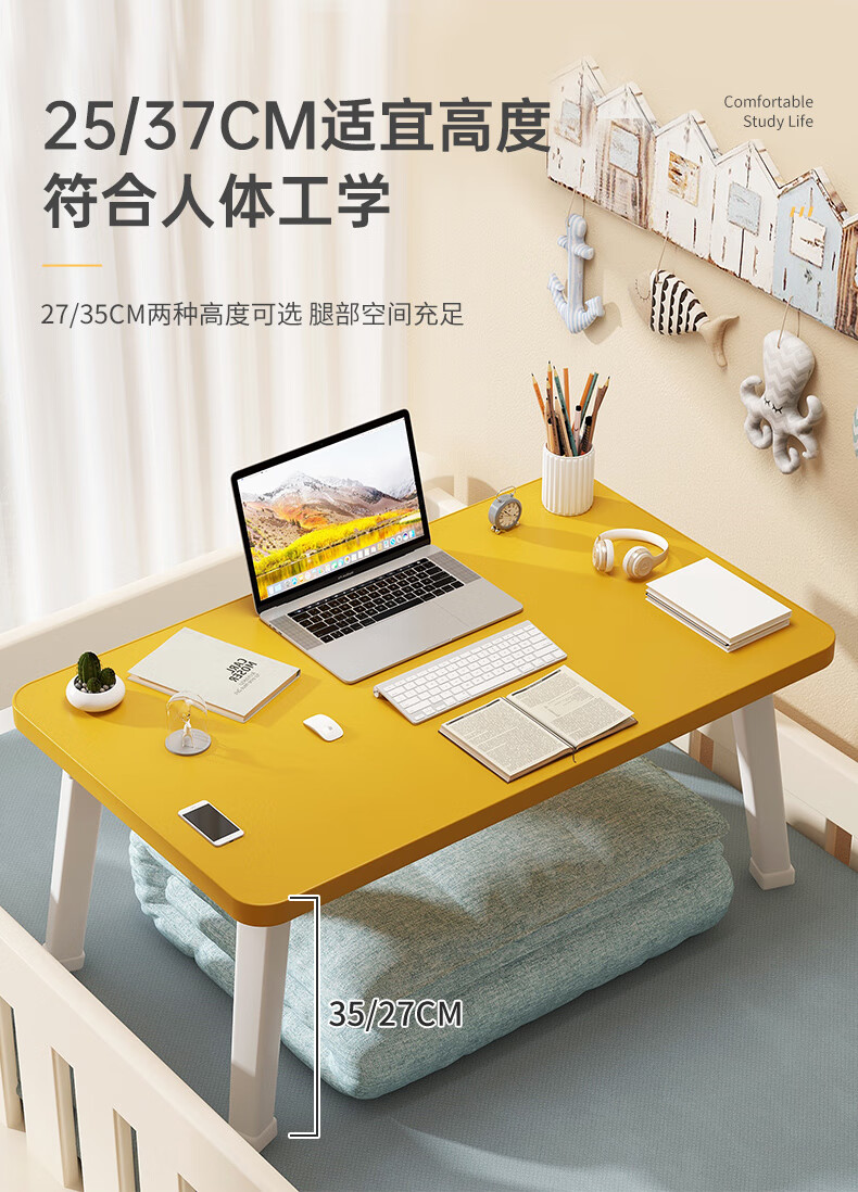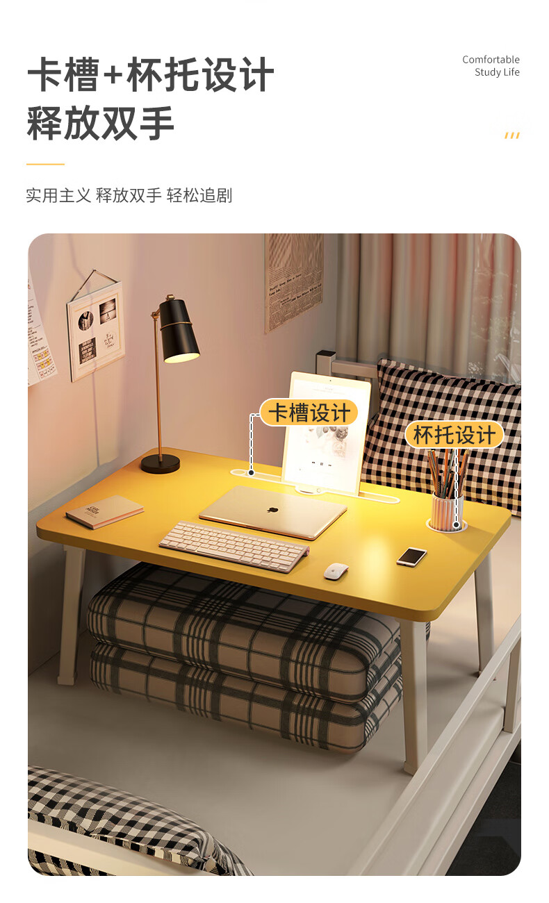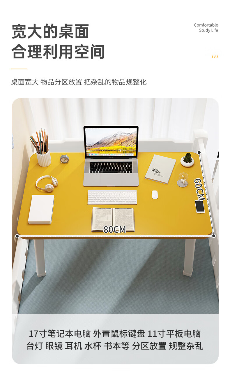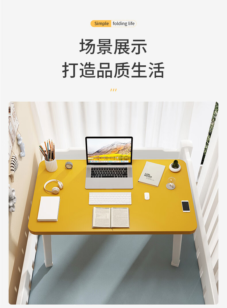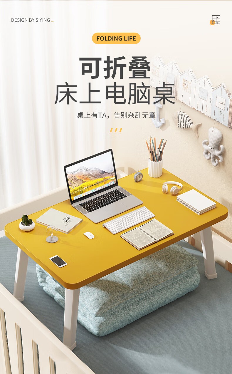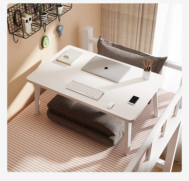 DEATKN德国床上桌可折叠宿舍懒人电脑桌卧室飘窗小桌子学生上铺学习书桌 【平面款】暖白色60*40*28CM