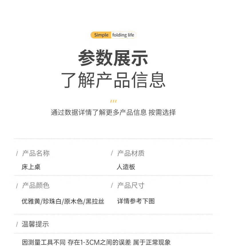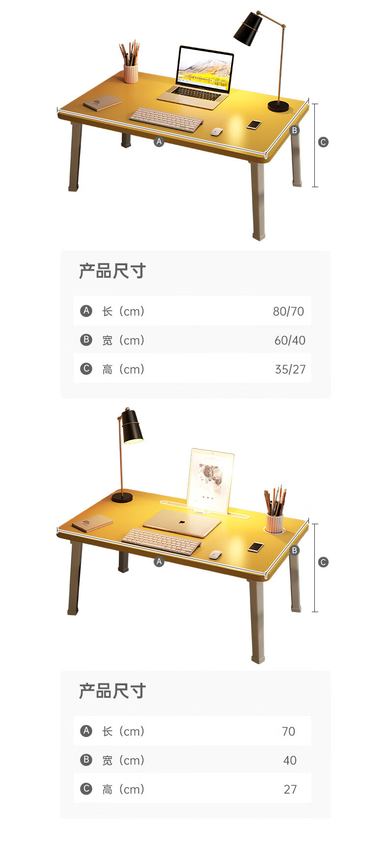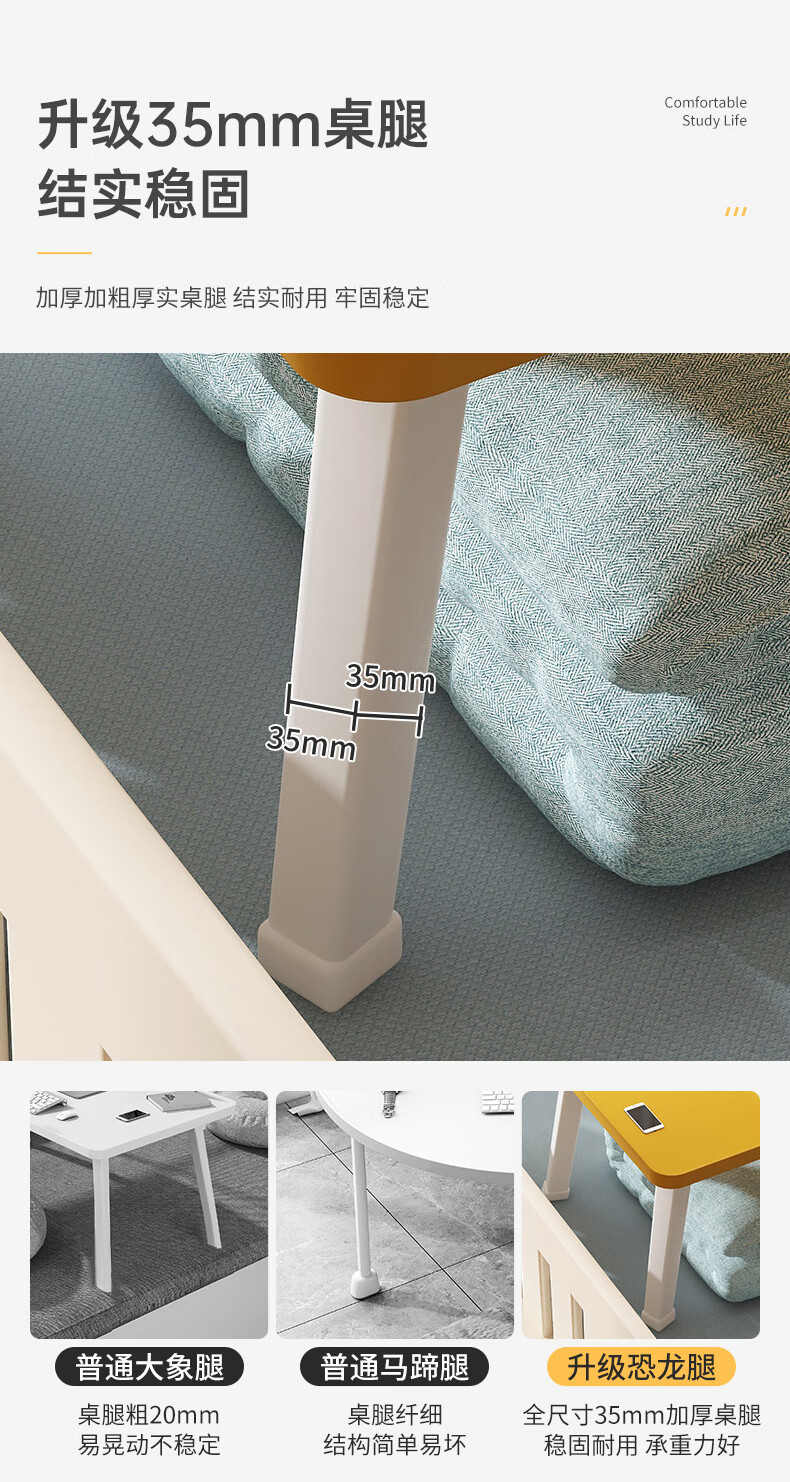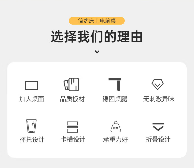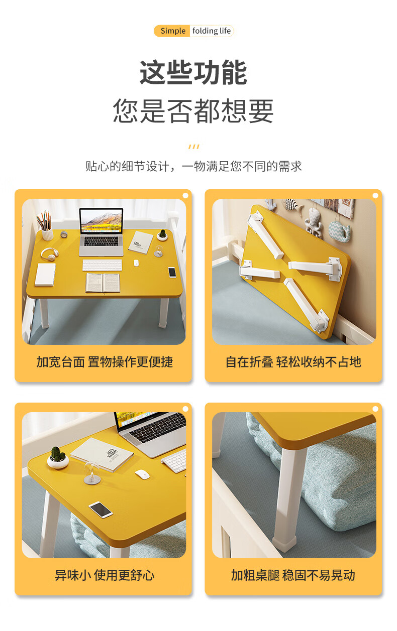 DEATKN德国床上桌可折叠宿舍懒人电脑桌卧室飘窗小桌子学生上铺学习书桌 【平面款】暖白色60*40*28CM