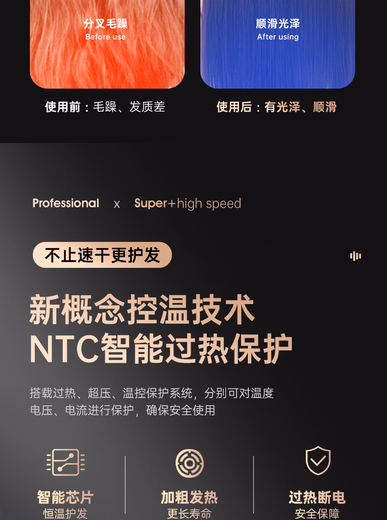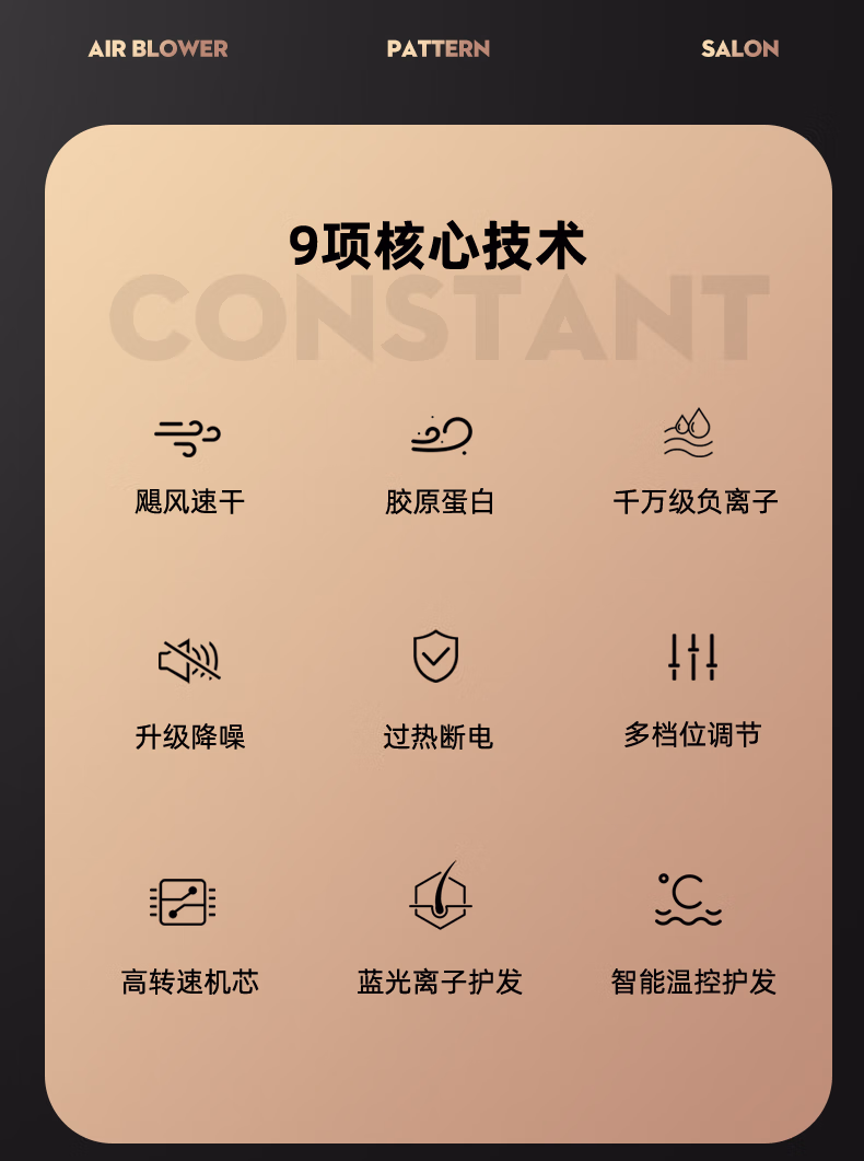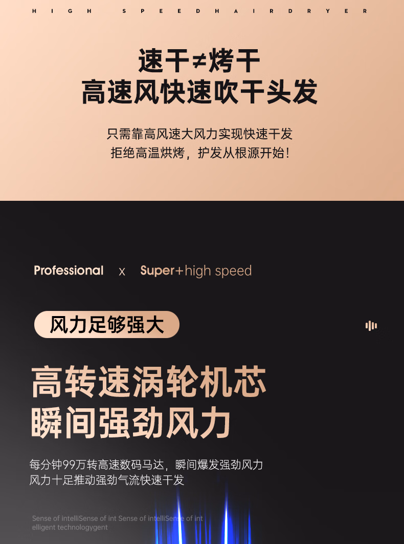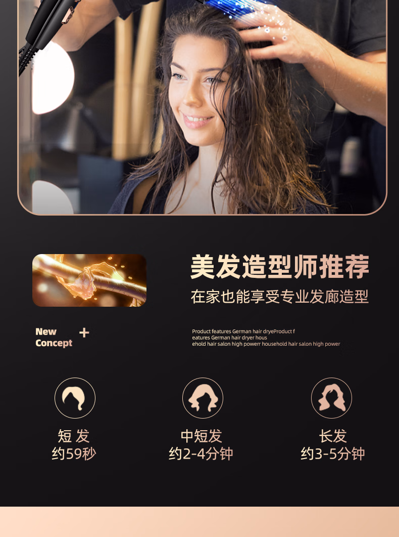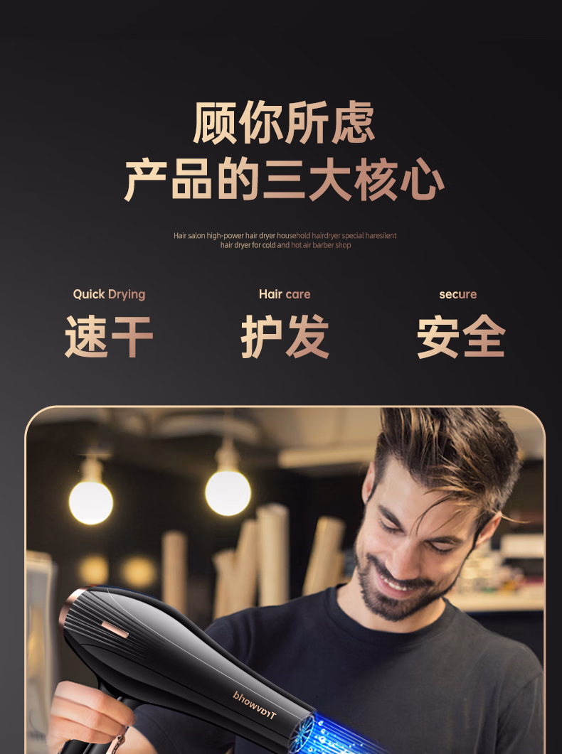 DEATKN德国电吹风机家用大功率发廊理发店3500W负离子速干5000风筒 旗舰版 30万转速+19秒速干【含三】