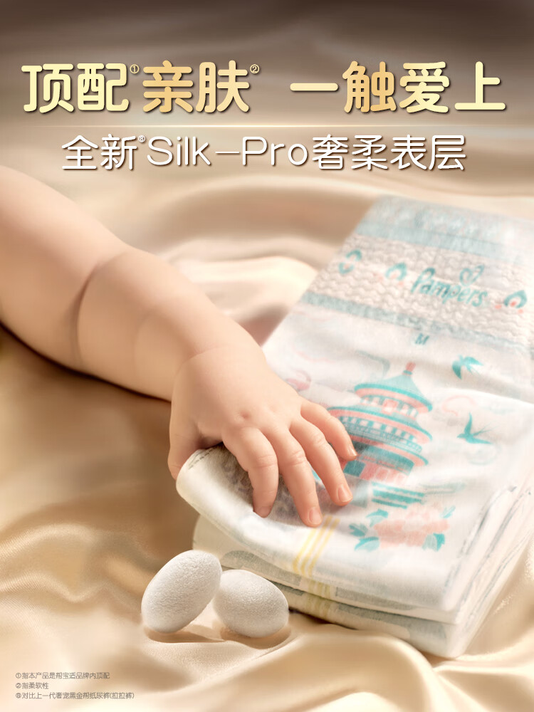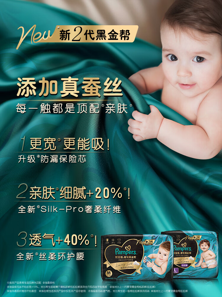 帮宝适【新生儿顶配】黑金帮纸尿裤添加真蚕丝 婴儿超薄透气尿不湿 【超值】M68片(6-11kg)