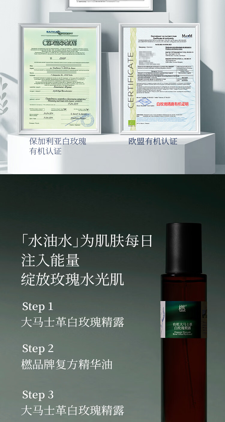橪有机大马士革白玫瑰精露爽肤水化妆水30ml