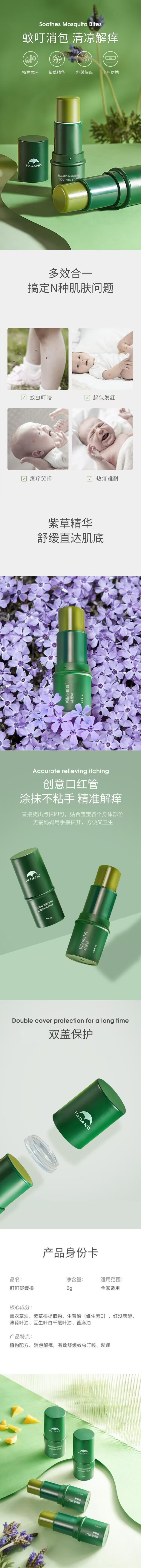 帕达诺叮叮多效儿童舒缓棒紫草膏止痒膏驱蚊防蚊虫叮咬 6g【临期清仓】