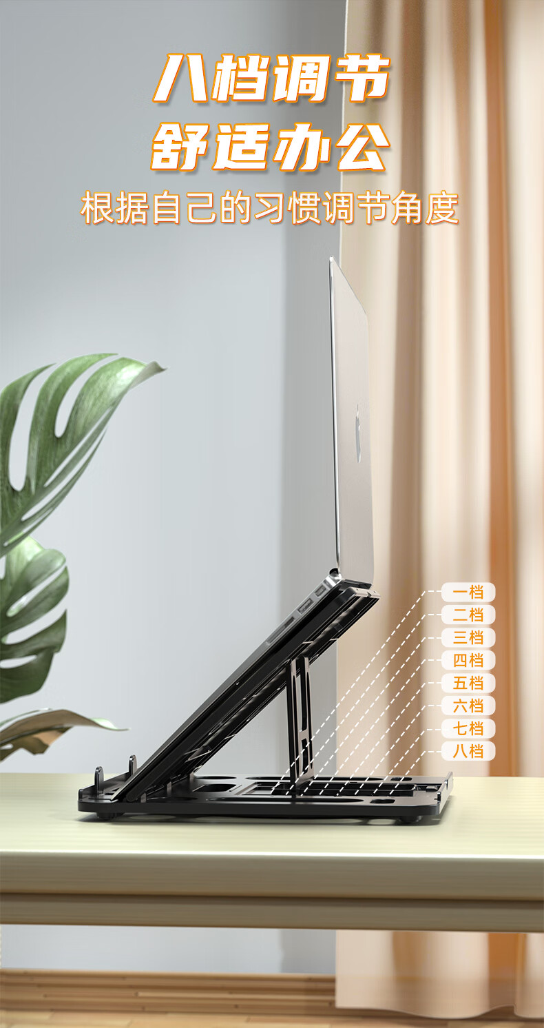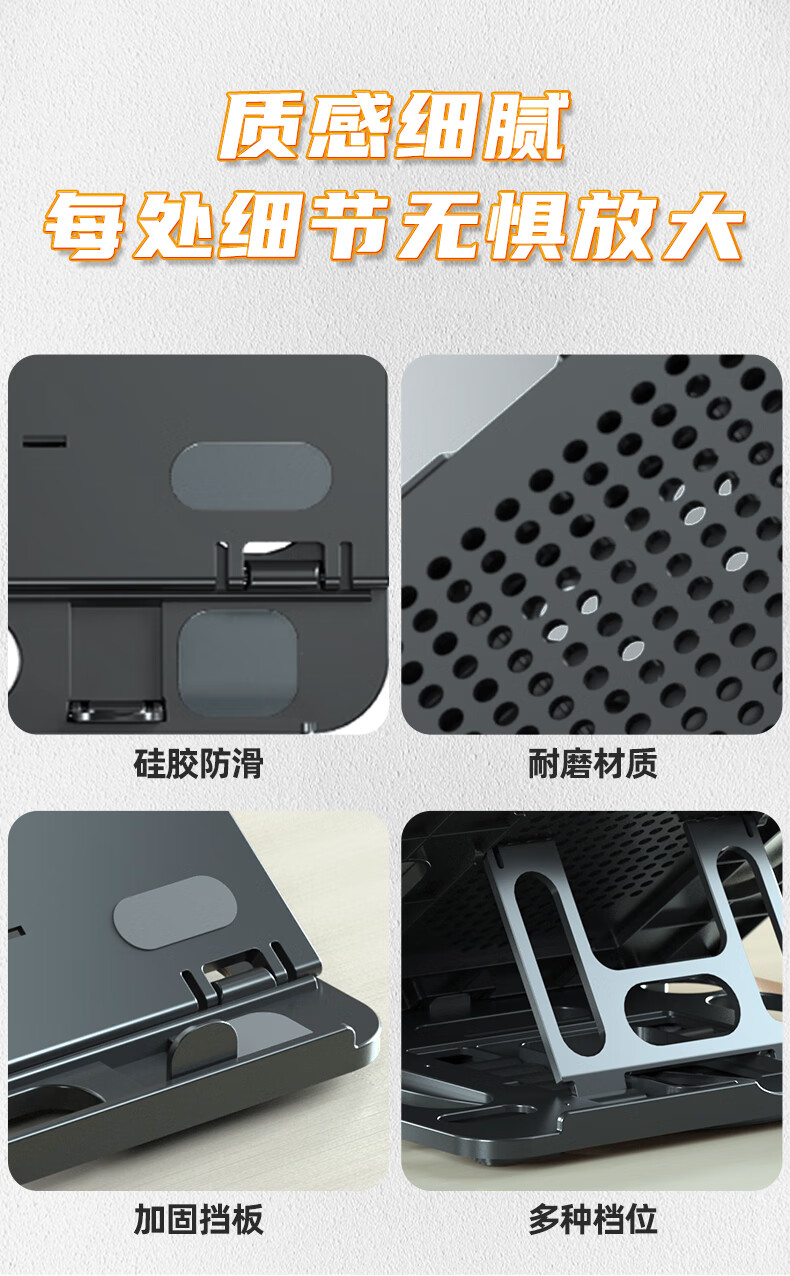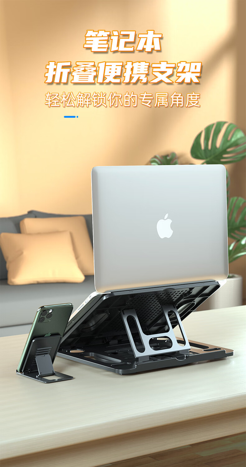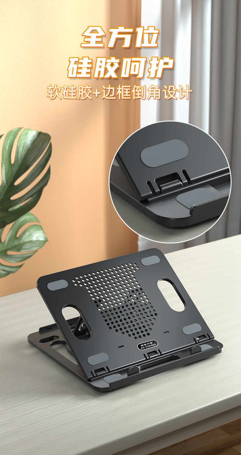 酷睿冰尊(ICE COOREL) 笔记本电脑支架可旋转8档升降散热架增高架苹果华为手提电脑便携托架 E6支架 黑 标准版【带手机支架+无旋转】