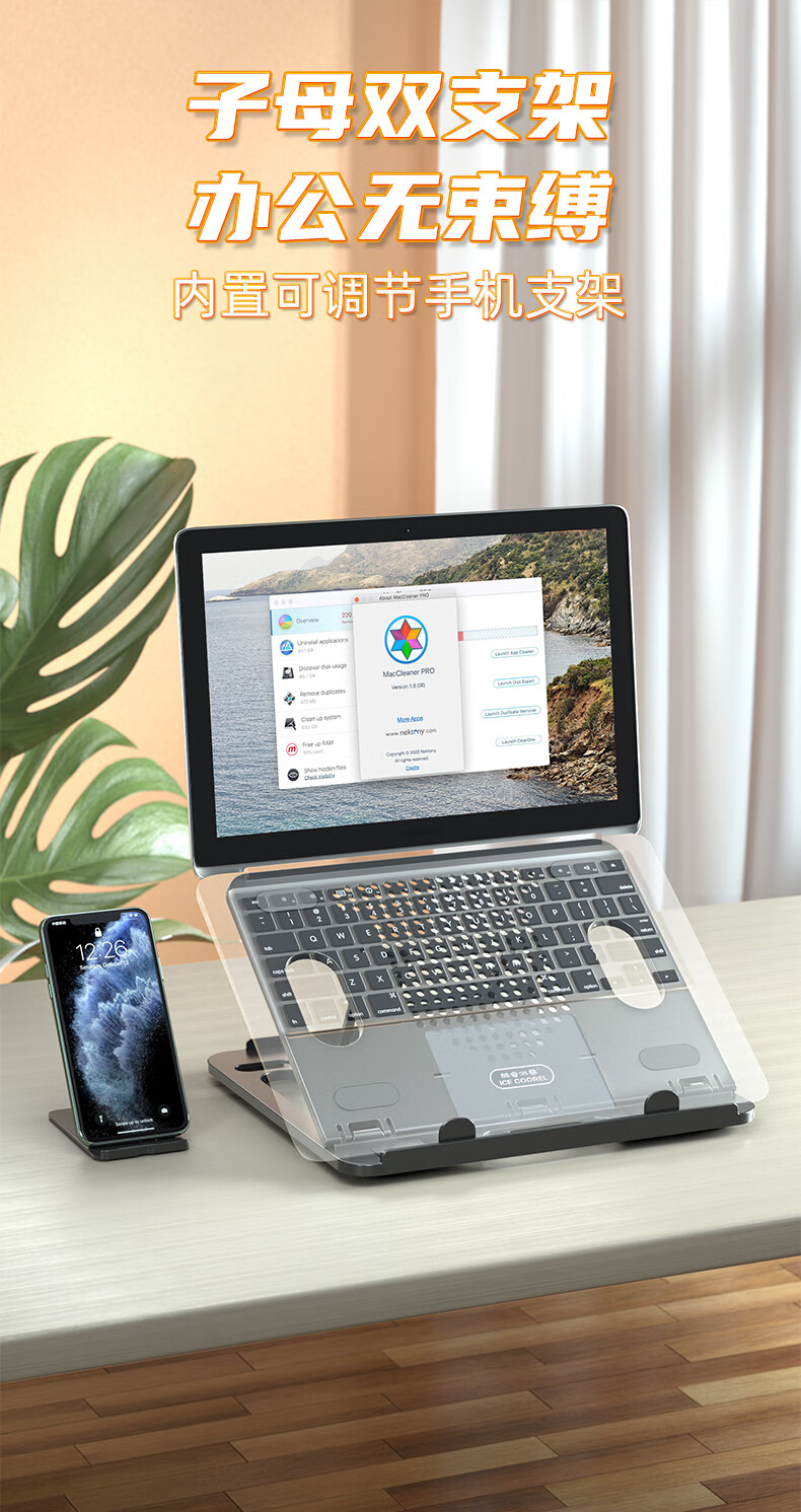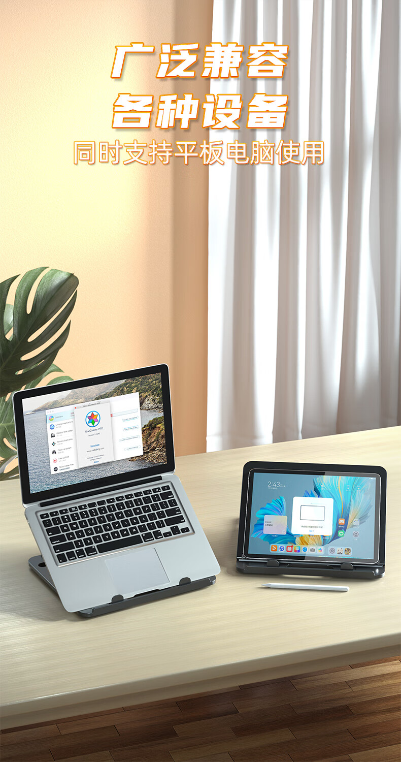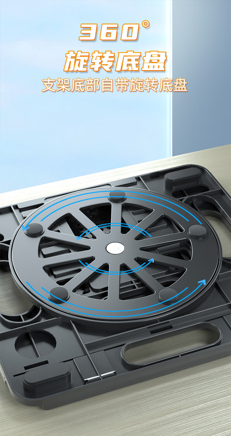 酷睿冰尊(ICE COOREL) 笔记本电脑支架可旋转8档升降散热架增高架苹果华为手提电脑便携托架 E6支架 黑 标准版【带手机支架+无旋转】