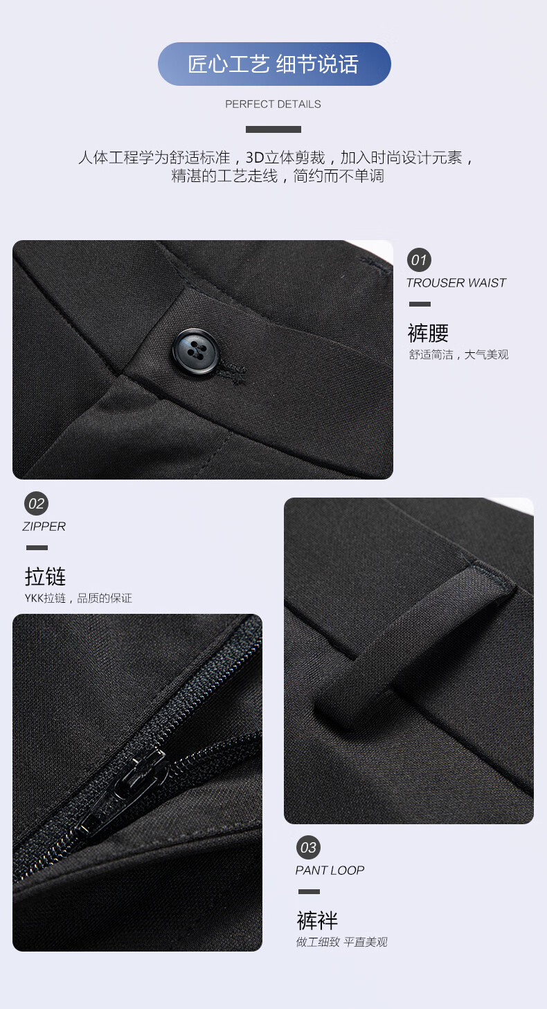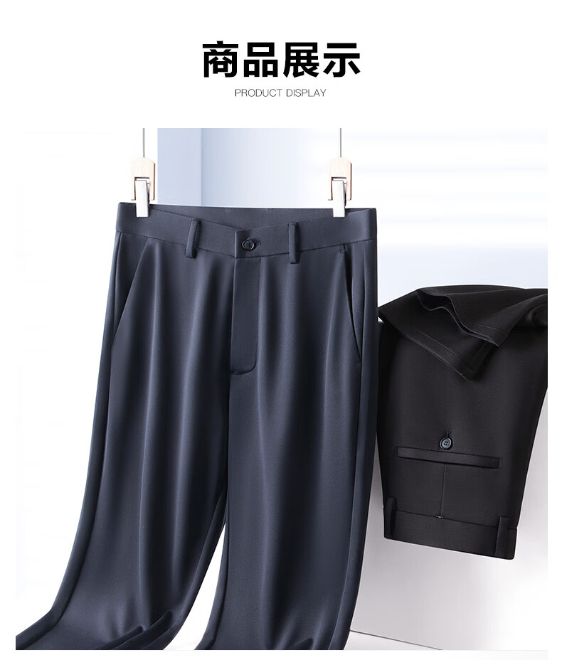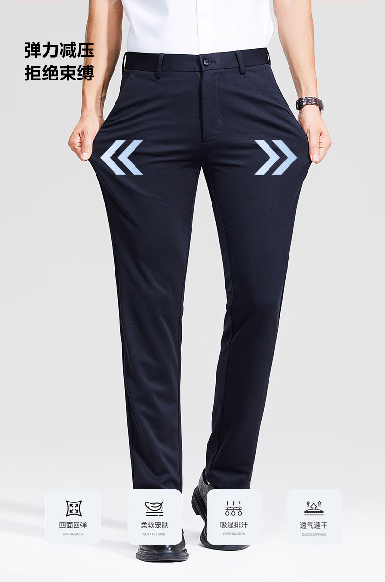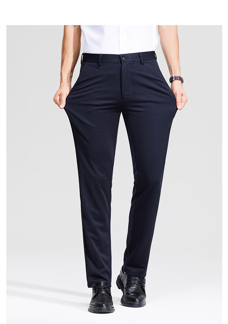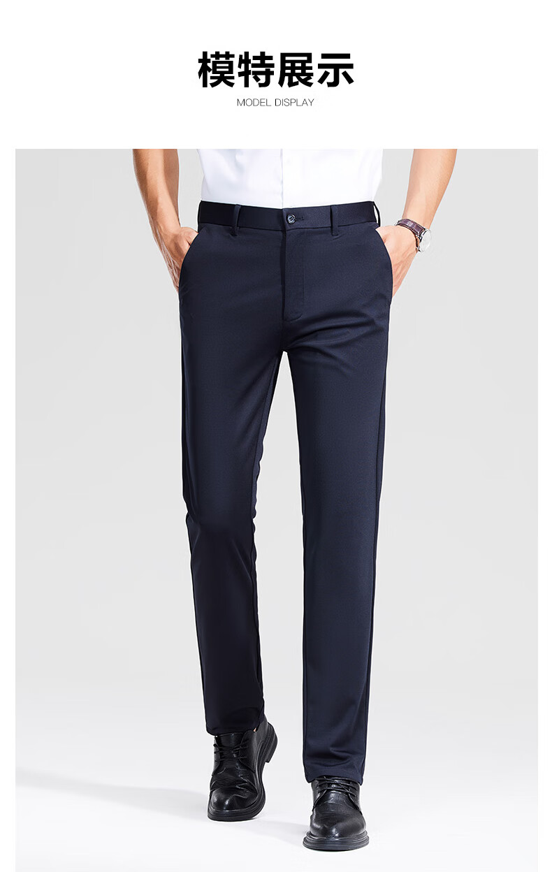 罗蒙轻奢商务休闲裤男士2025春夏季宽松直筒弹力免烫抗皱爸爸长裤子男 上青 33
