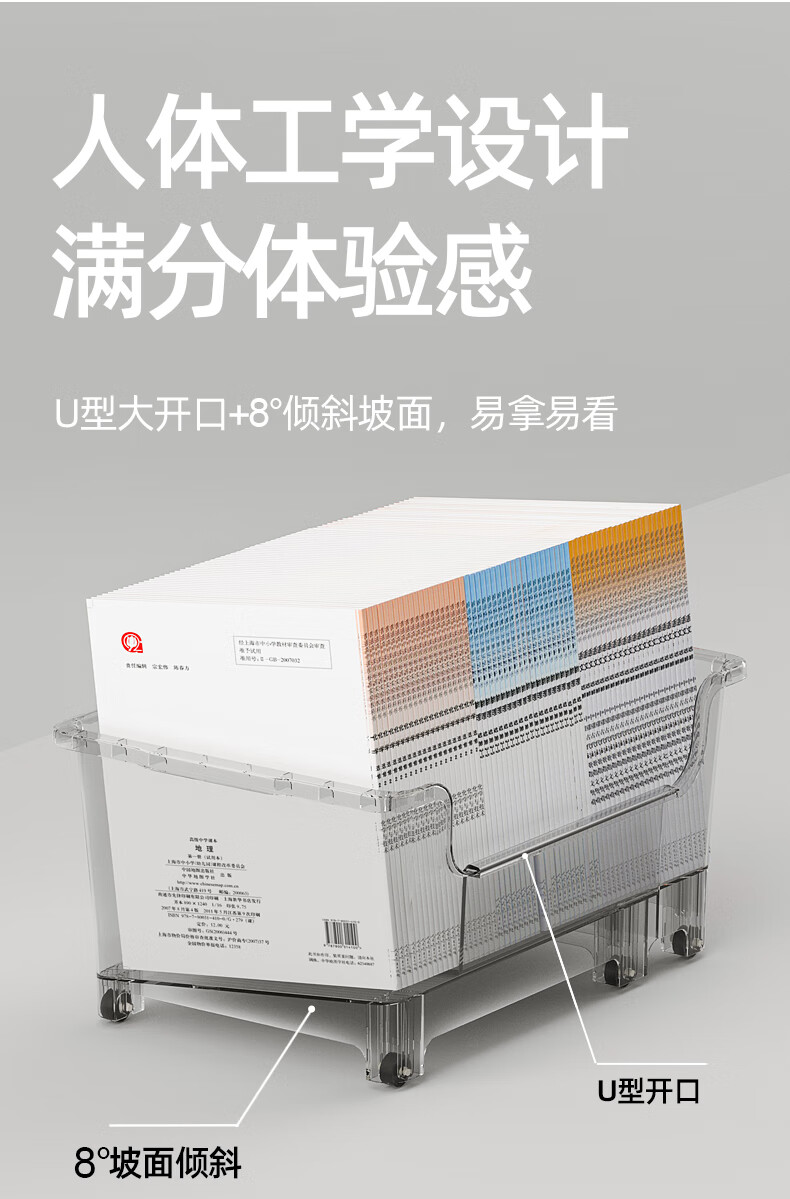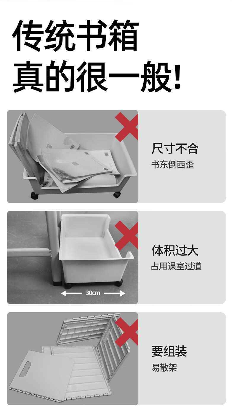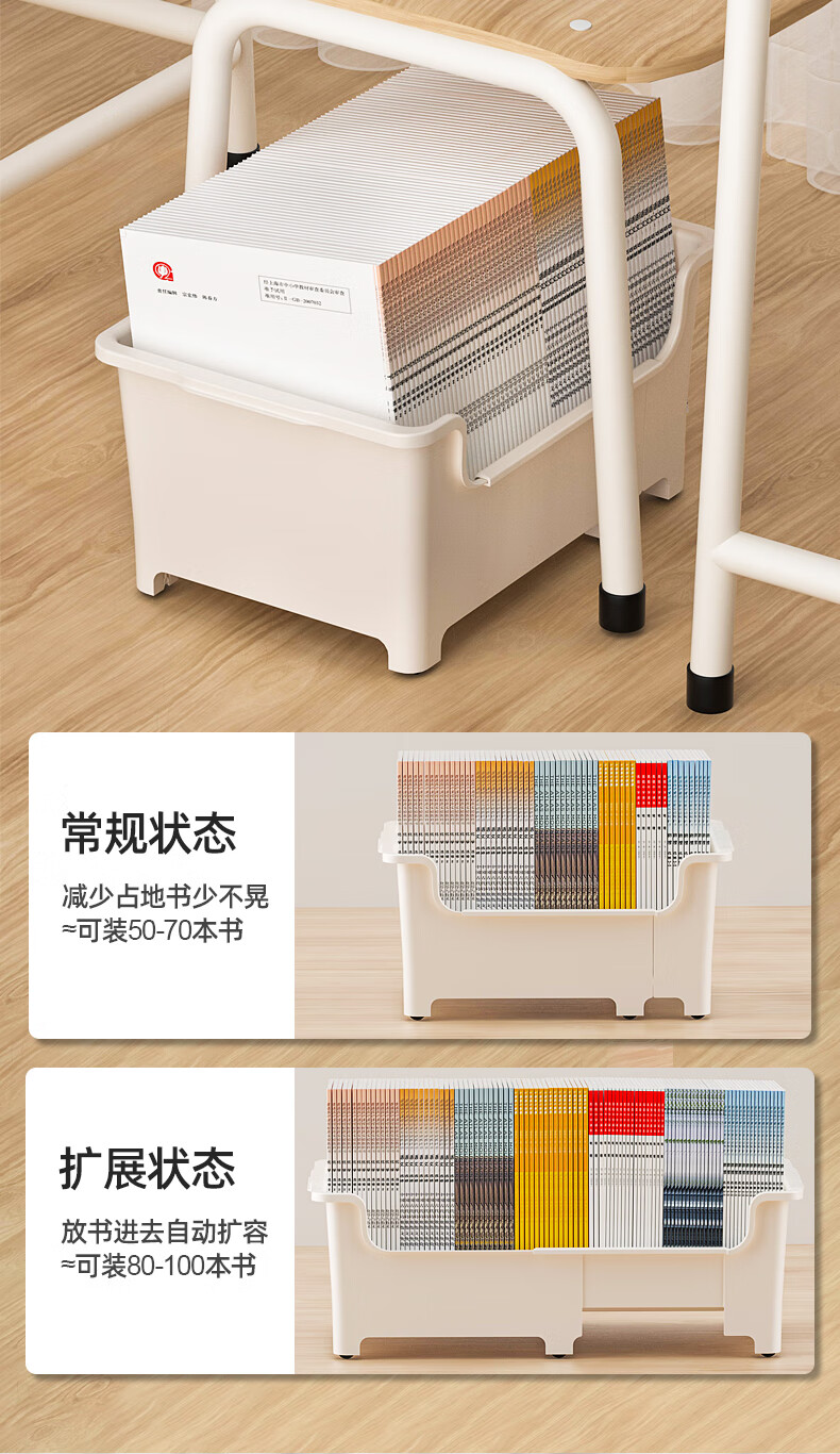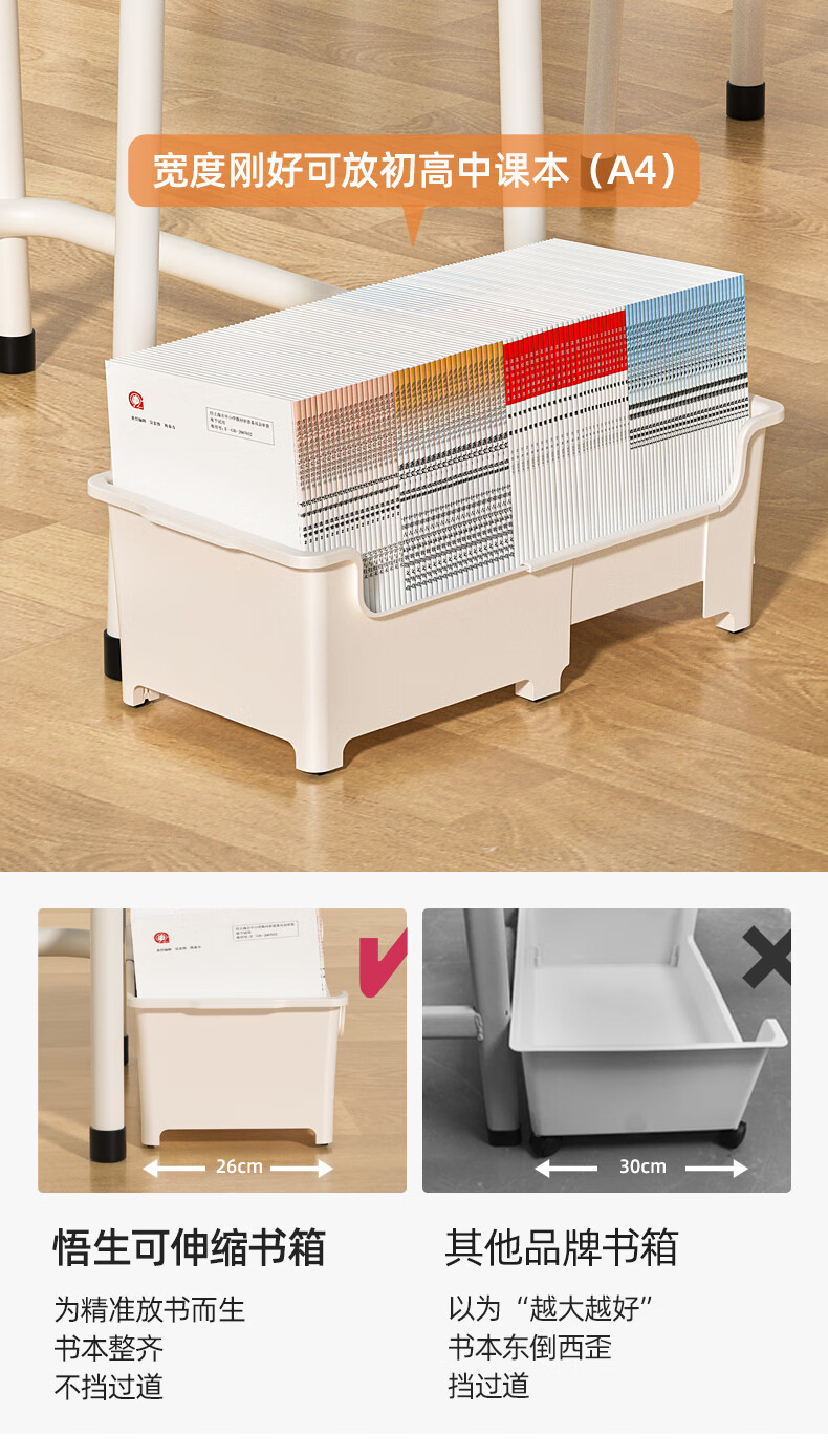 【开学必备】悟生可伸缩书箱中小学生收纳箱教室用桌边书架高中生可移动带滑轮书桌下放书籍书本收纳神器高颜值白色