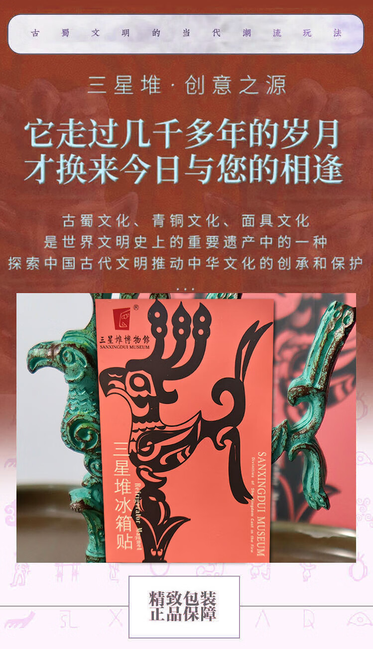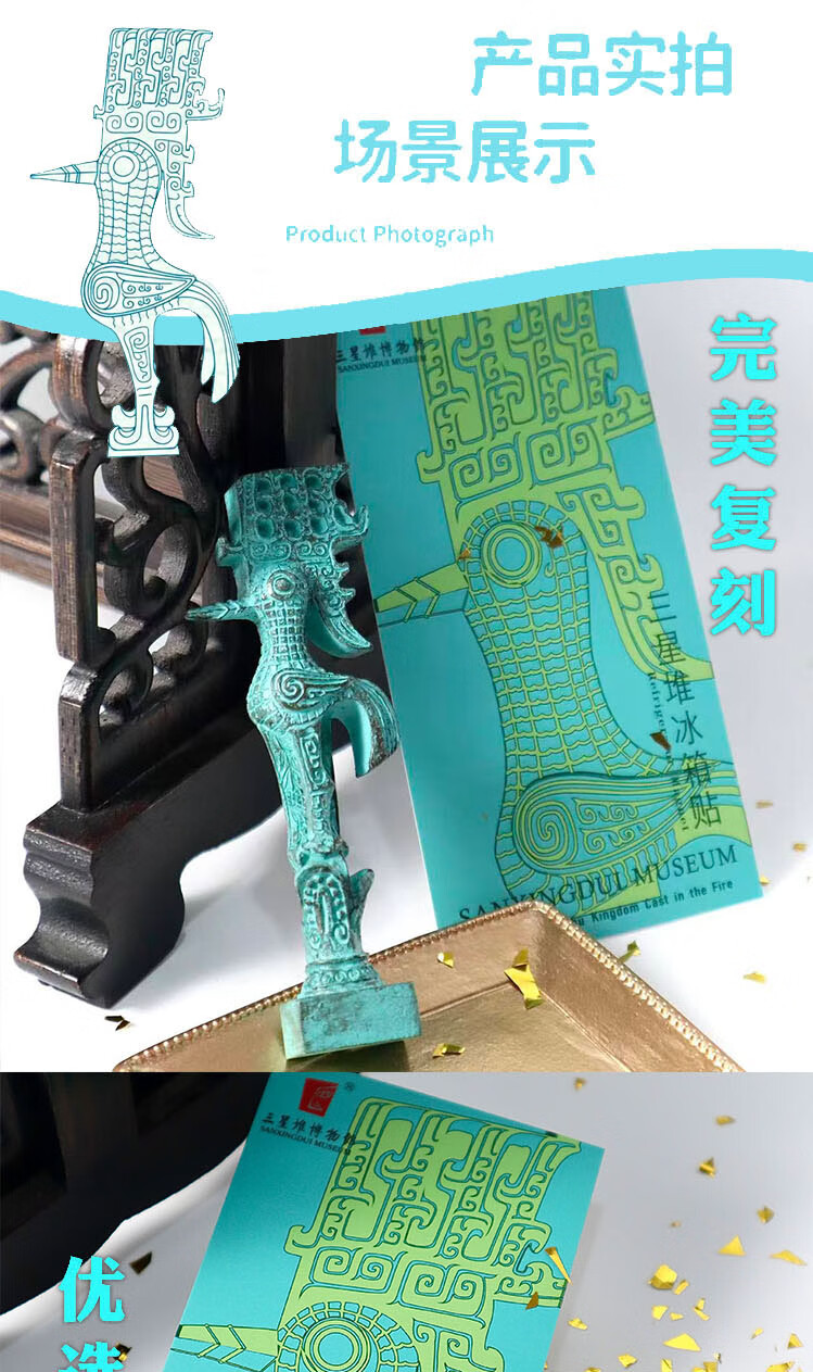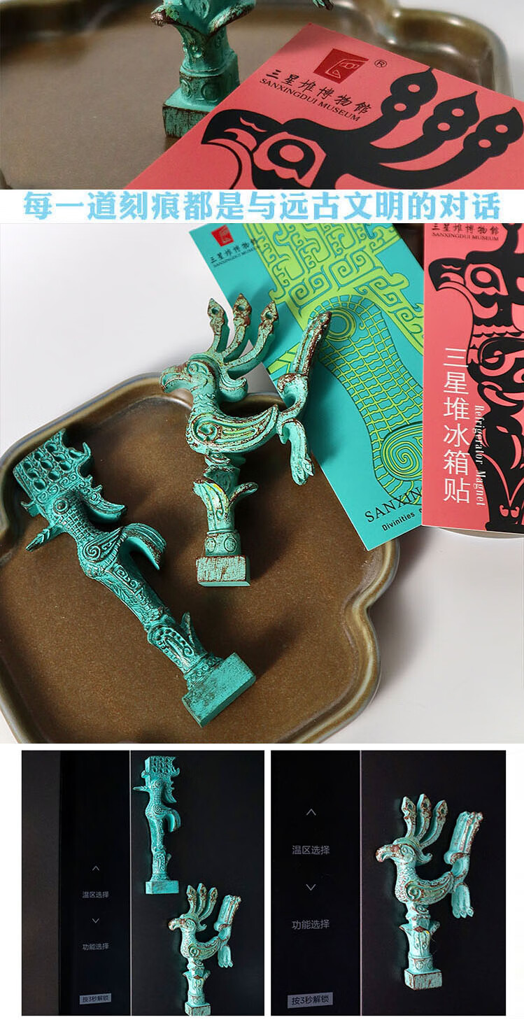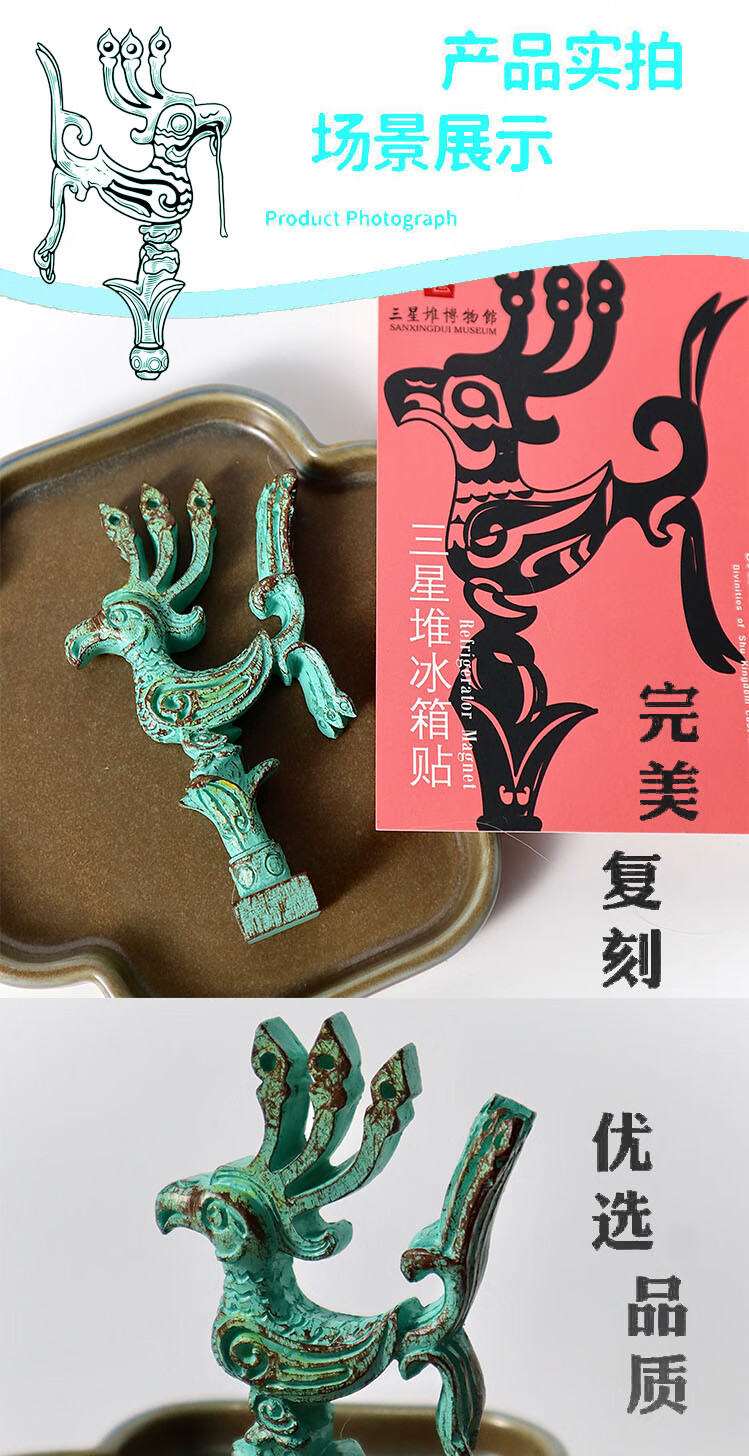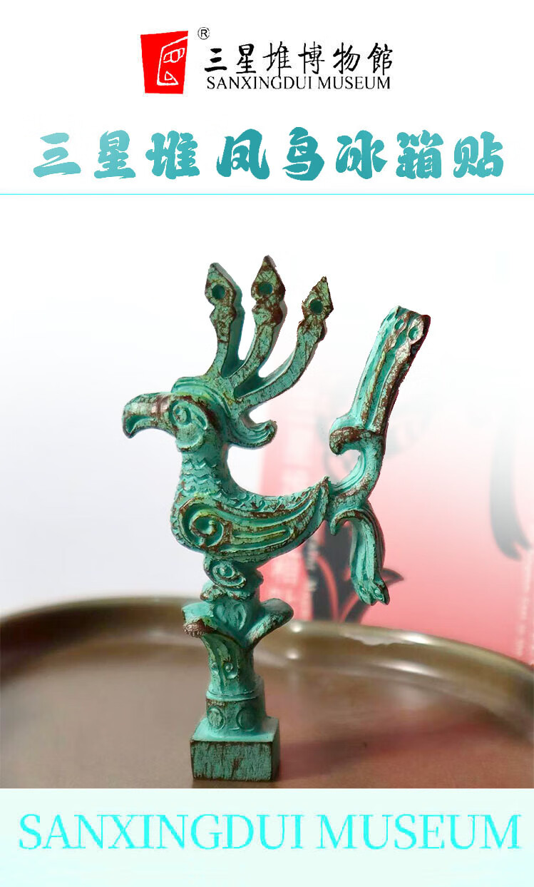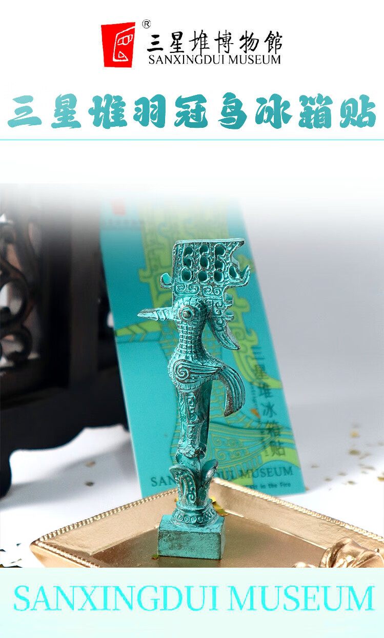 三星堆博物馆文创羽冠凤鸟树脂冰箱贴磁吸个性创意冰箱装饰礼物旅游纪念品礼品 羽冠鸟冰箱贴