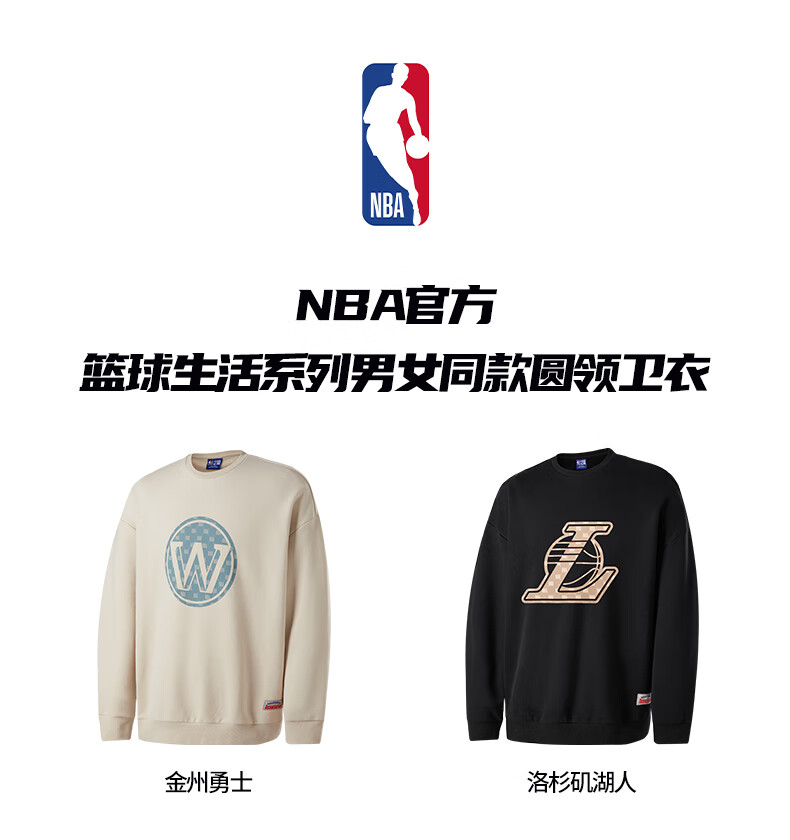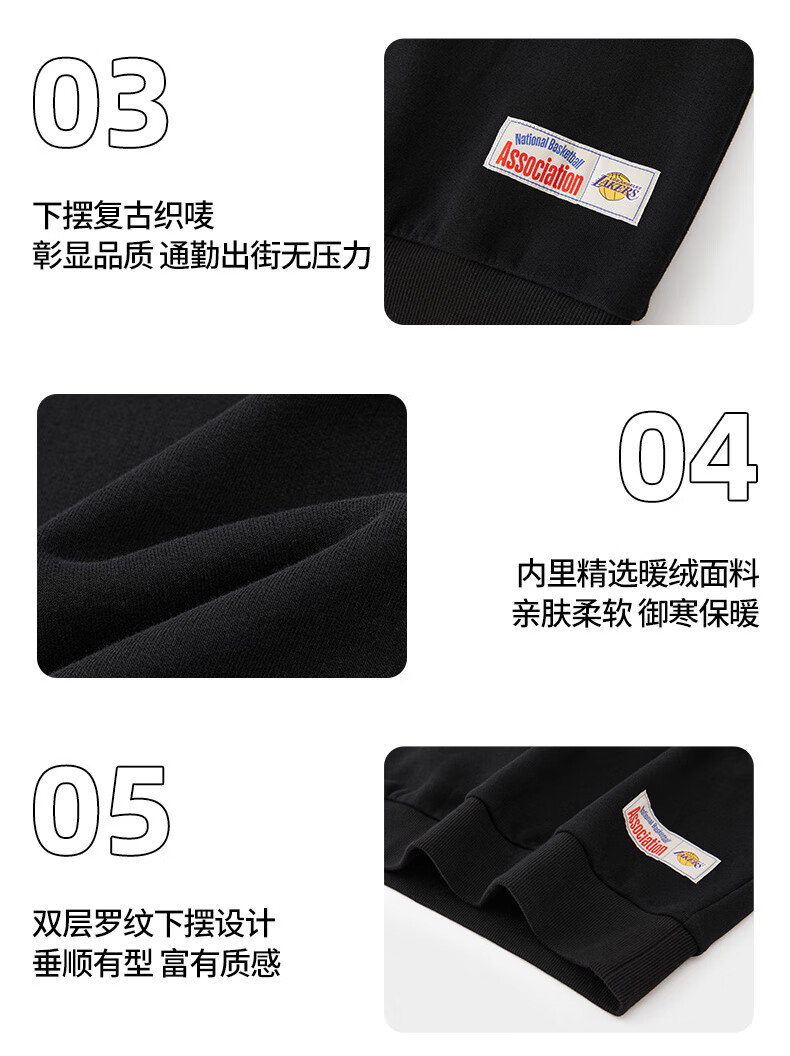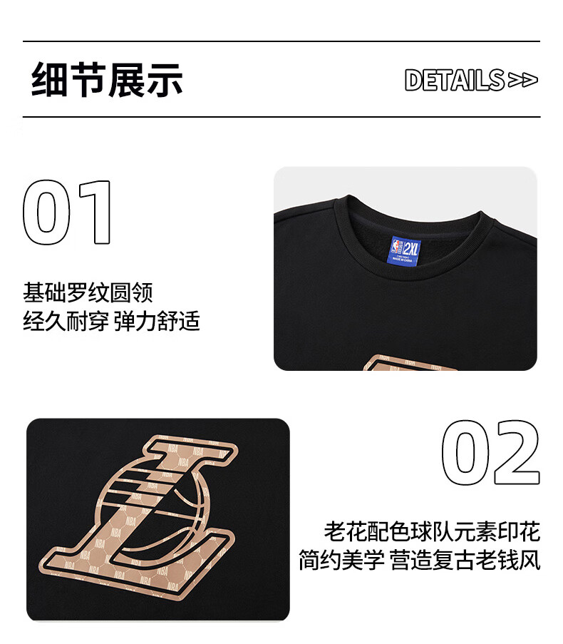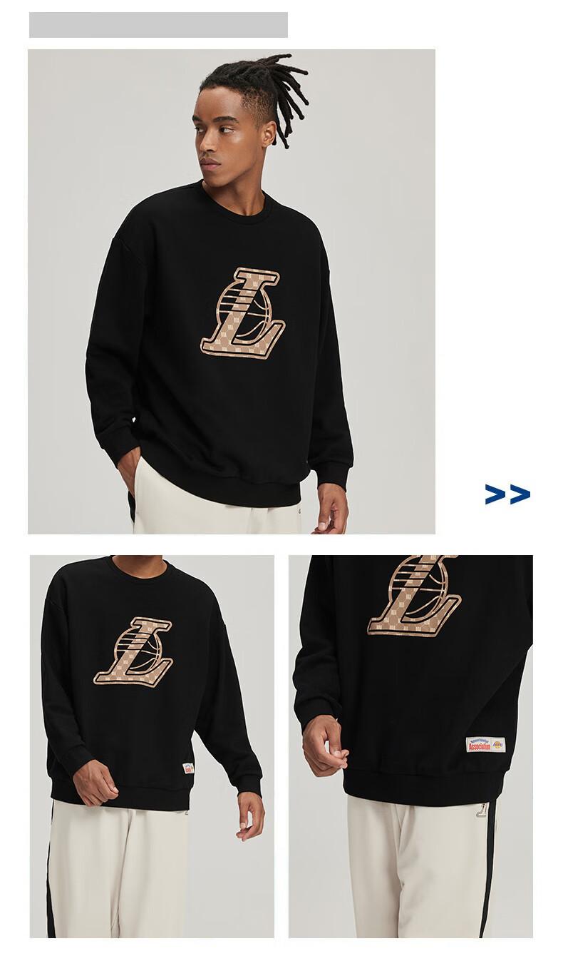 NBA官方正品洛杉矶湖人/勇士篮球春夏圆领卫衣 3XL 洛杉矶湖人/黑色