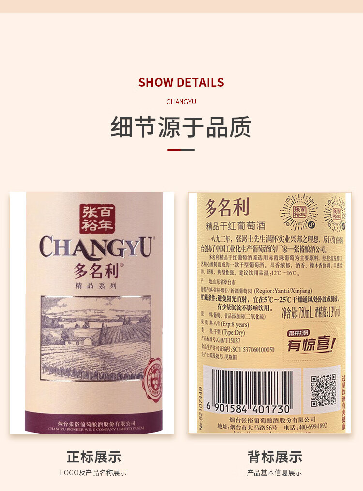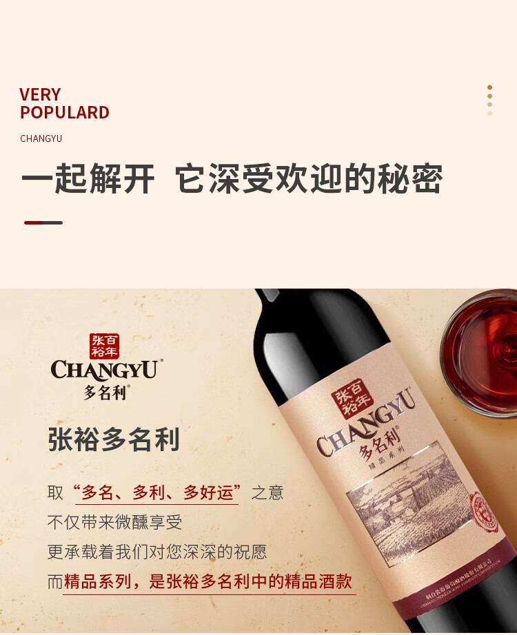 张裕多名利赤霞珠精品干红葡萄酒整箱聚会红酒 热门商品