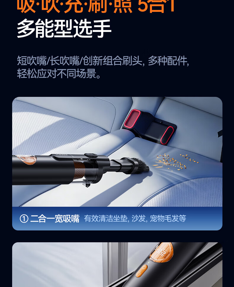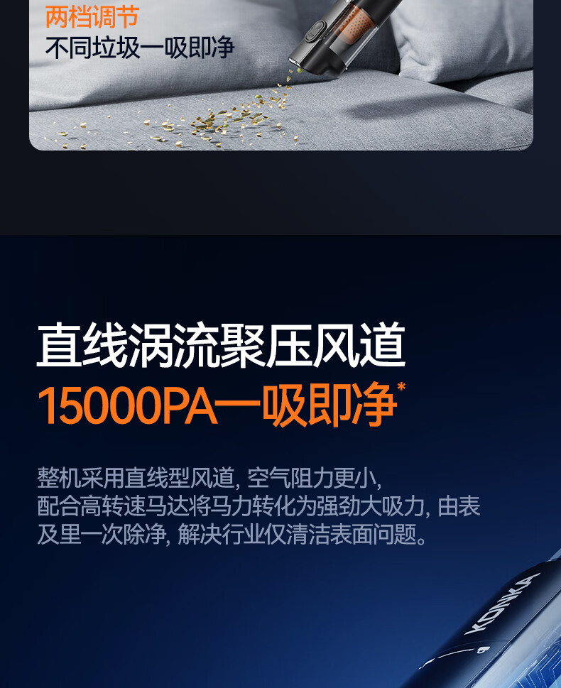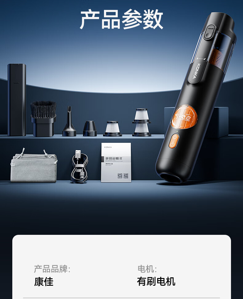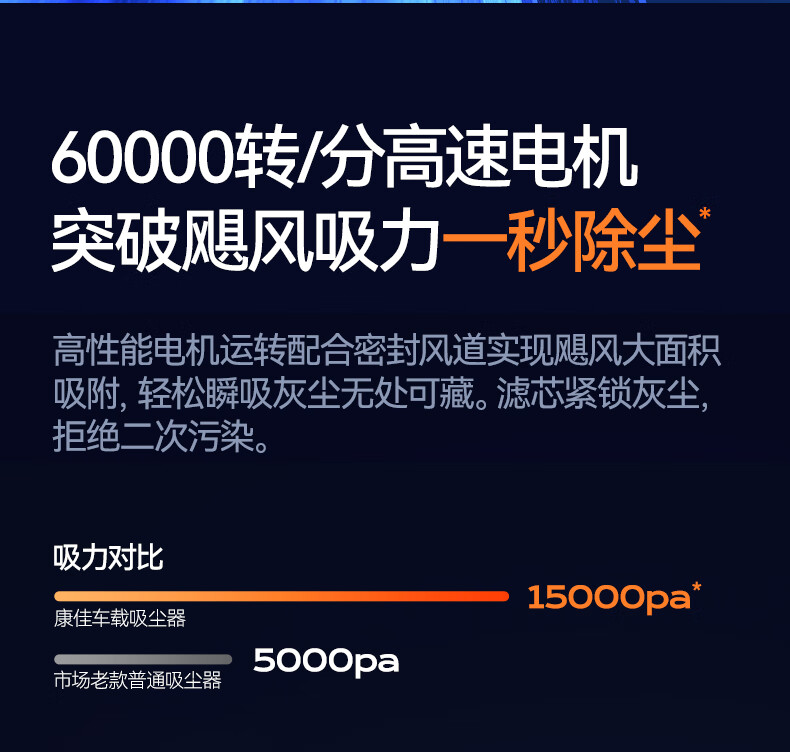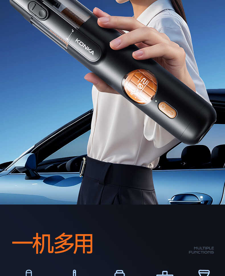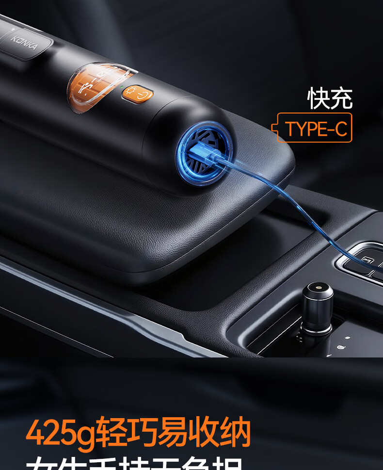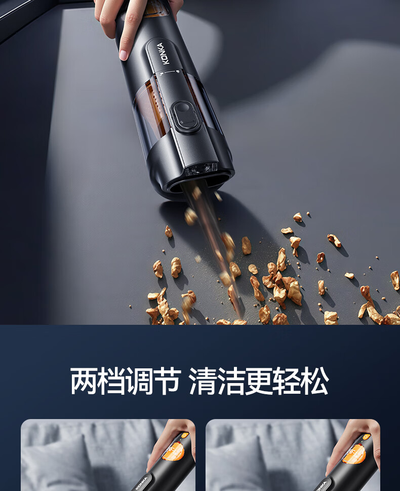 康佳车载吸尘器大吸力随手吸吸尘器吹吸两用无线便携小型手持车家两用清洁灰尘毛发 二代旗舰款黑色