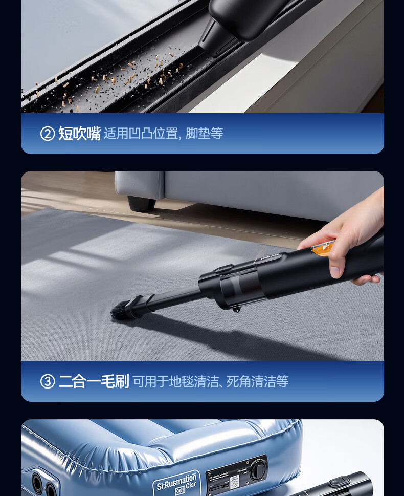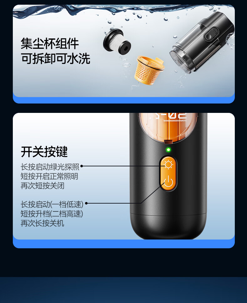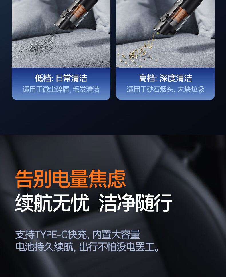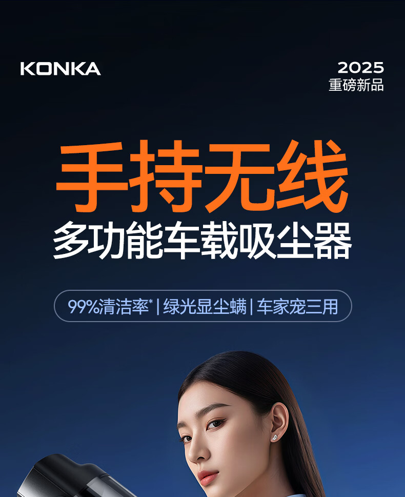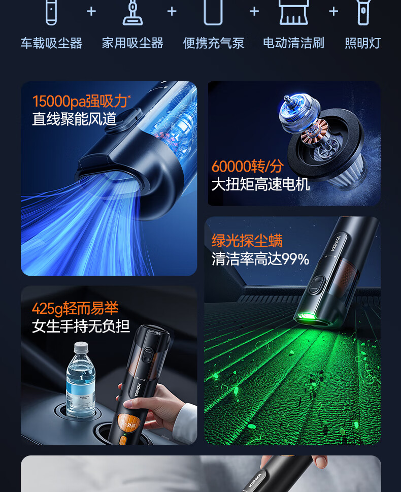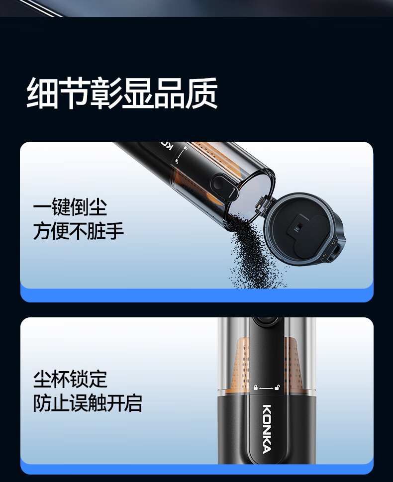 康佳车载吸尘器大吸力随手吸吸尘器吹吸两用无线便携小型手持车家两用清洁灰尘毛发 二代旗舰款黑色