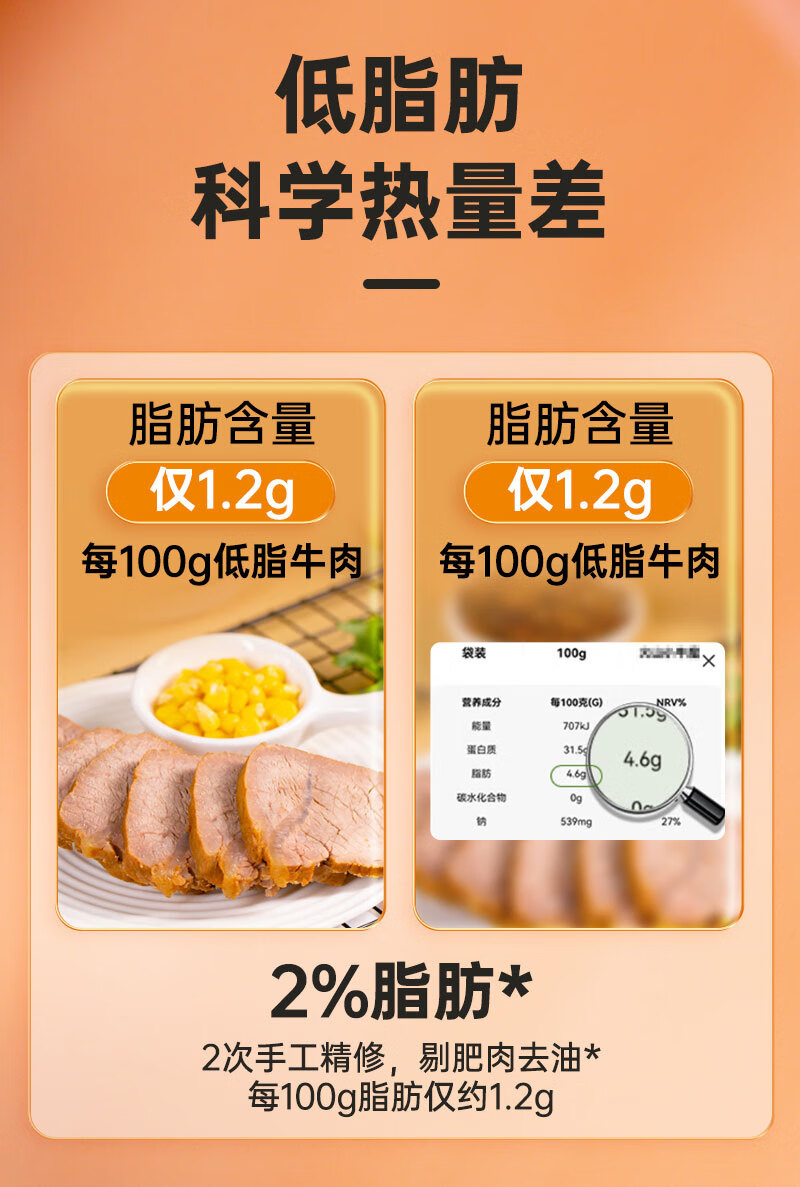 食乐康无添加酱牛肉50g*10袋健身零食食品减代餐低脂熟食卤牛肉开袋即食