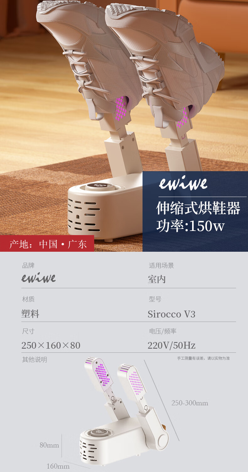 EWIWE神器伸缩式烘鞋器干鞋器家用除湿神器迷你全自动烘鞋一体机2025新款 紫蓝光/立体恒温/定时/ 可伸缩