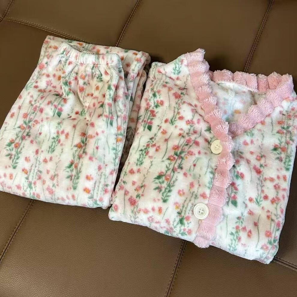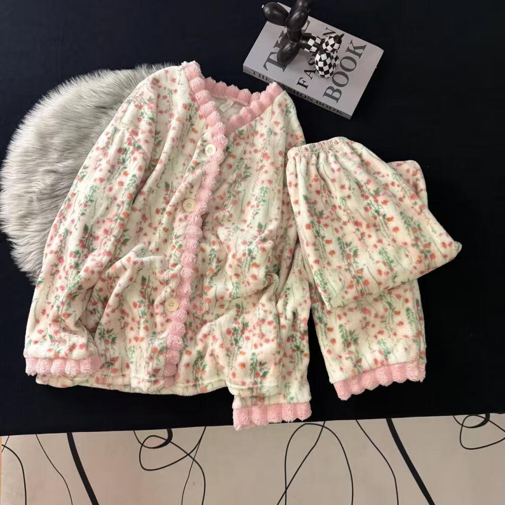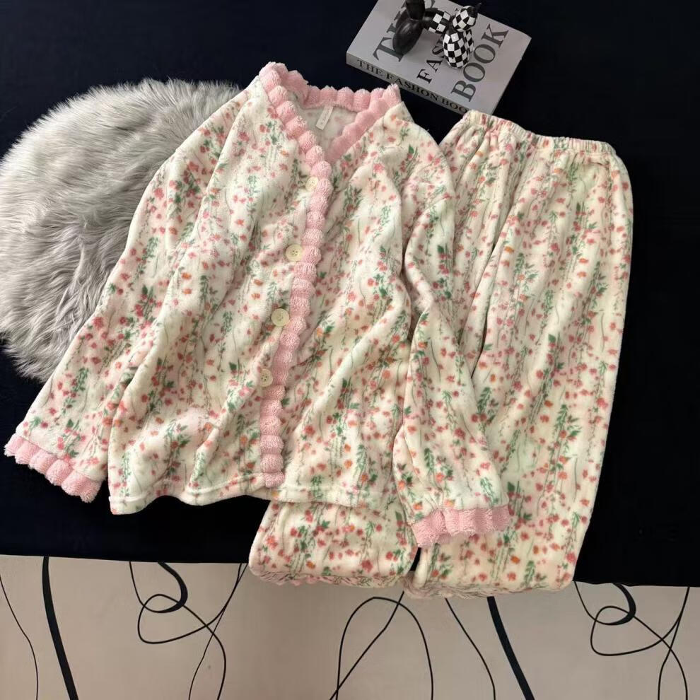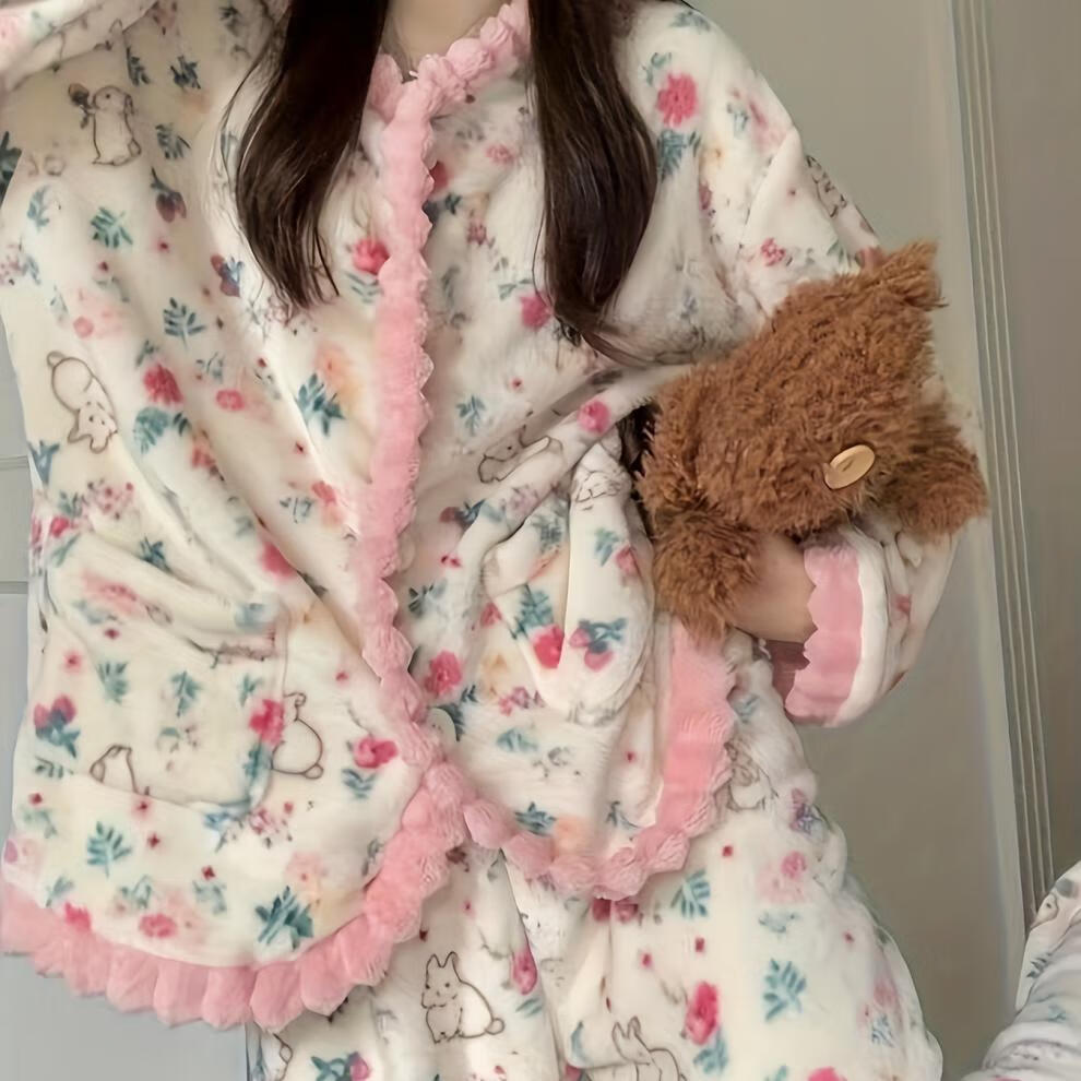 巴洛莲 BORORAM珊瑚绒睡衣女秋冬季加厚保暖2025年新款甜美可爱法兰绒家居服套装 3322兔子花 L 建议100-115斤