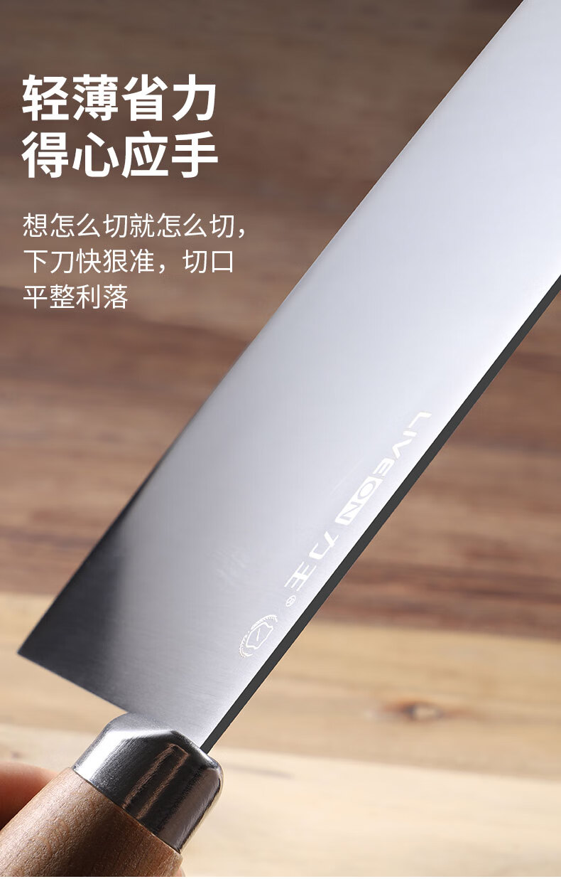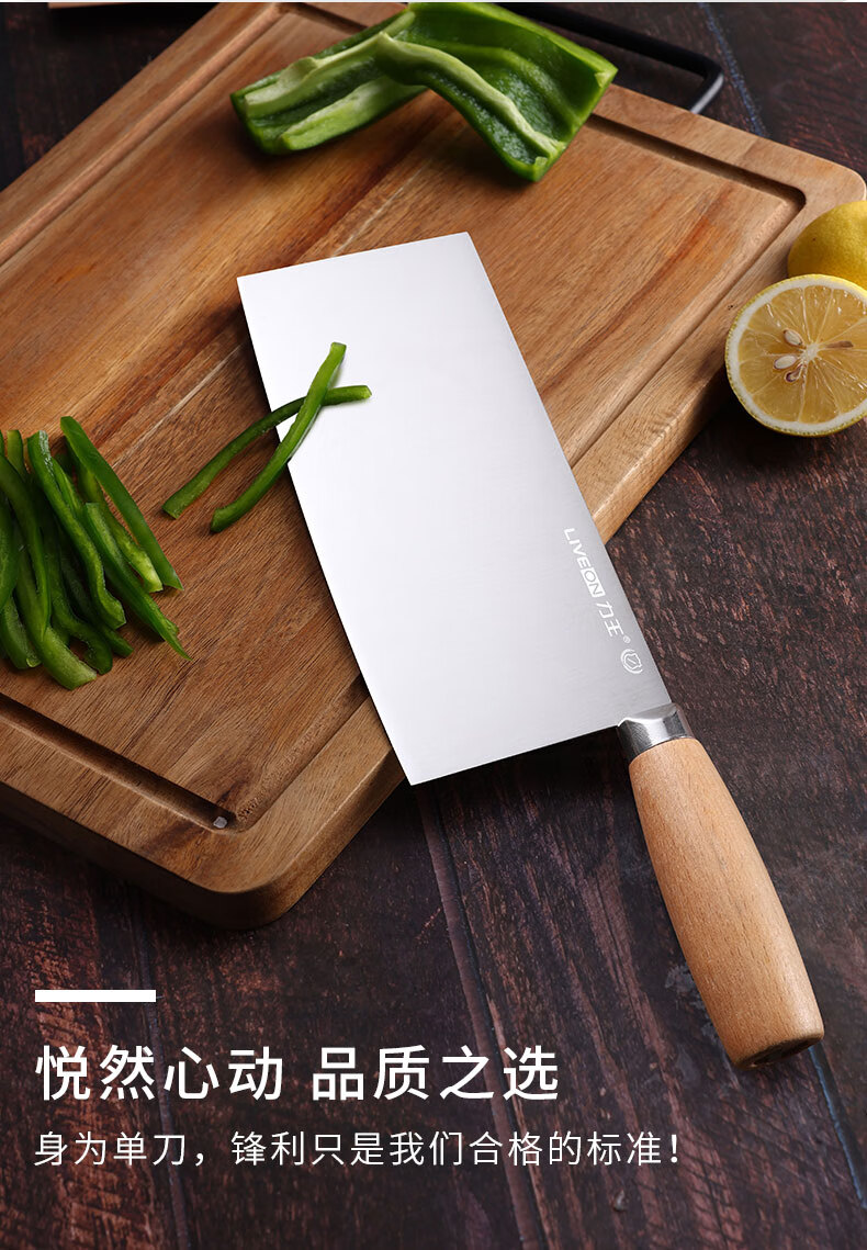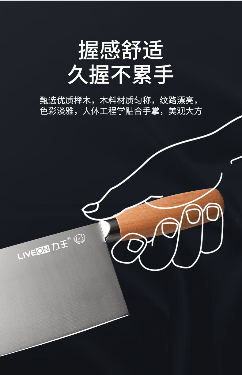 力王桑刀片刀切菜刀切肉刀家庭不锈钢厨刀大菜刀实木柄榉木圆柄商用