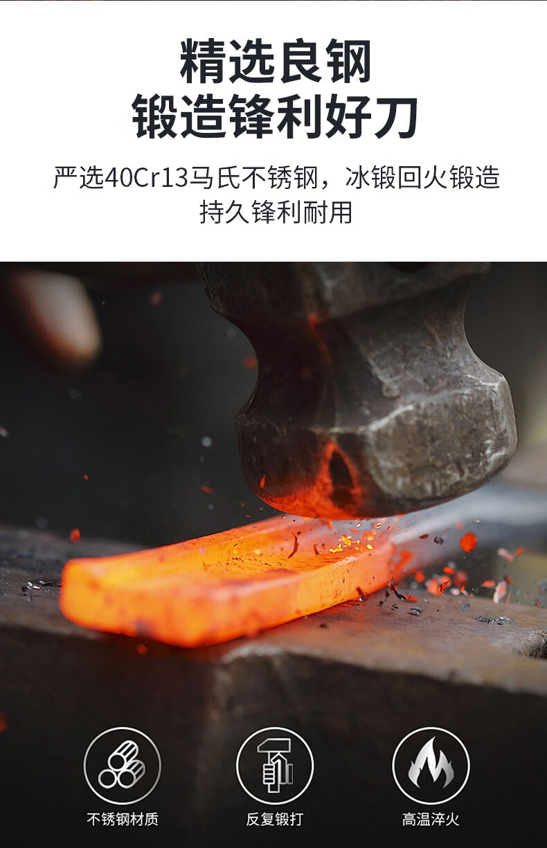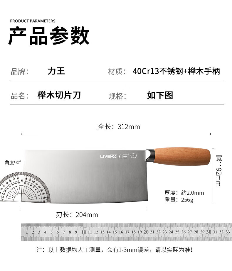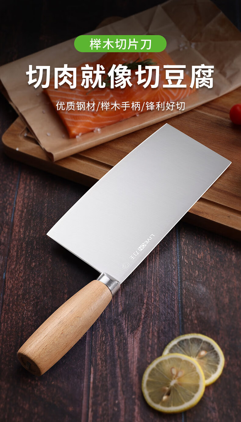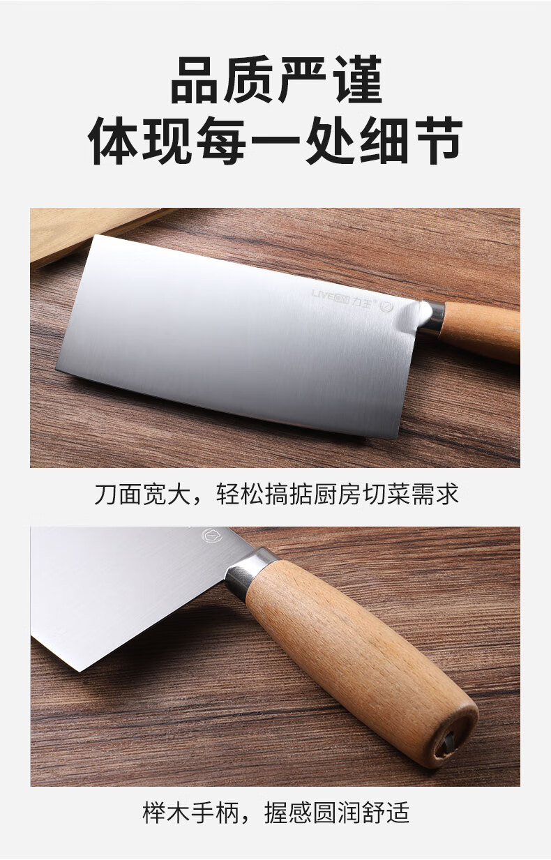 力王桑刀片刀切菜刀切肉刀家庭不锈钢厨刀大菜刀实木柄榉木圆柄商用
