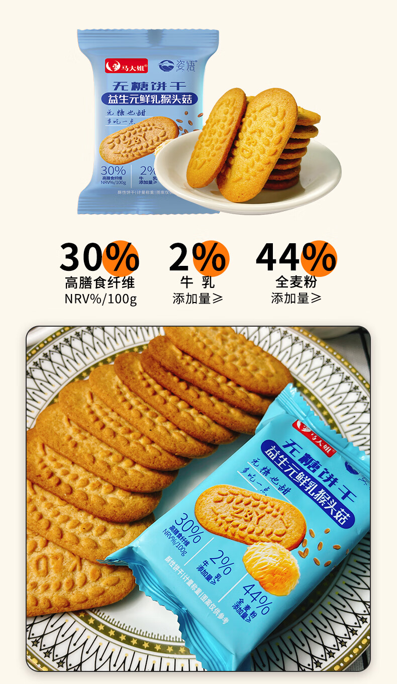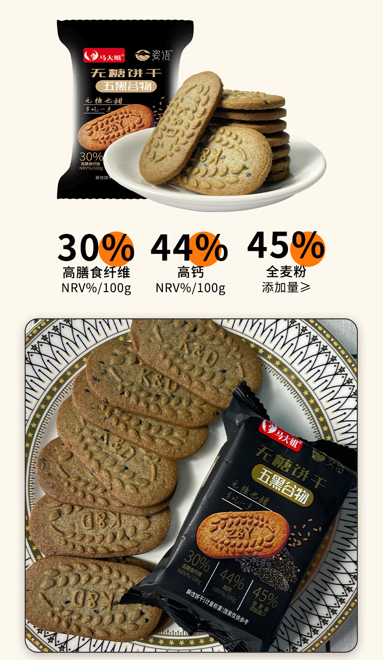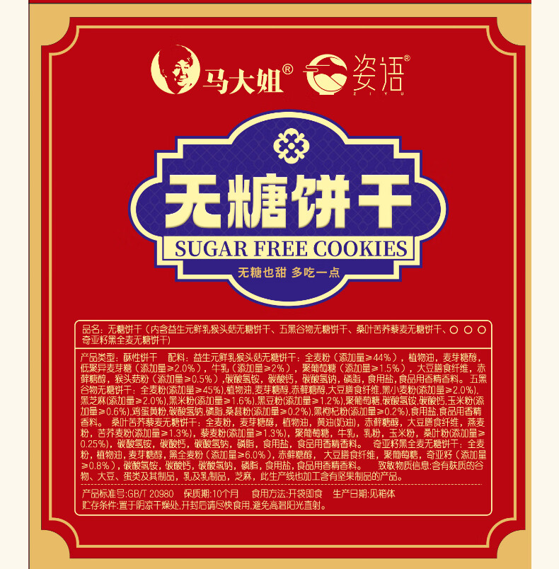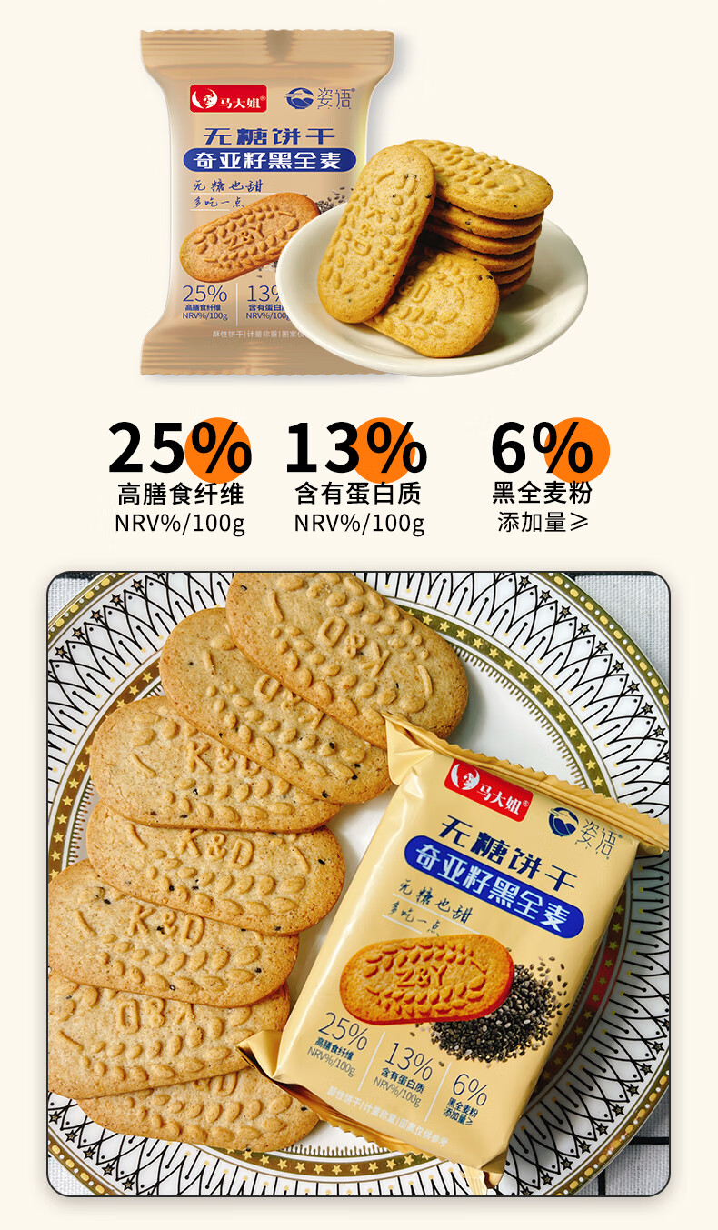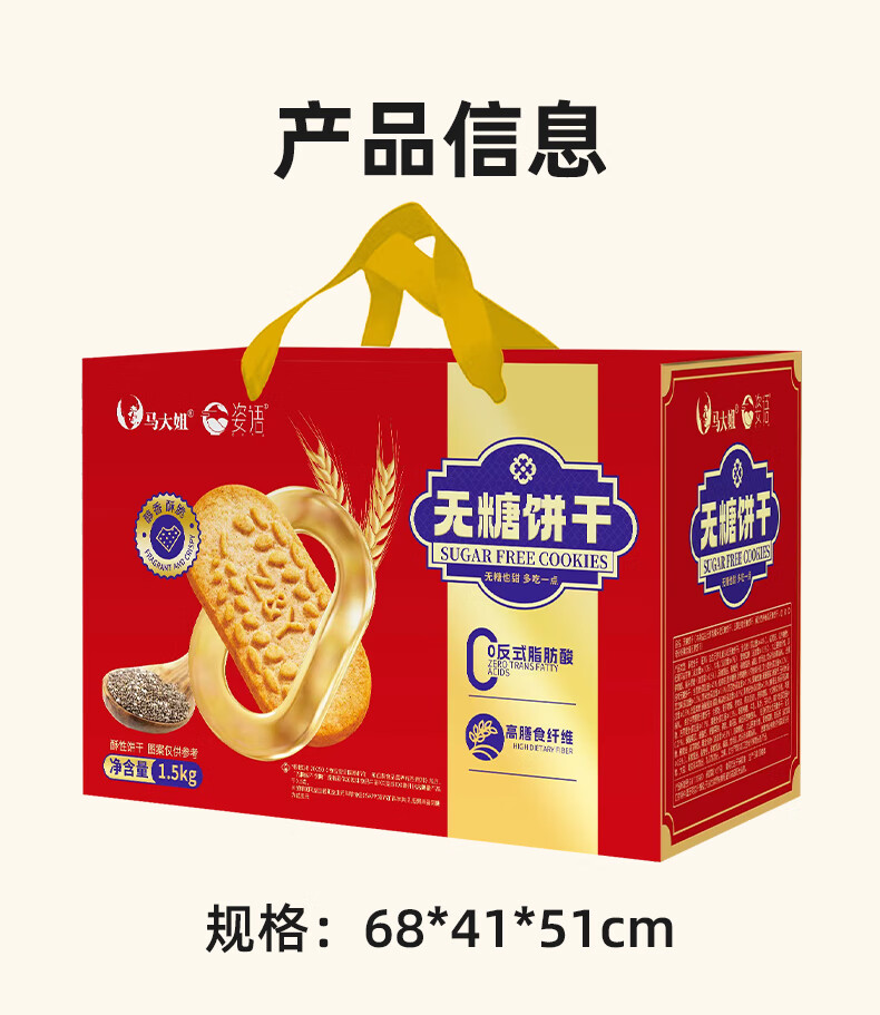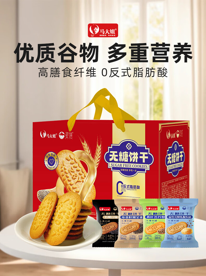 马大姐 无糖饼干礼盒1.5kg混合味 膳食纤维粗粮解馋零食代餐老人儿童