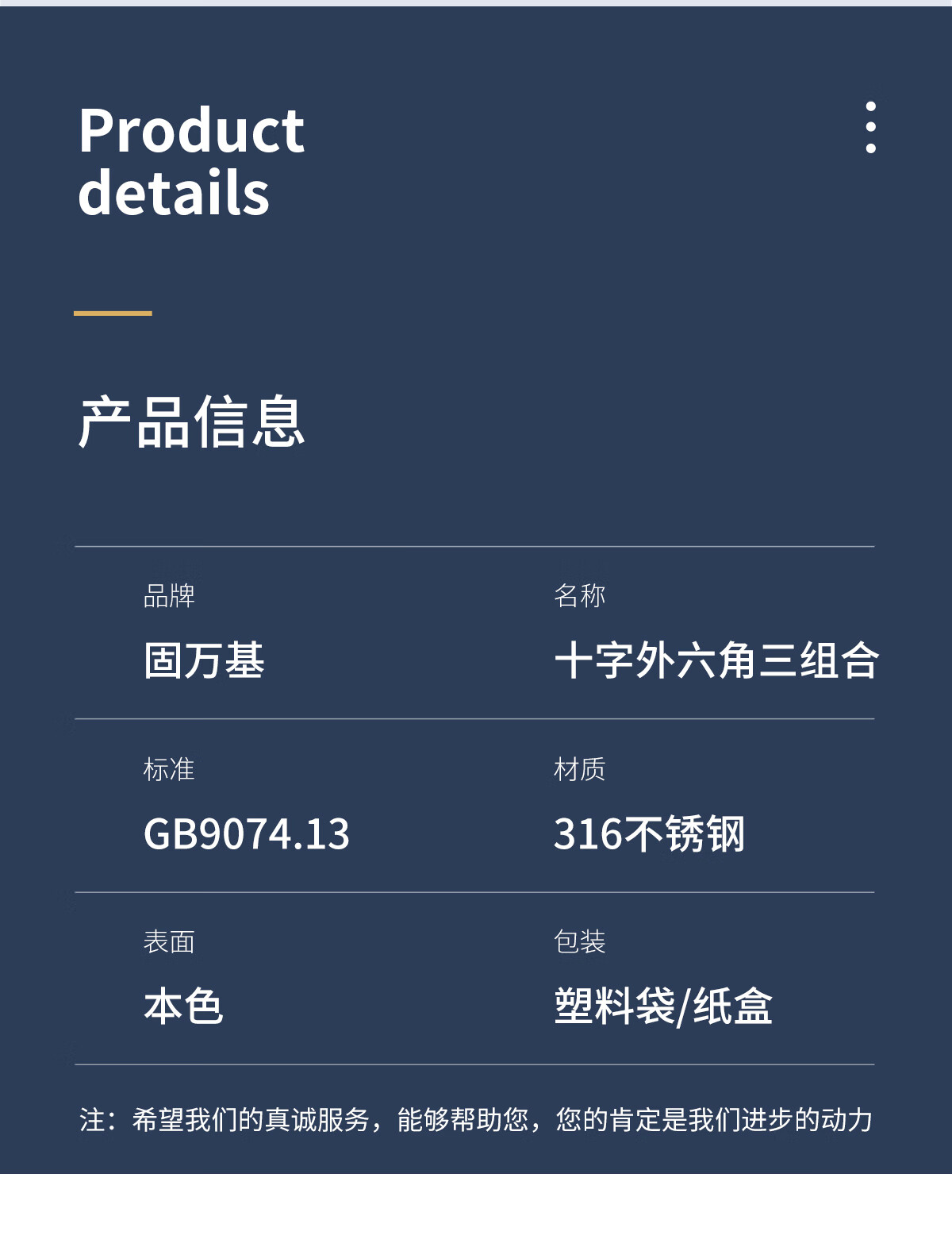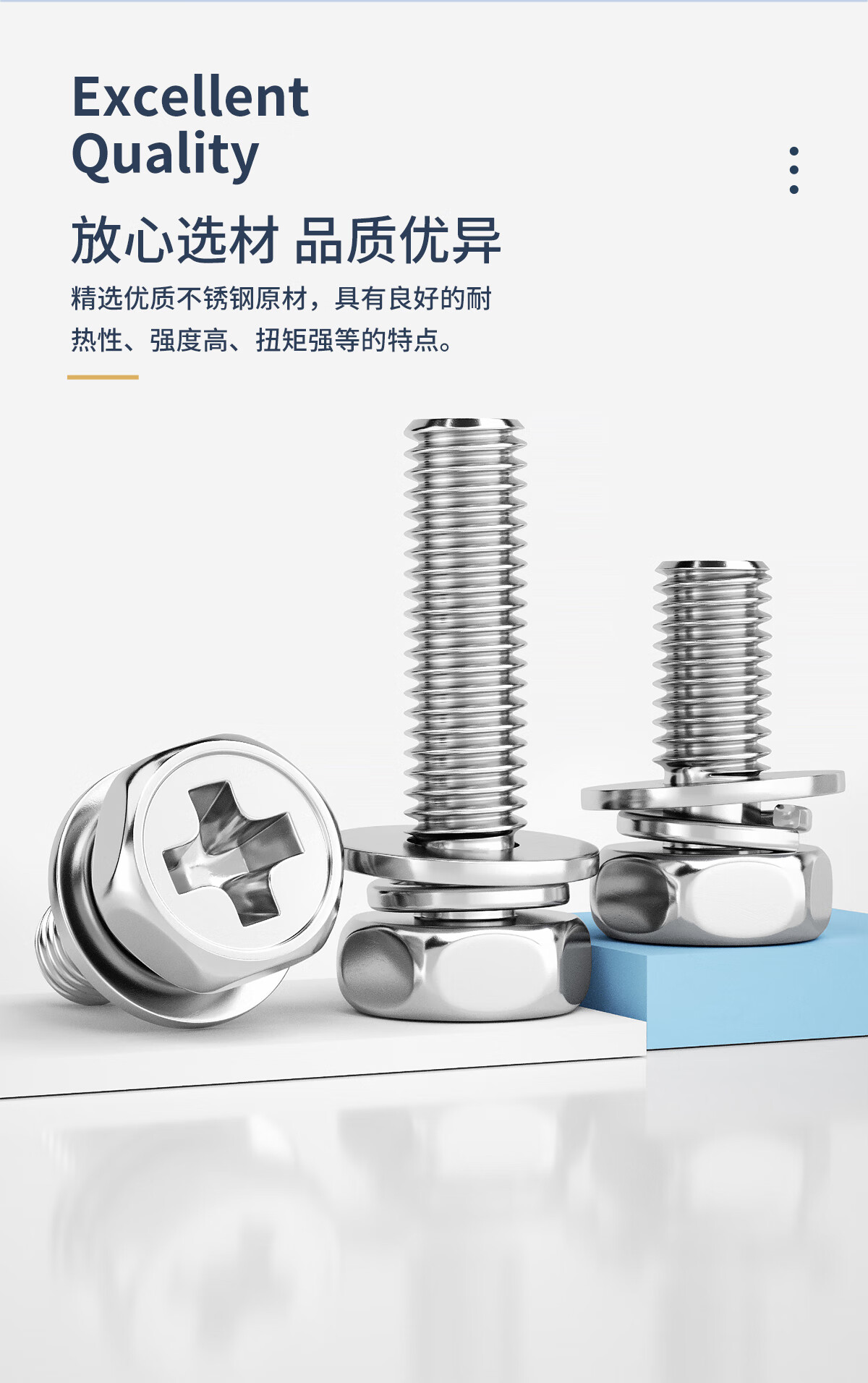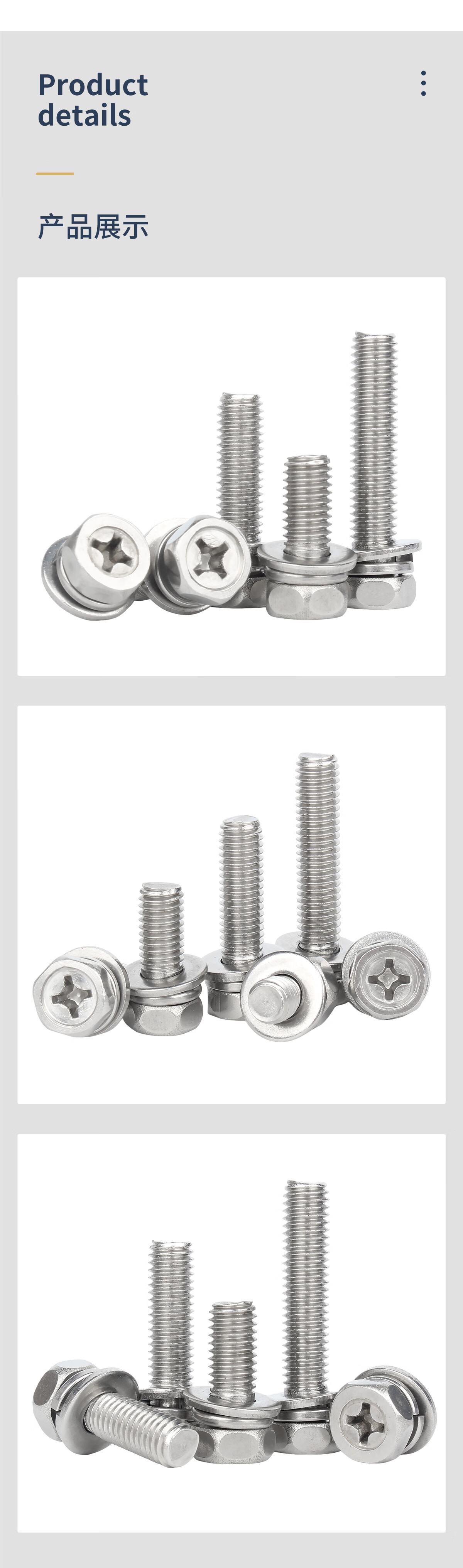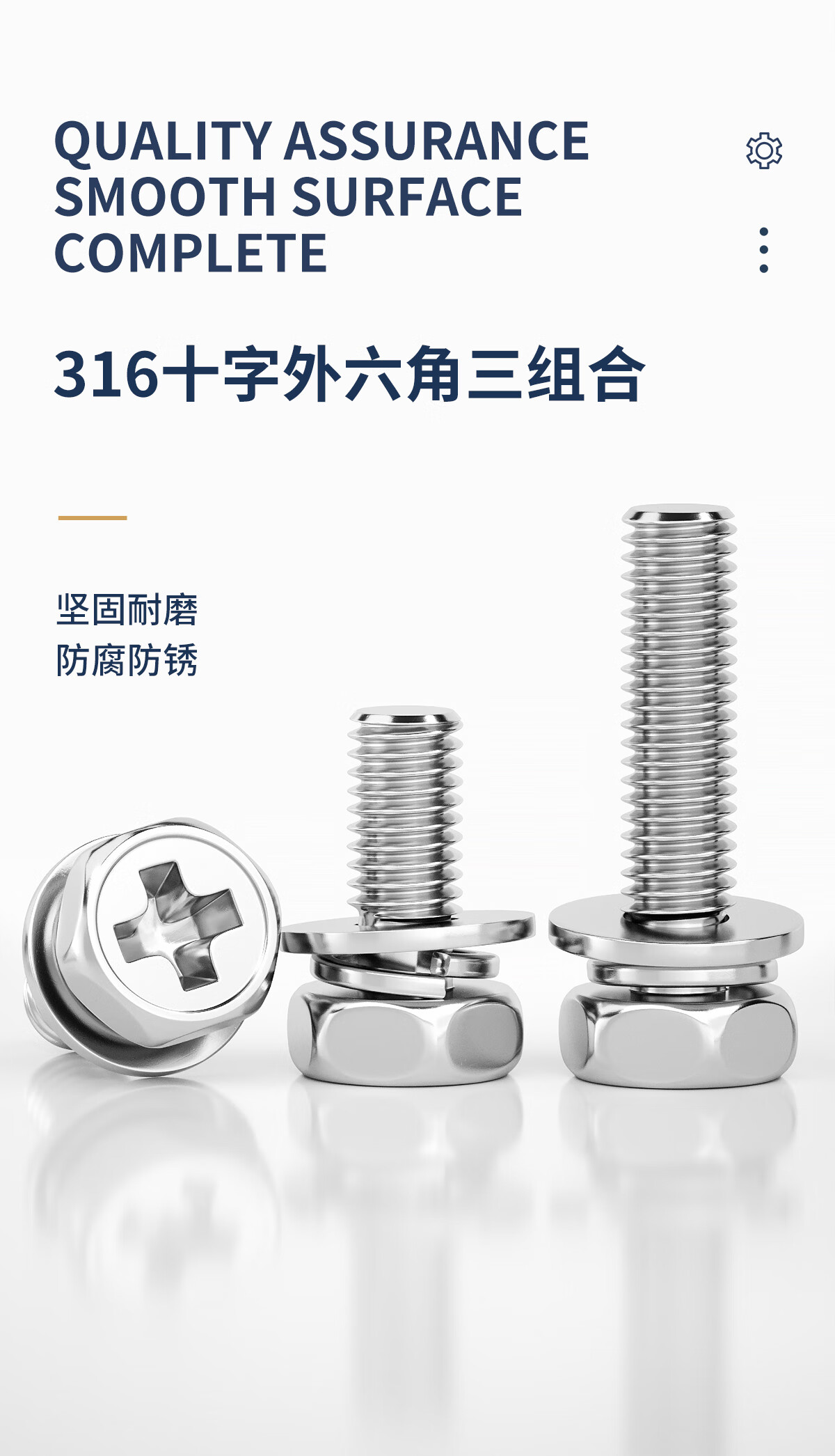 固万基(GUWANJI)316不锈钢十字外六角三组合螺丝钉 凹穴自带平垫弹垫螺栓M3M4M5M8 M3x6x7(50只)