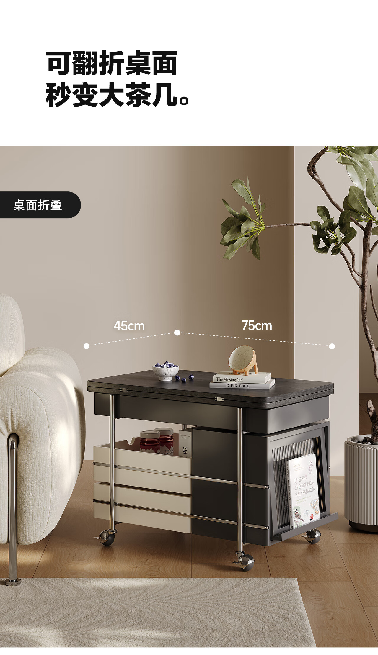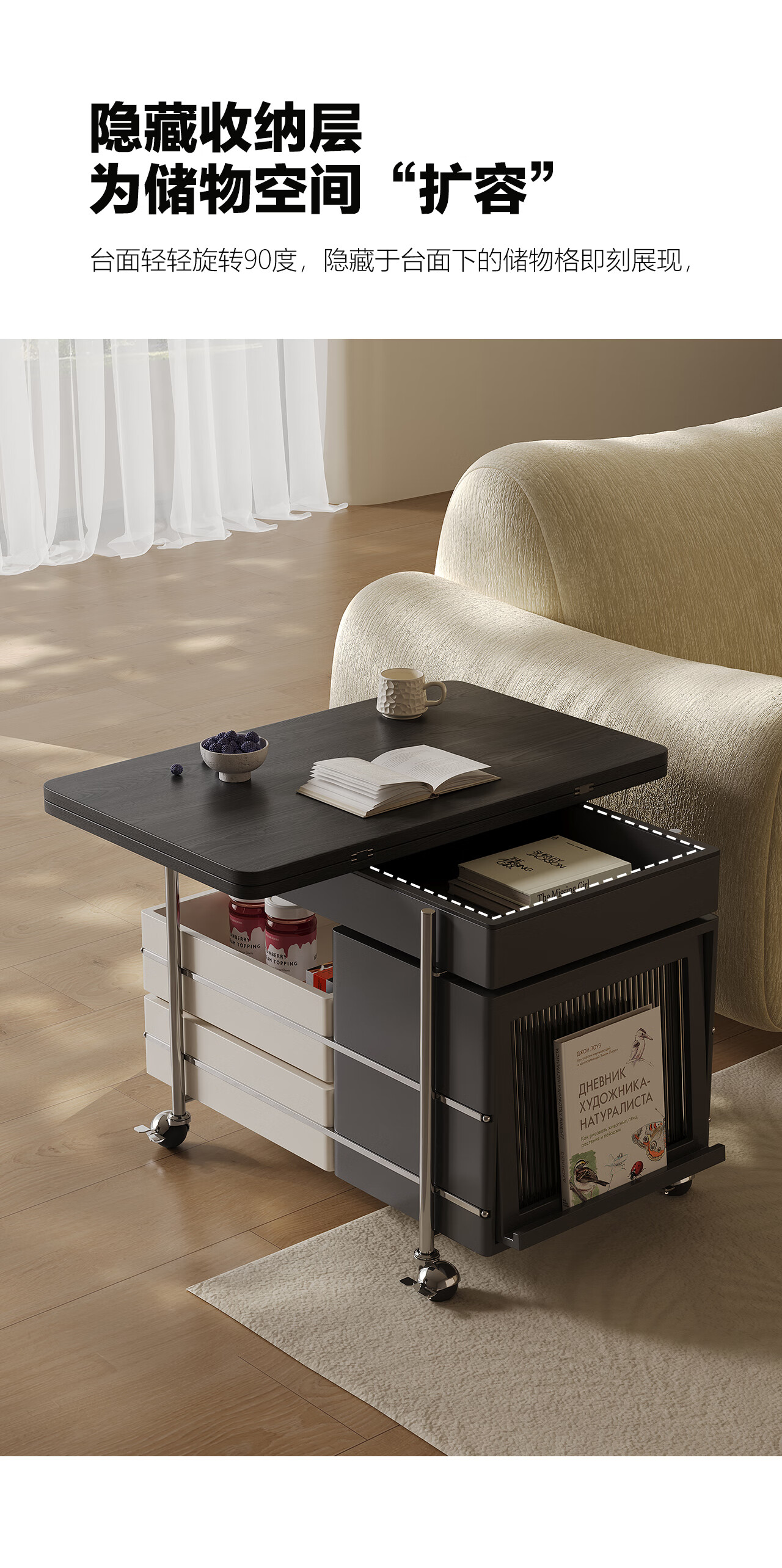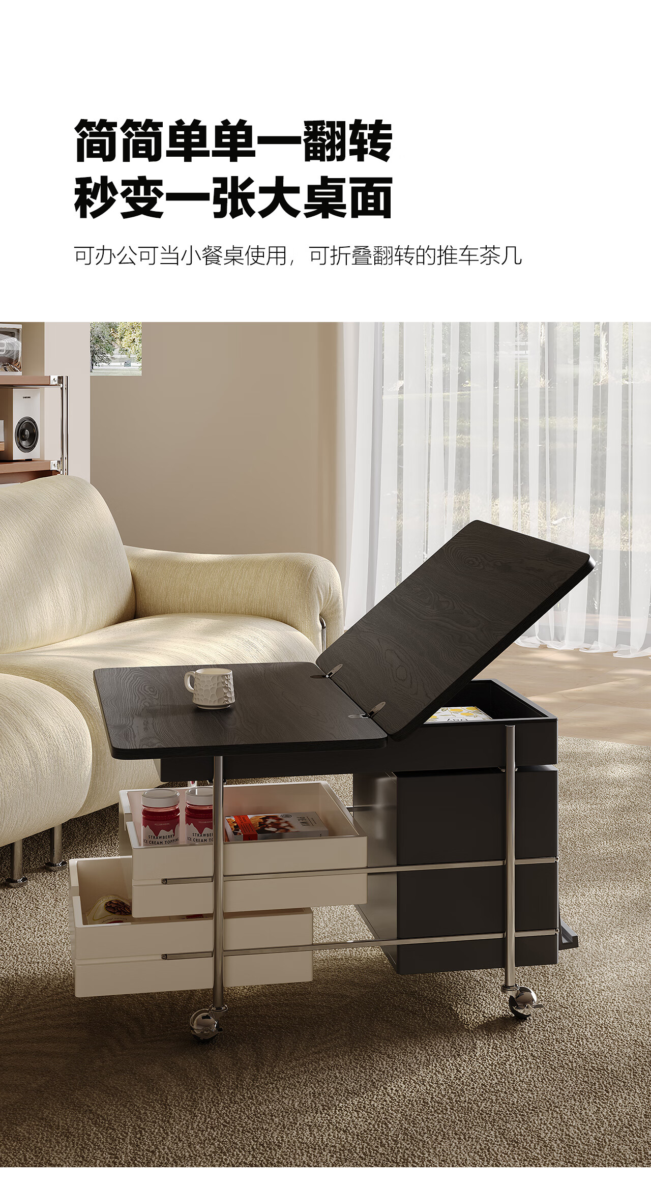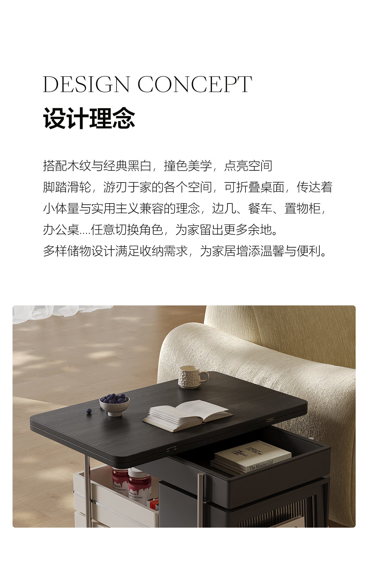 全慕(QUANMU)可移动折叠边几客厅创意新款小户型实木沙发边侧柜带轮小推车茶几 时序茶几【可折叠-温润胡桃色】