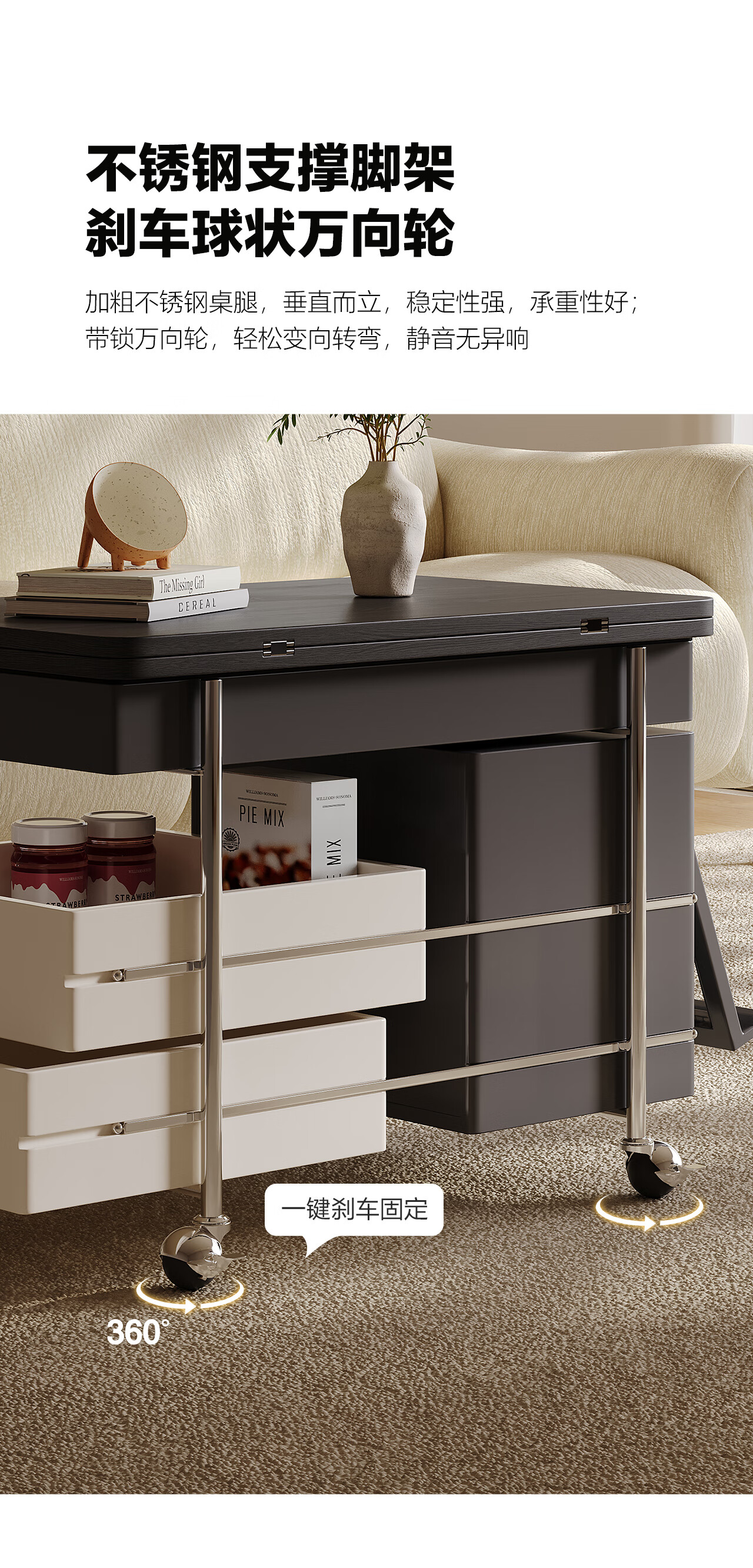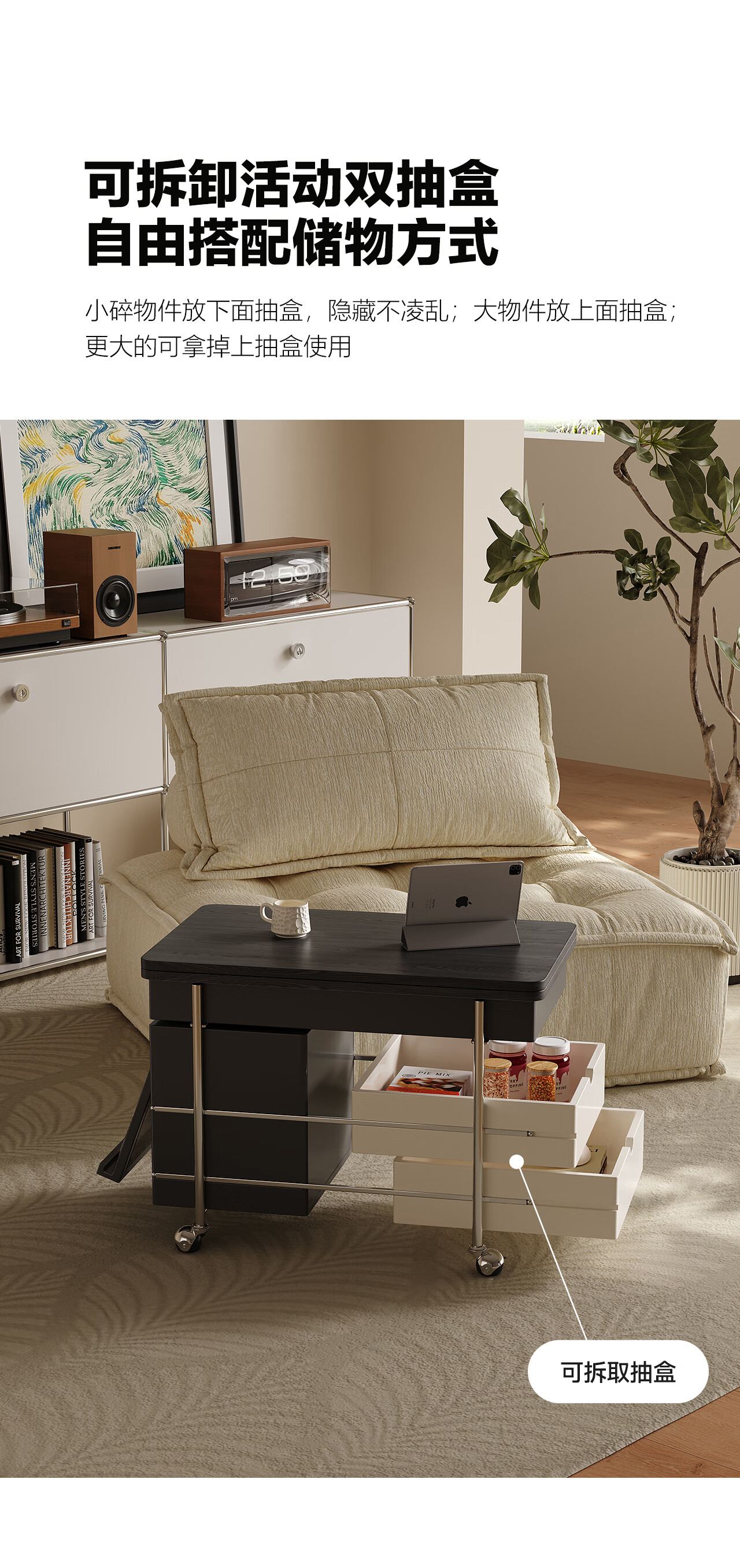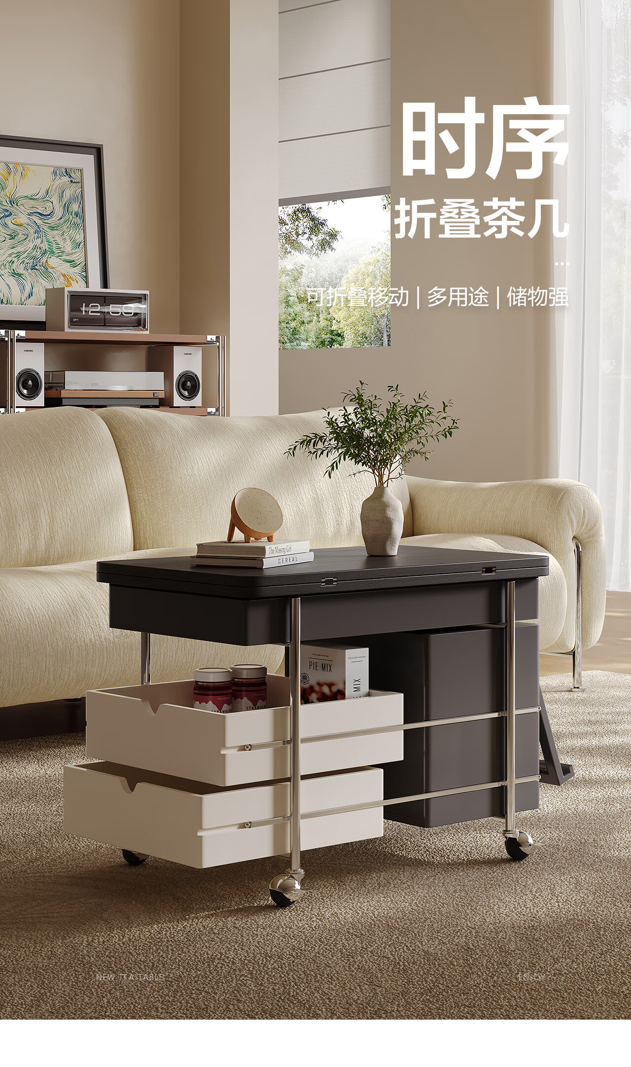 全慕(QUANMU)可移动折叠边几客厅创意新款小户型实木沙发边侧柜带轮小推车茶几 时序茶几【可折叠-温润胡桃色】