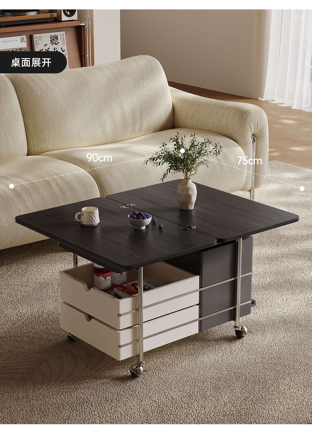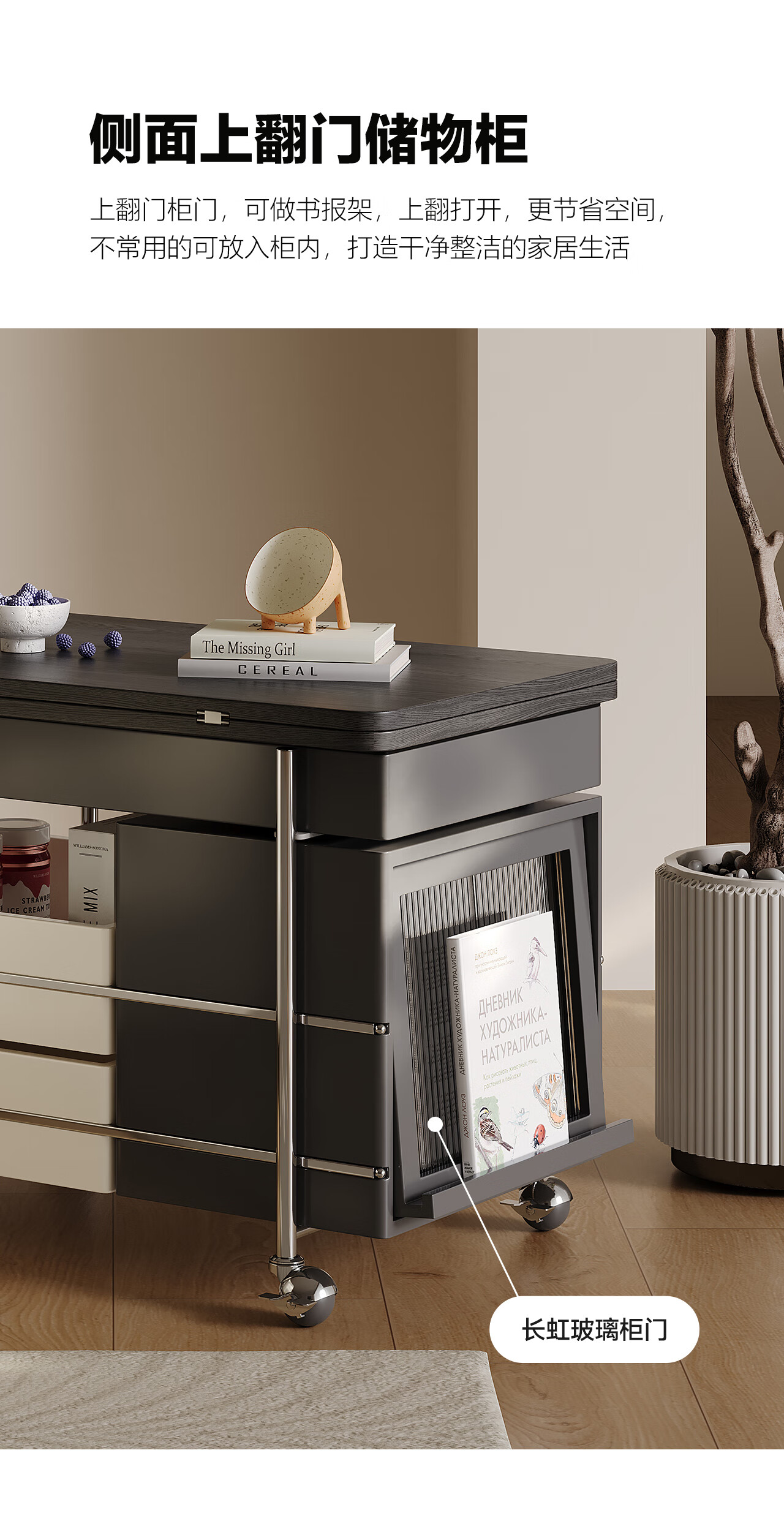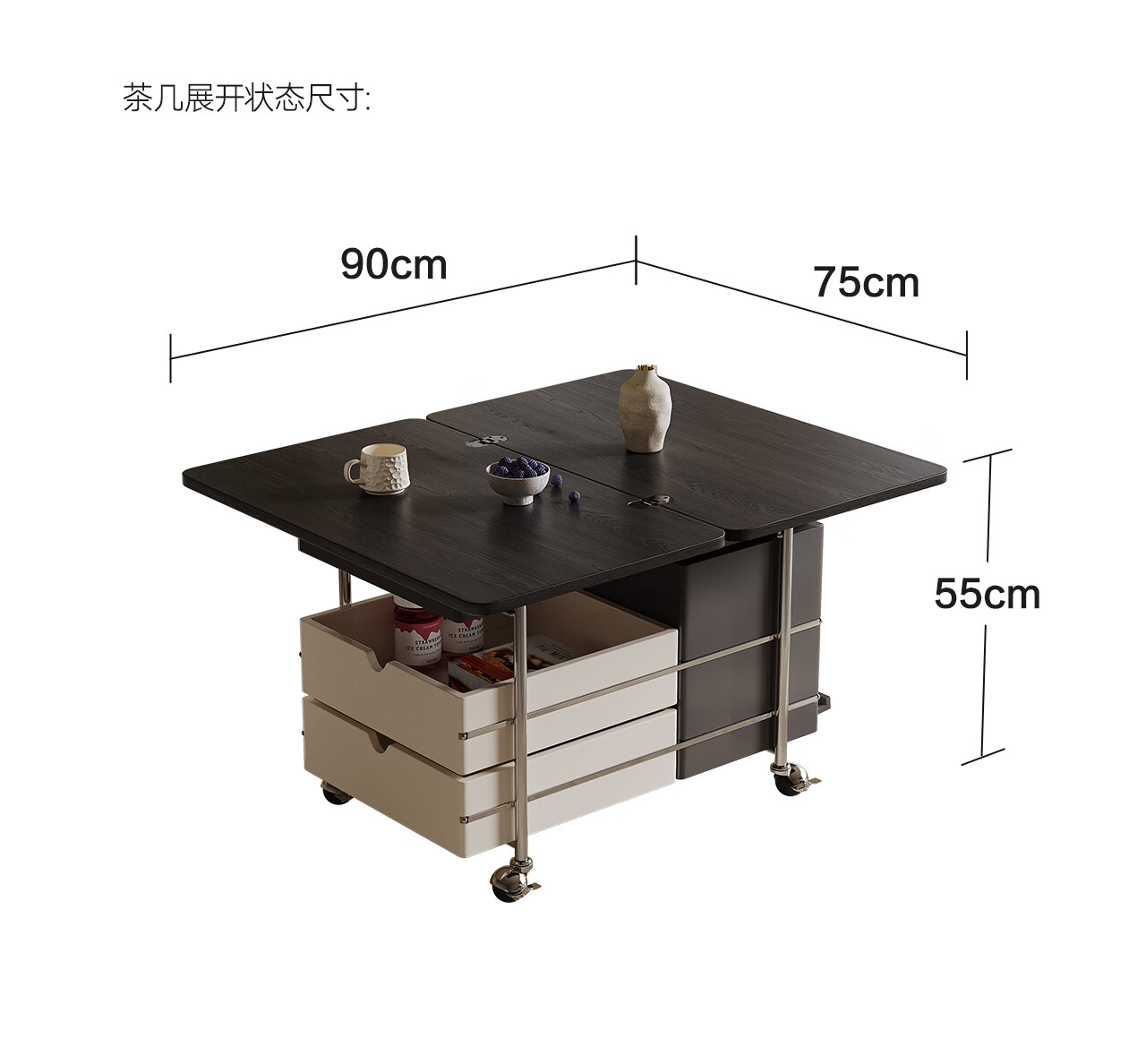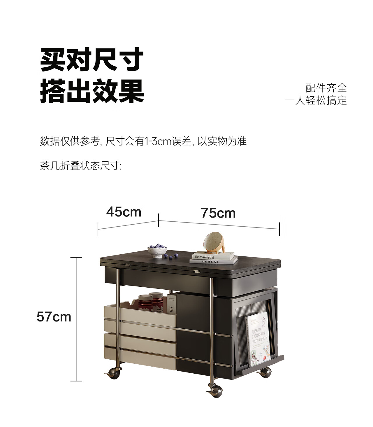 全慕(QUANMU)可移动折叠边几客厅创意新款小户型实木沙发边侧柜带轮小推车茶几 时序茶几【可折叠-温润胡桃色】