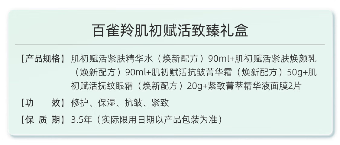 百雀羚(PECHOIN)套装礼盒肌初致臻水乳霜眼霜面膜抗皱紧致品质国货送女友