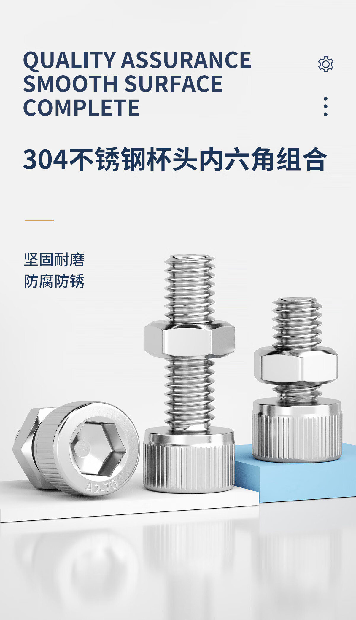 固万基(GUWANJI)304不锈钢内六角螺栓螺丝螺母套装大全螺丝帽组合M2M3M4M5M6M8M10 M1.4x2[50套]