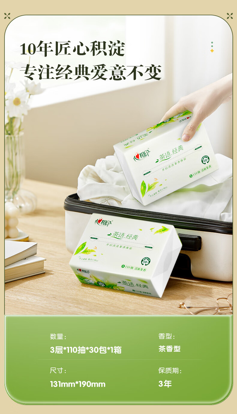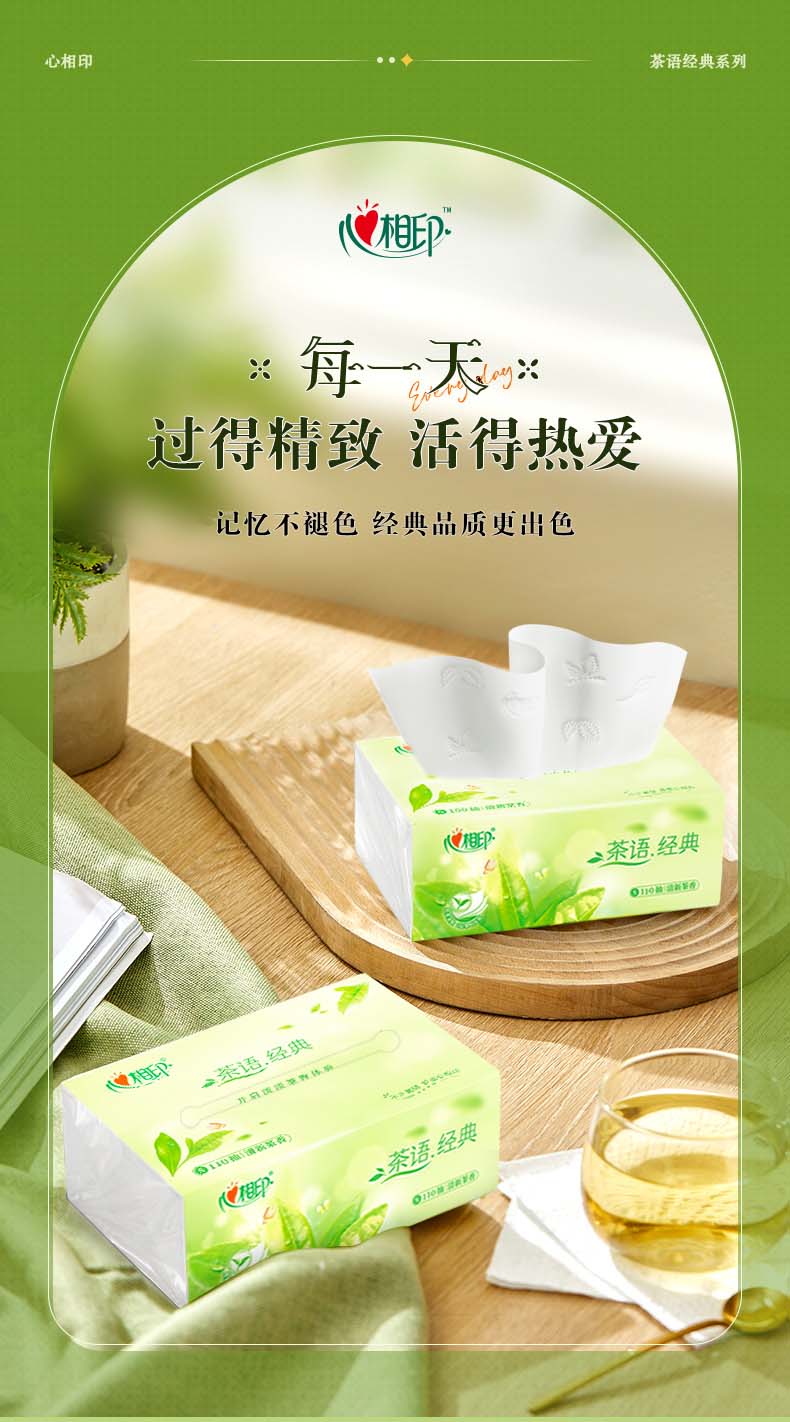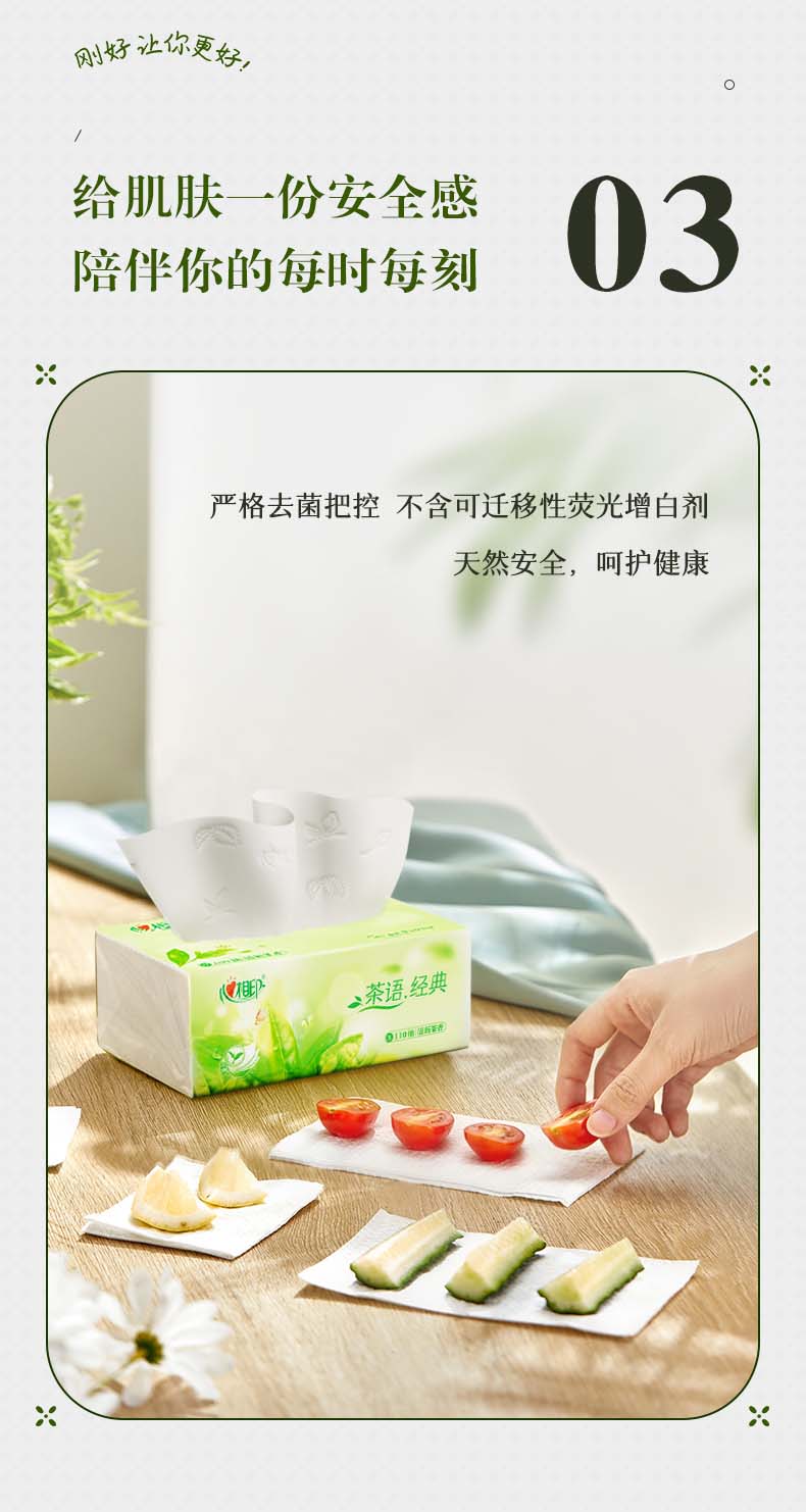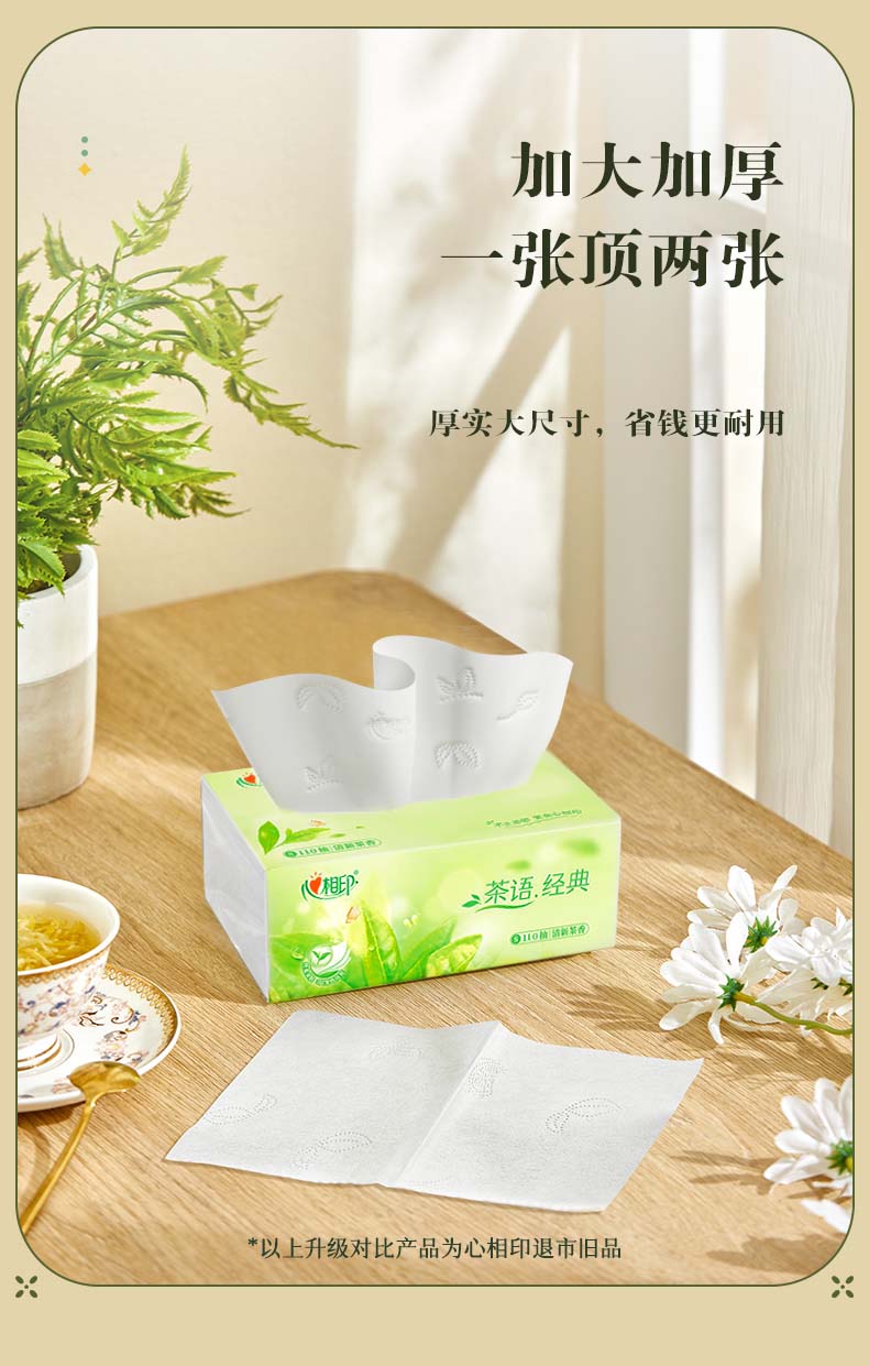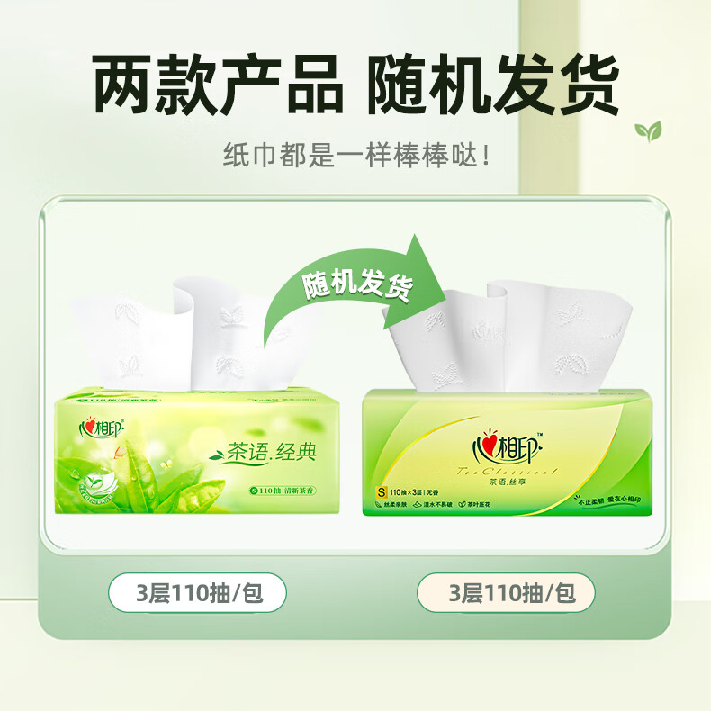 心相印抽纸茶语系列家用整箱批发纸巾餐巾纸面巾纸抽取式纸抽 3层 110抽*20包