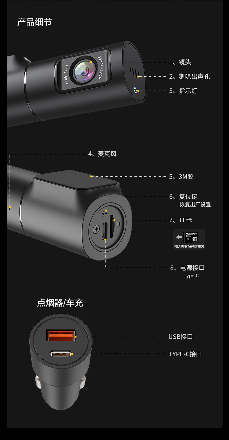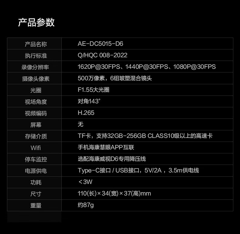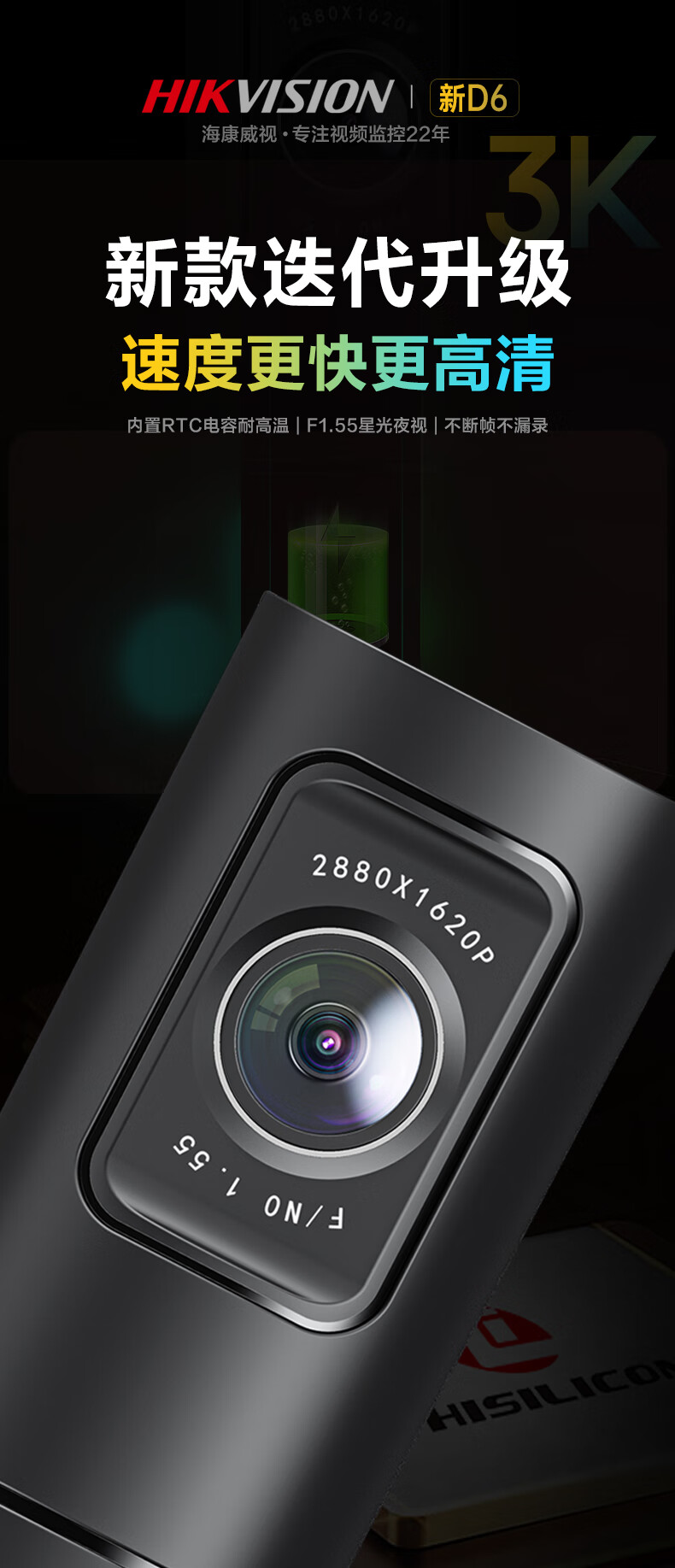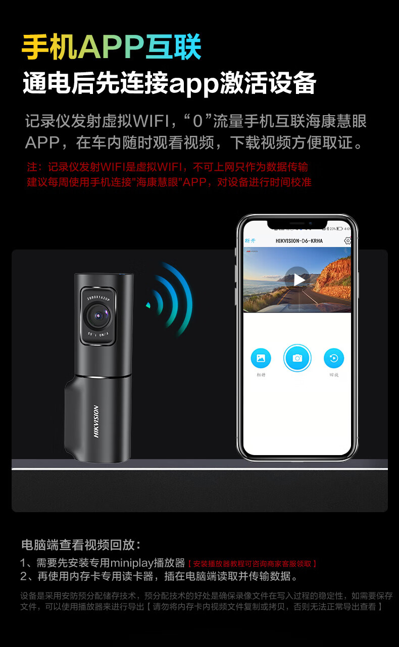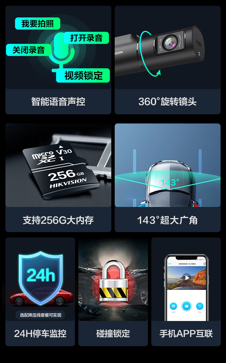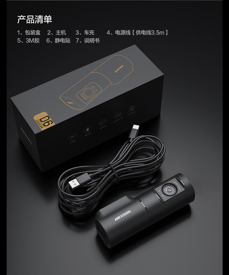 HIKVISION海康威视智能行车记录仪D6 3k超清星光夜视 语音声控手机APP互联