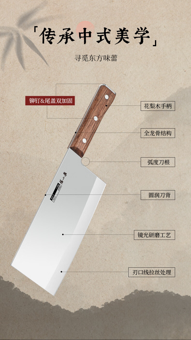 张小泉华韵厨房菜刀切菜切肉家用厨师用不锈钢刀具 厨房刀具不锈钢 切片刀