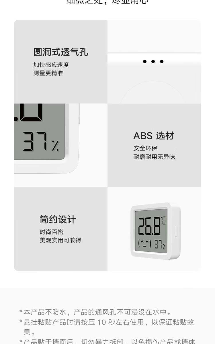小米米家智能温湿度计3mini 智能家居家用车内高精度温度显示器智能联动高续航迷你便携 白色