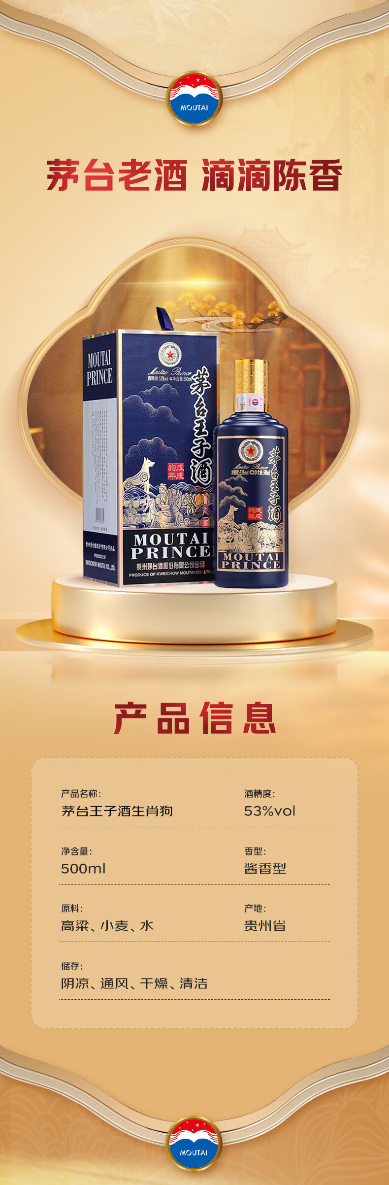 茅台 王子酒戊戌狗年 酱香型白酒 53度 500ml 单瓶装 收藏酒/陈年老酒 礼赠宴请收藏【名酒鉴真】