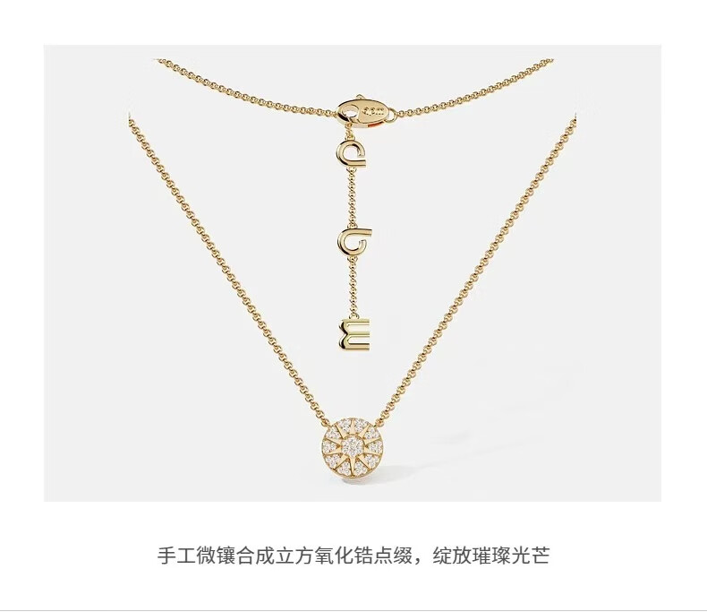 APM MonacoSoleil时尚金黄色星罗盘项链圆形吊坠礼物送女友