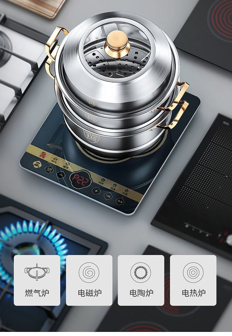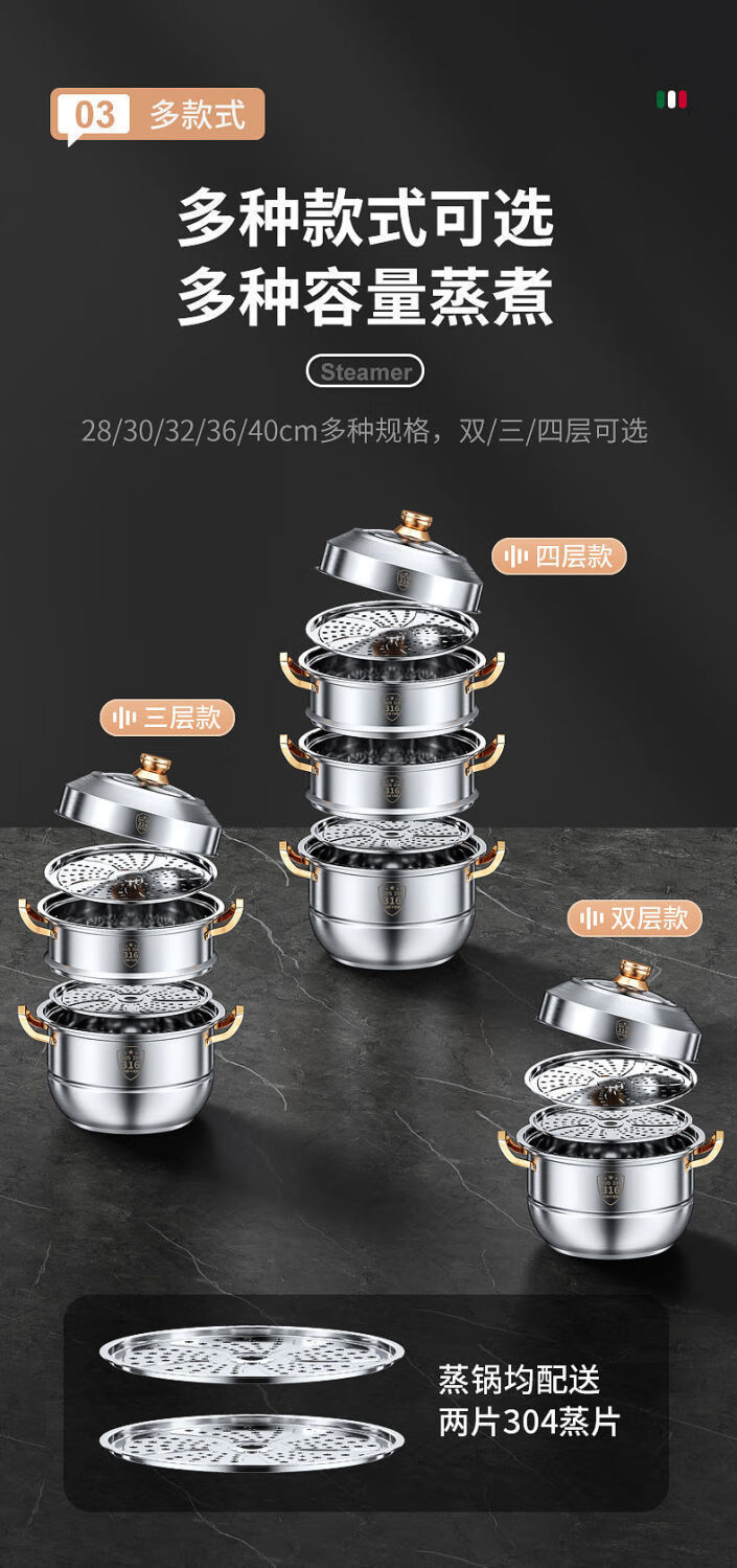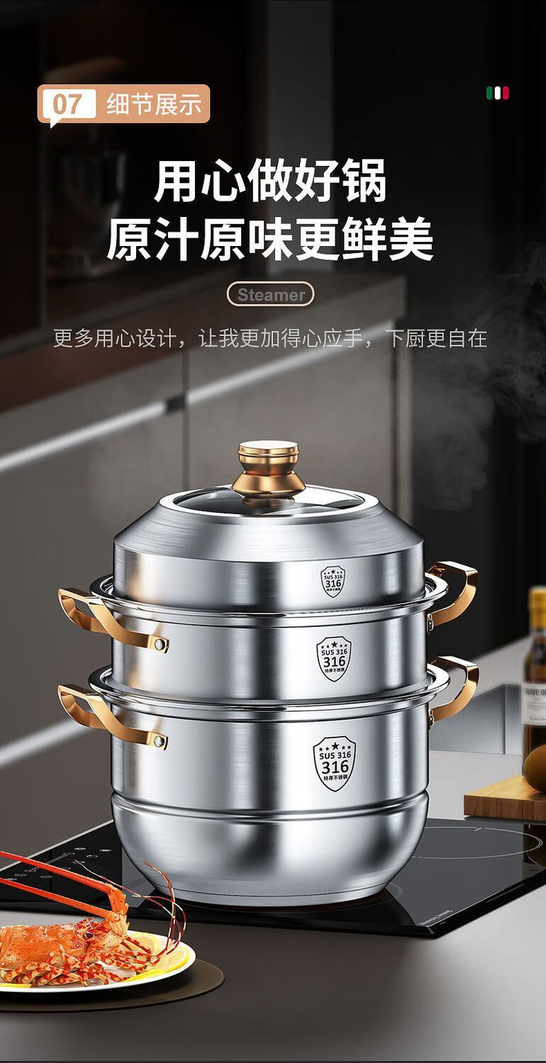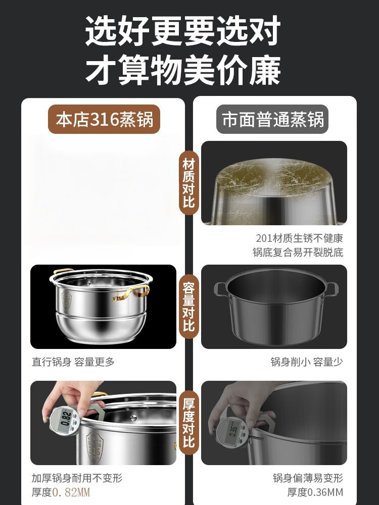 蒸锅316不锈钢家用多层大容量蒸包子加厚食品级304电磁炉燃气通用 4层【加厚旗舰款】316不锈钢 40cm