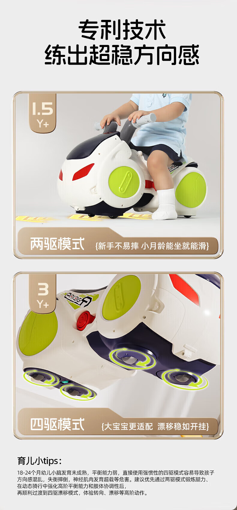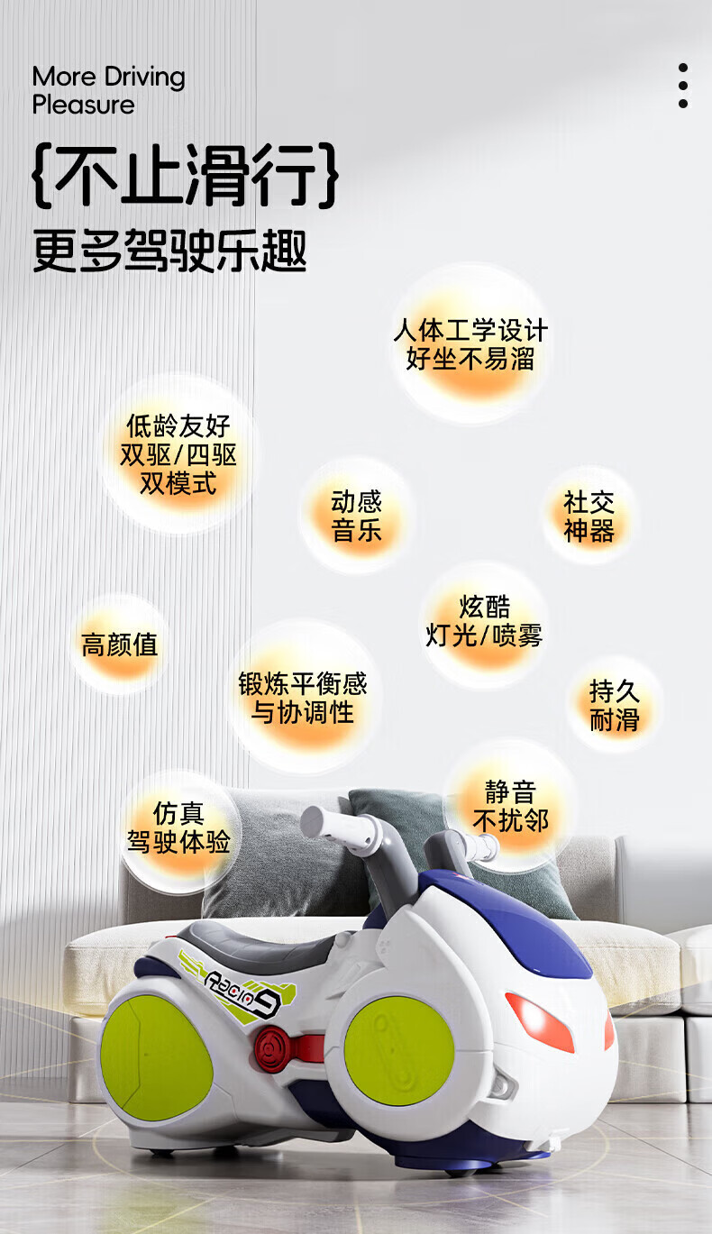 爱豆猫玩具漂移摩托车儿童玩具车滑行车1-3岁宝宝扭扭车花生车生日周岁 炫酷飘逸摩托车-1-6岁