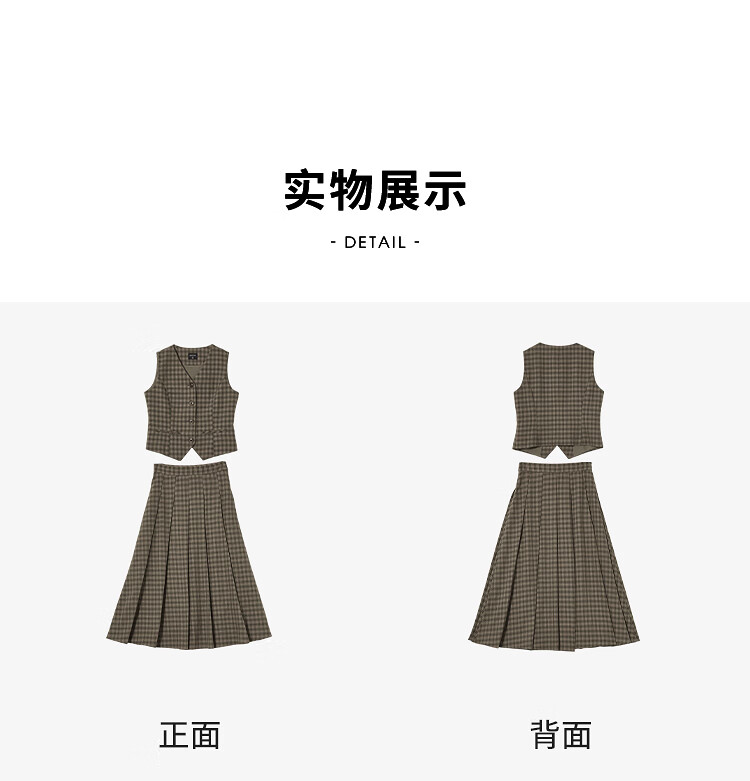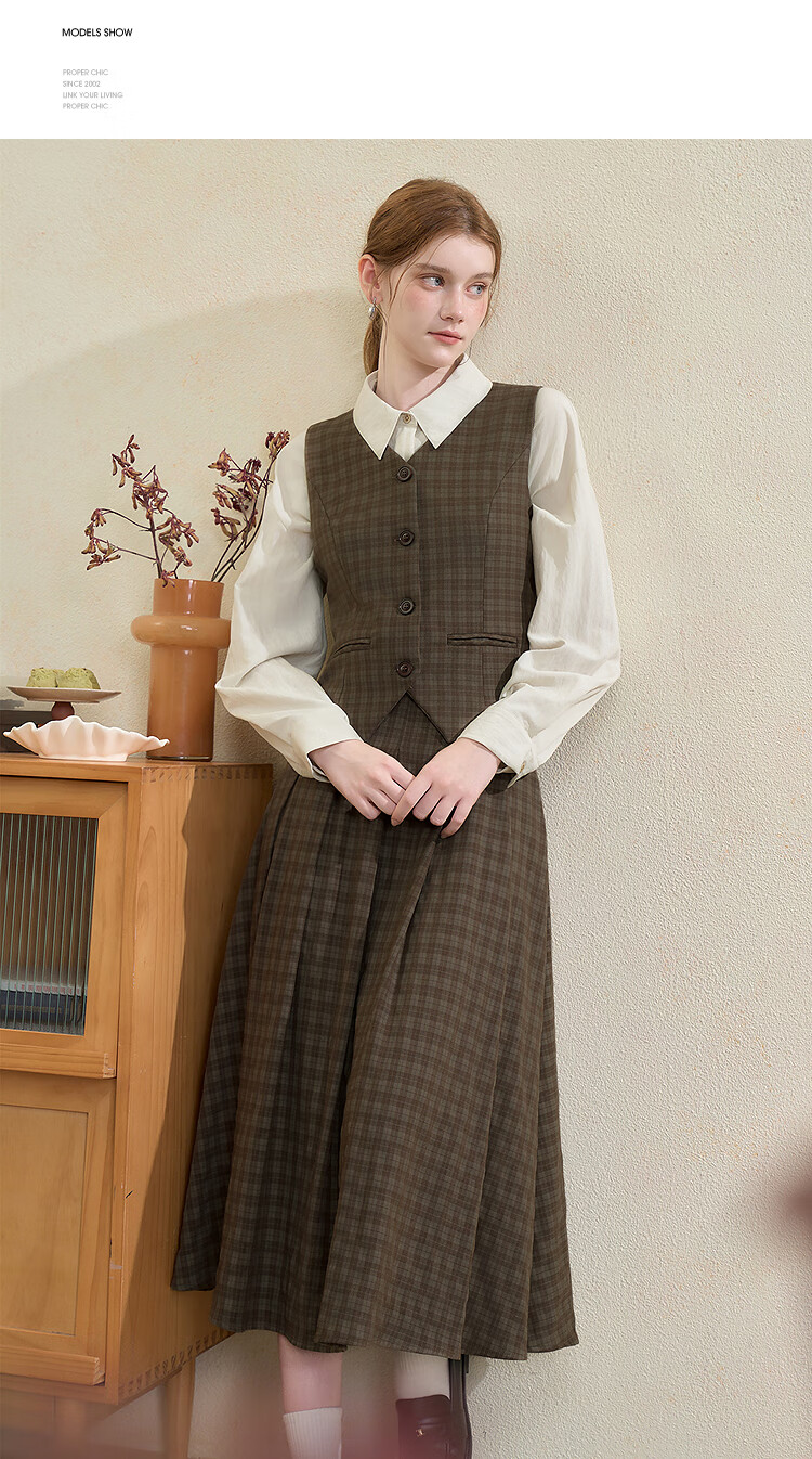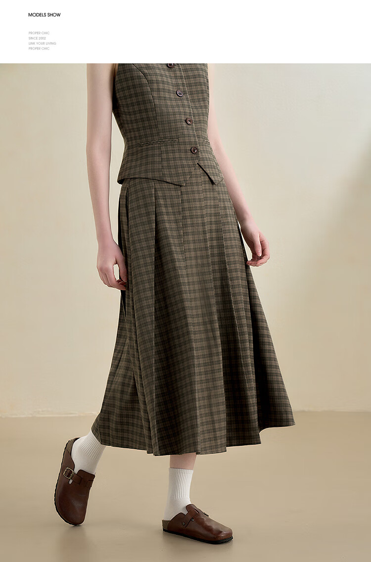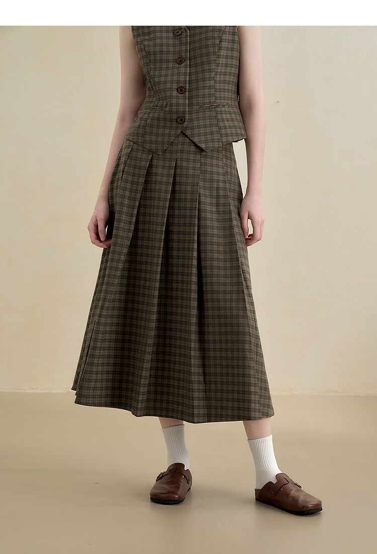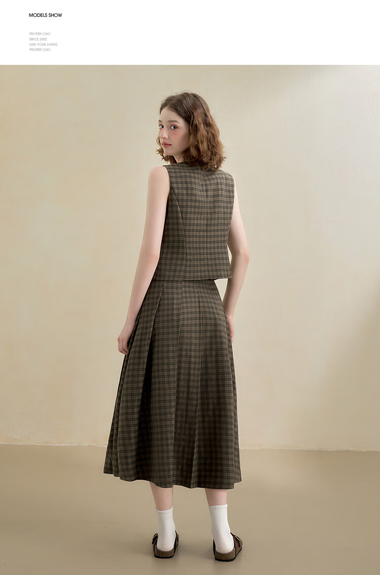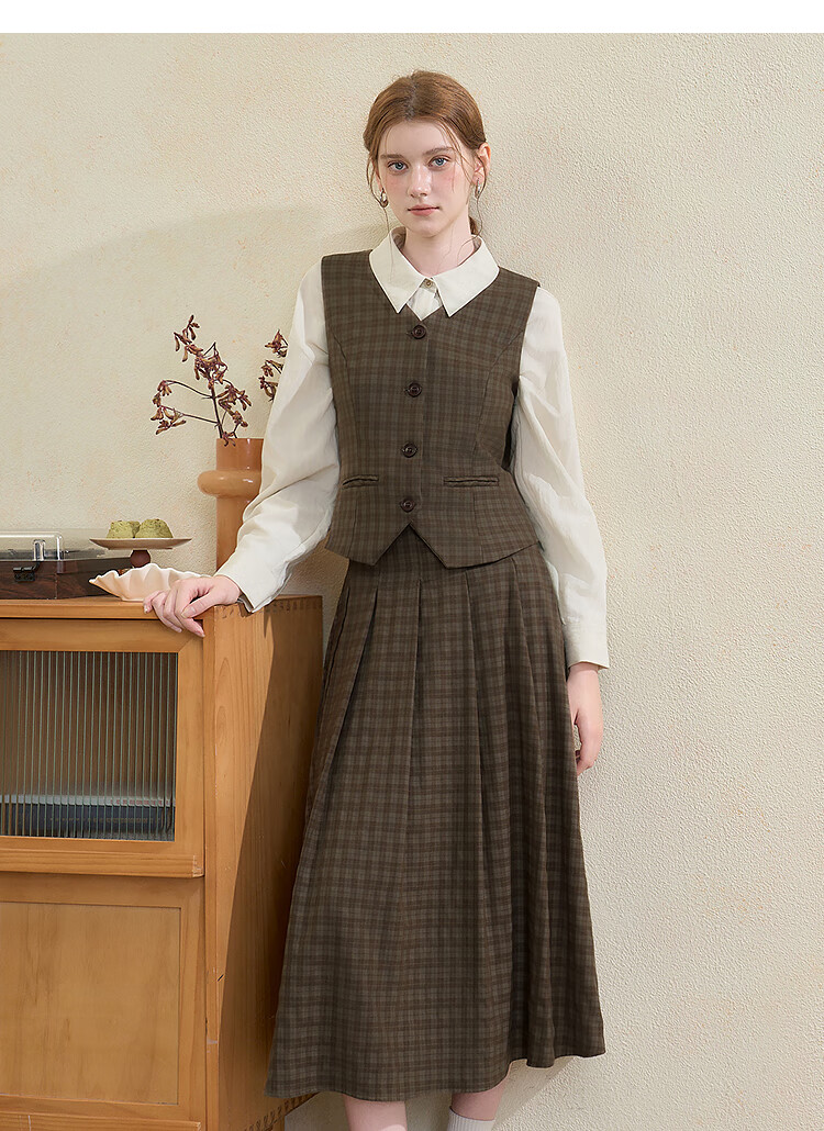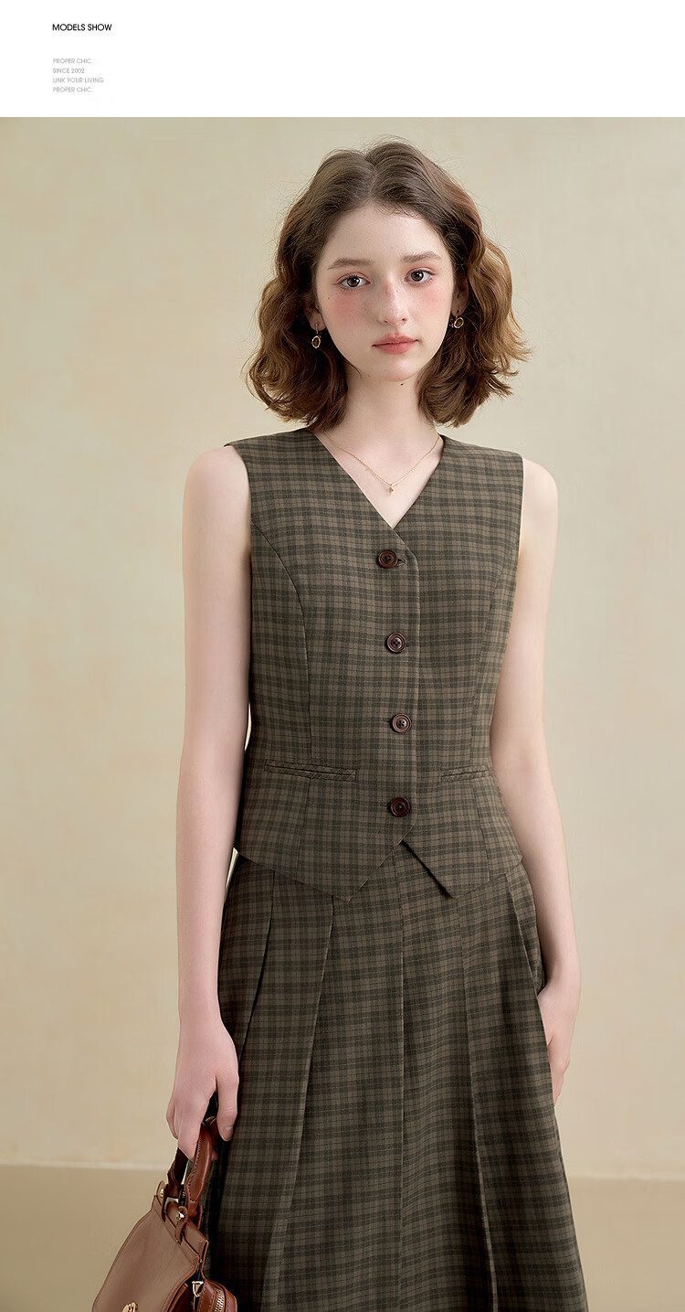 西遇复古高智感格纹通勤套装女2025秋季西装马甲搭半身裙两件套 咖色 XL (170)