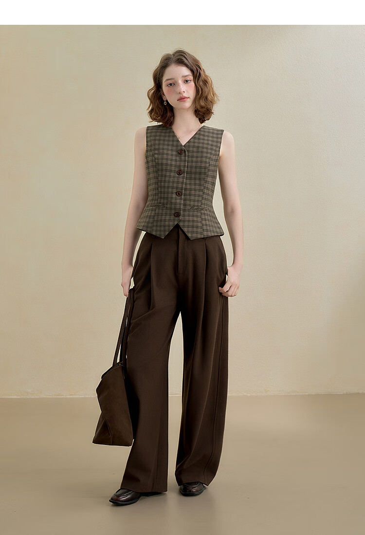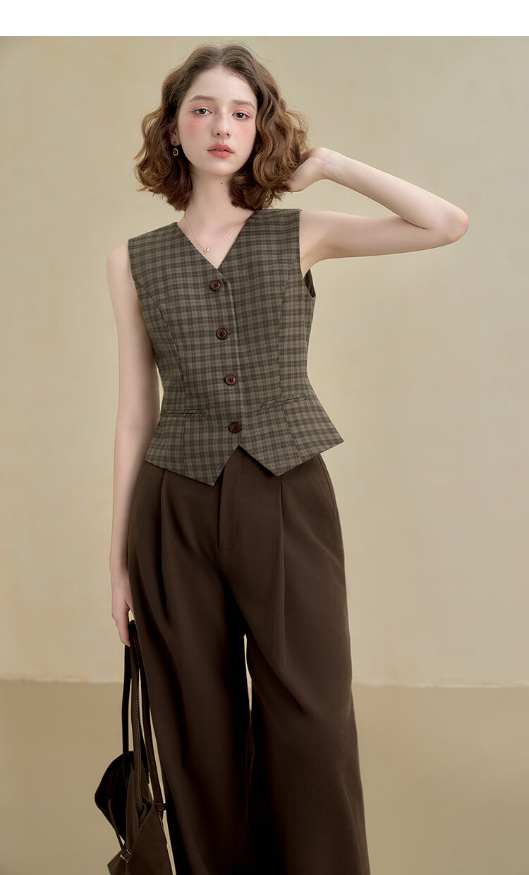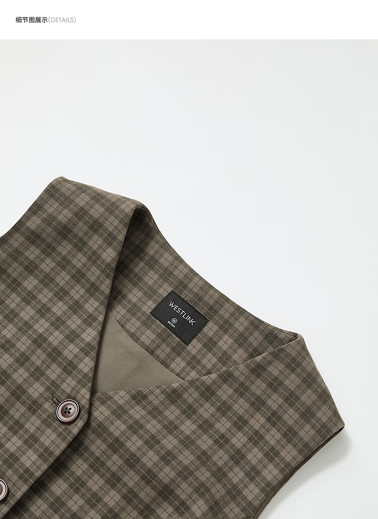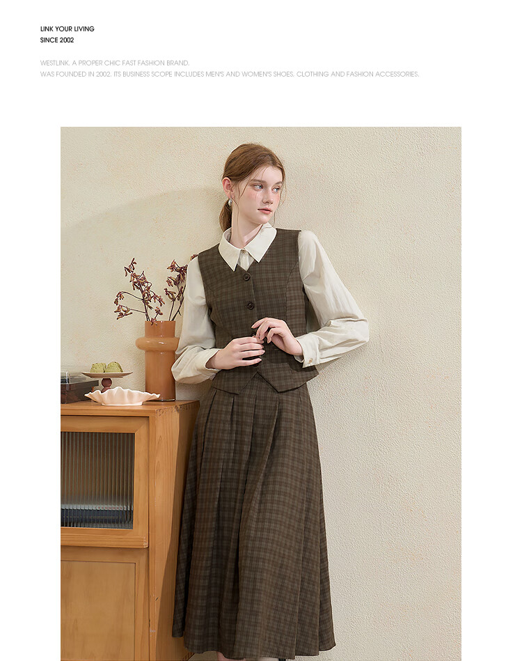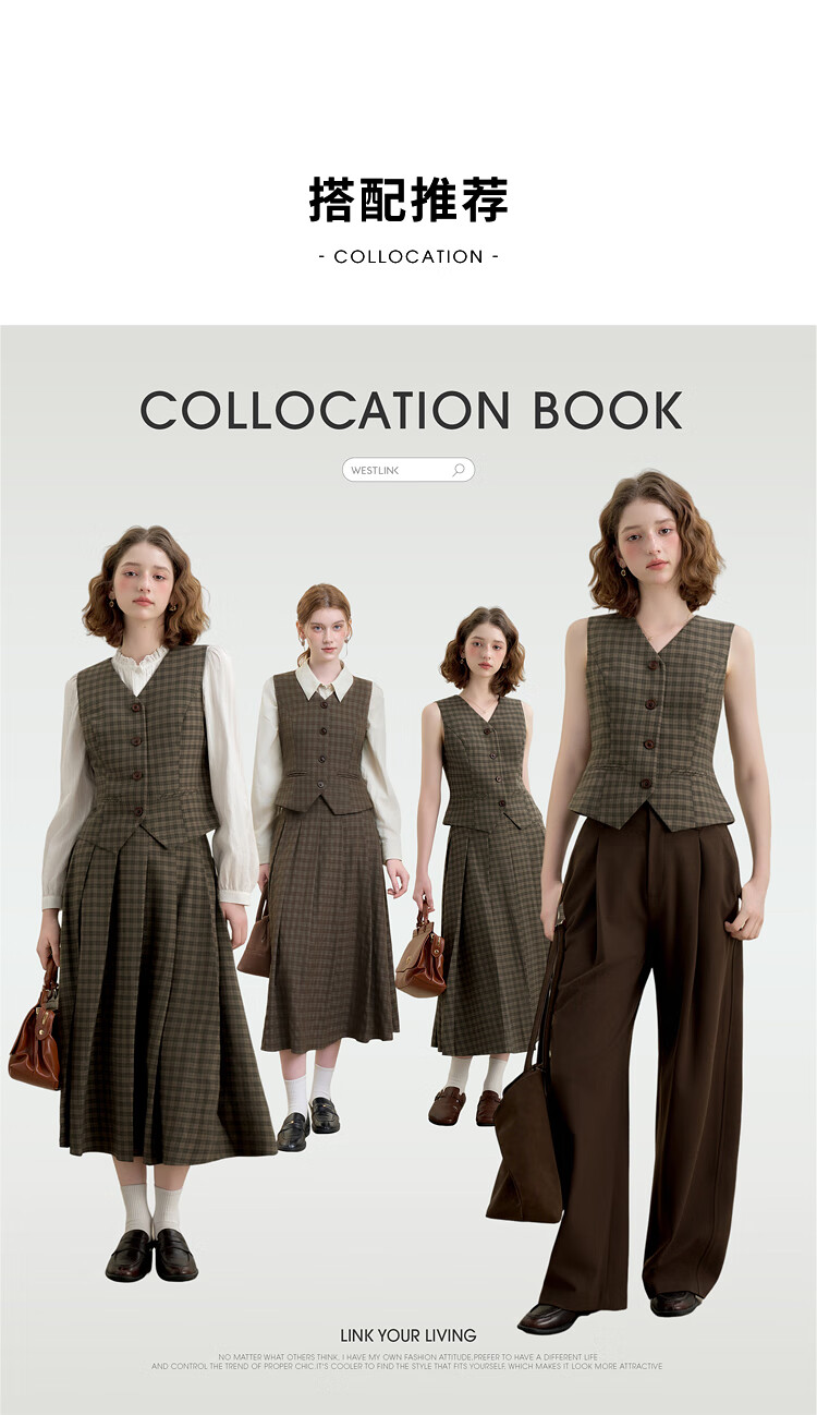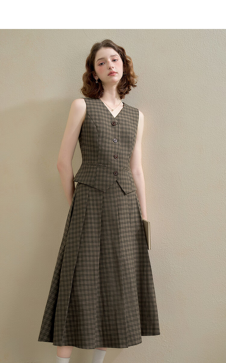 西遇复古高智感格纹通勤套装女2025秋季西装马甲搭半身裙两件套 咖色 XL (170)